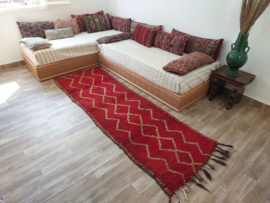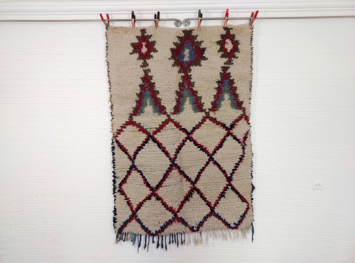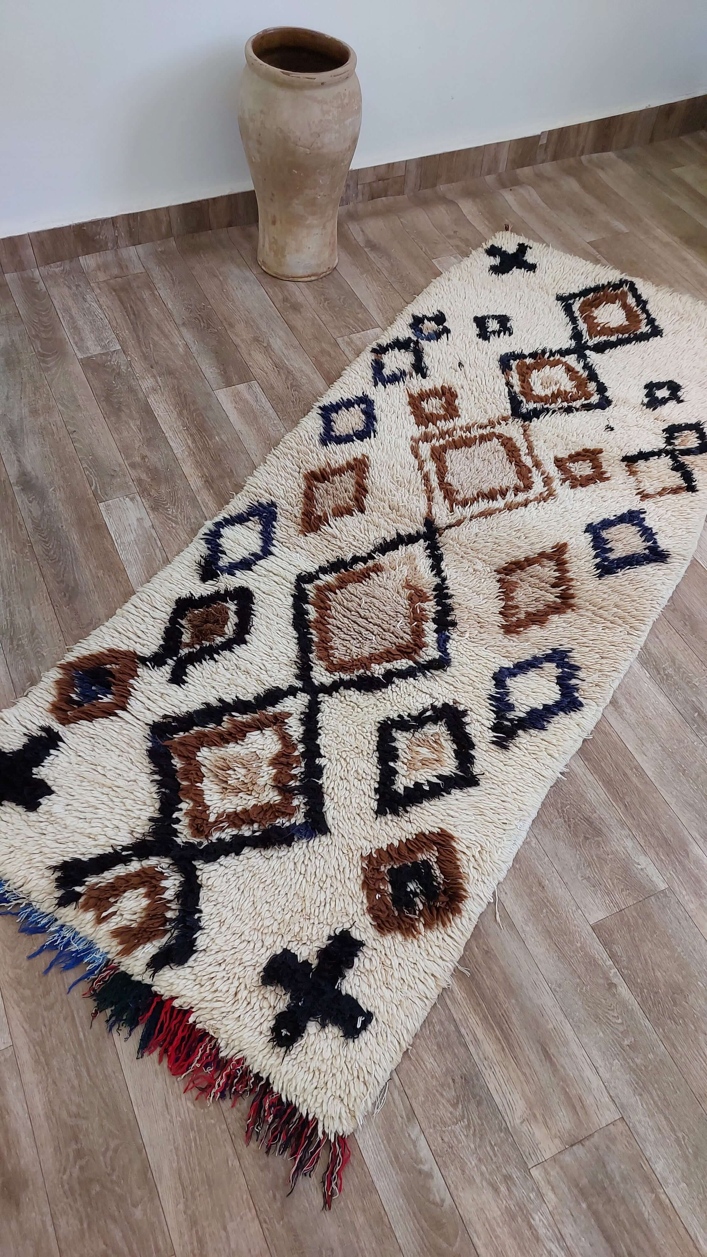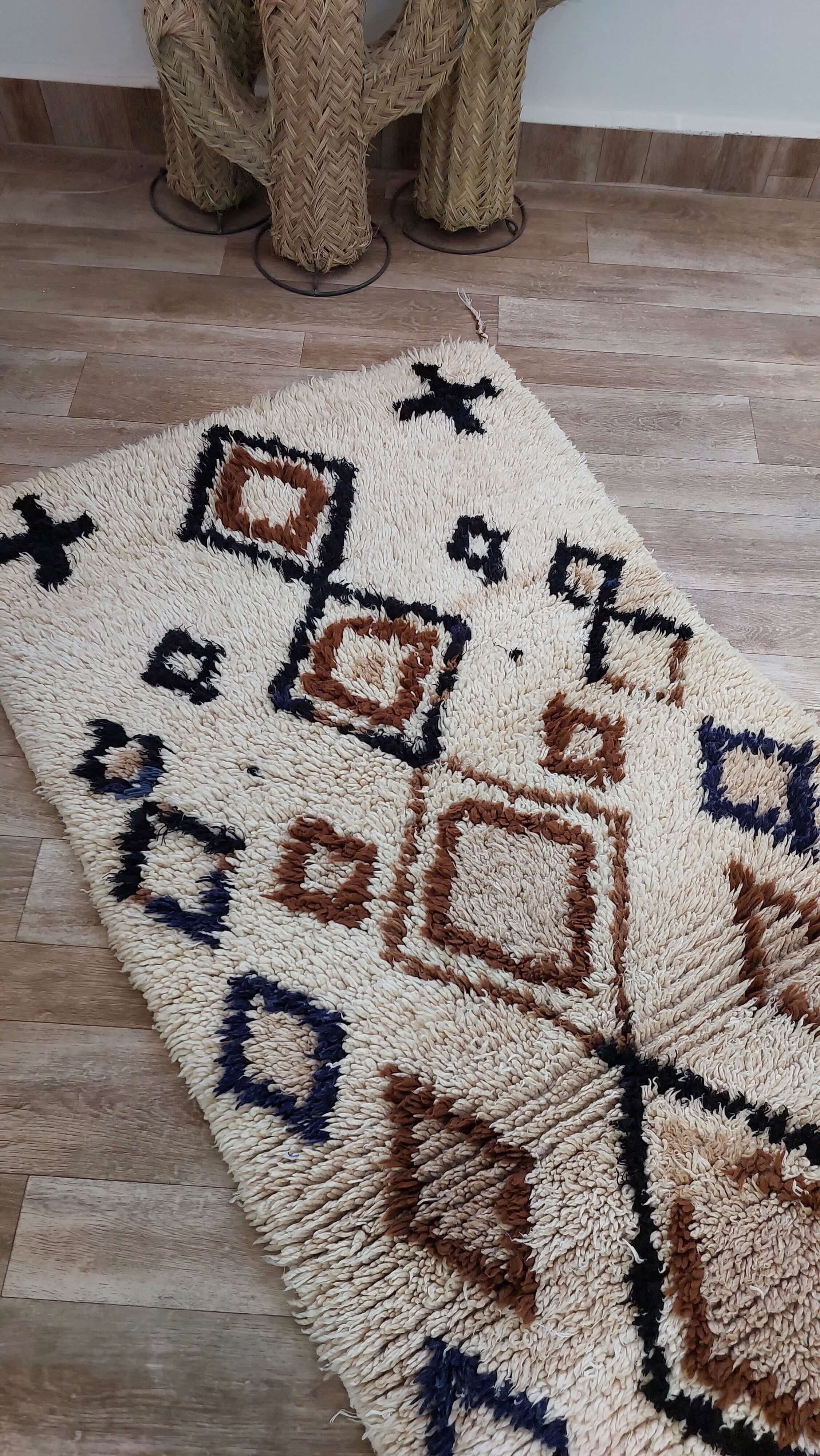 Small Moroccan Rug - Vintage Azilal Runner Rug - Handknotted Bedside Rug - Used Berber Rug .