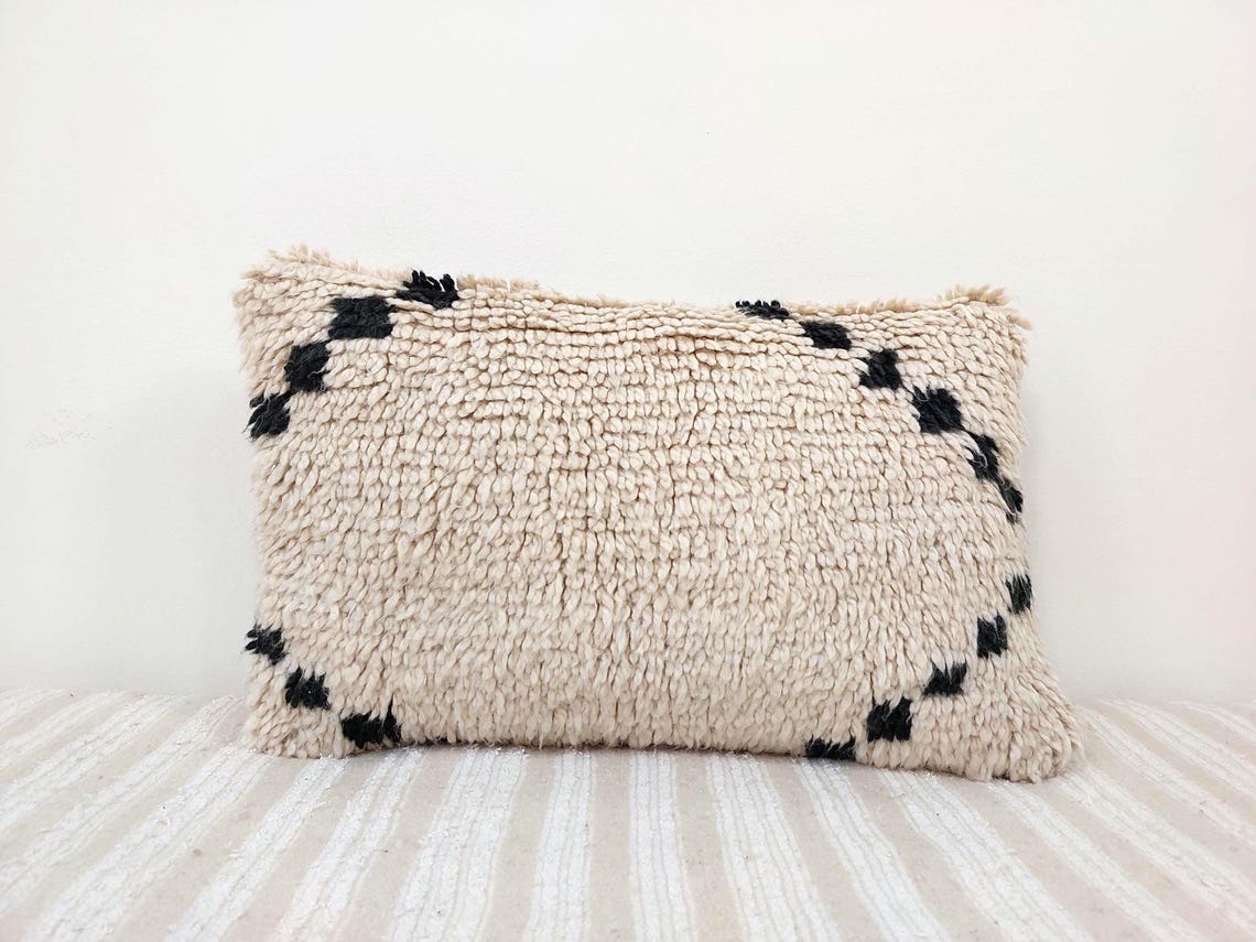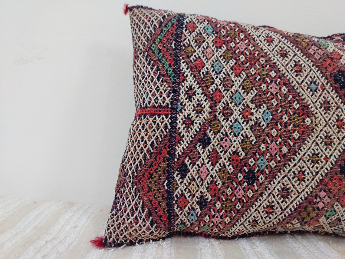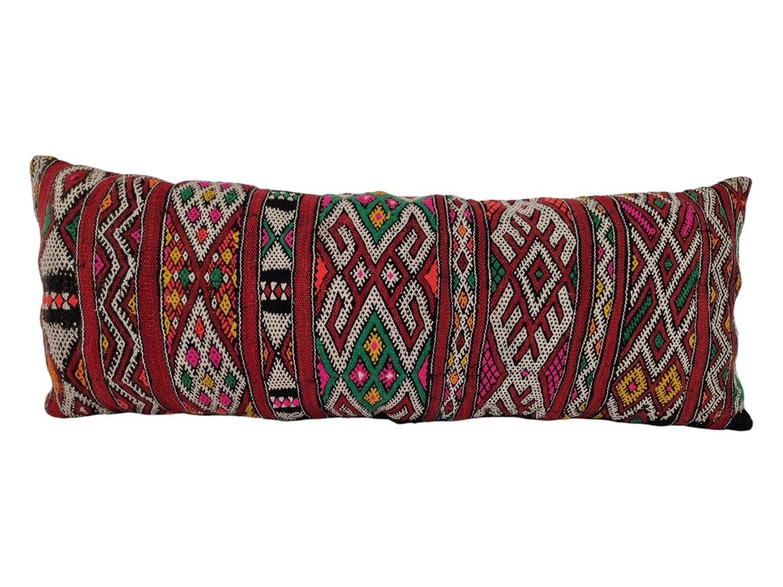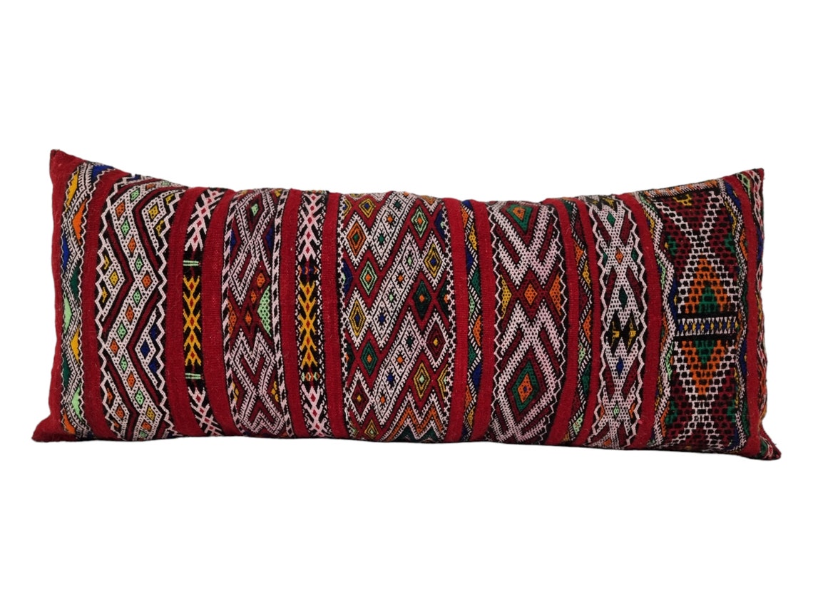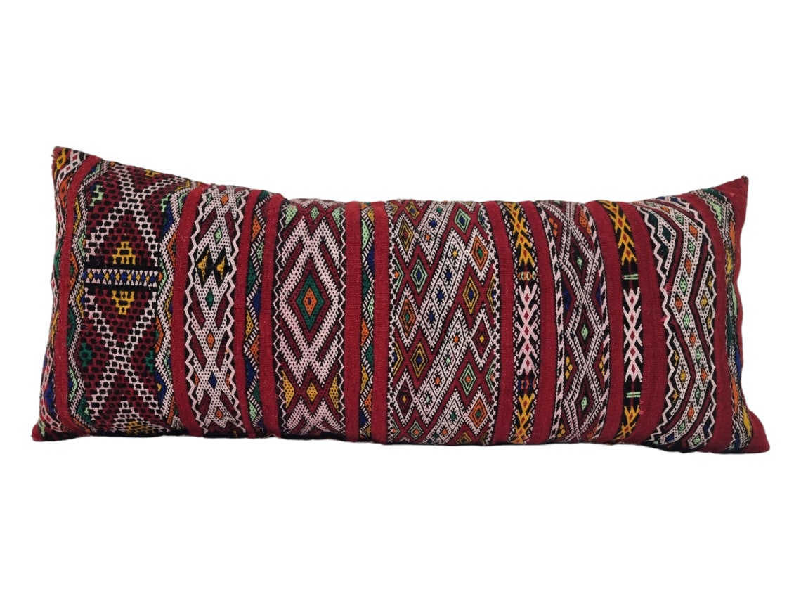 Stunning Vintage Moroccan Lumbar Pillow - Handmade Berber Cushion - Double Sided Berber Lumbar Case - Authentic Bohemian Pillow. 13x37 Inch