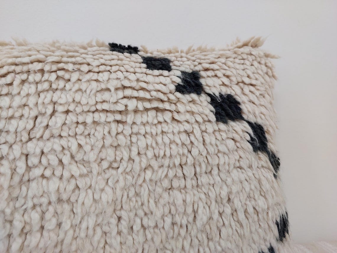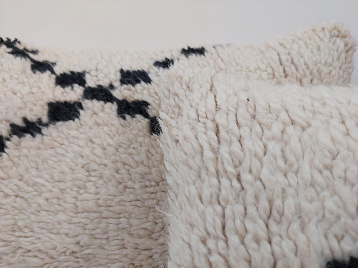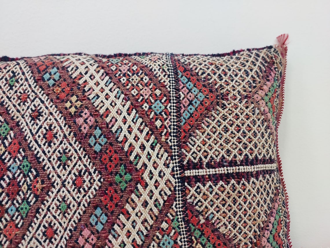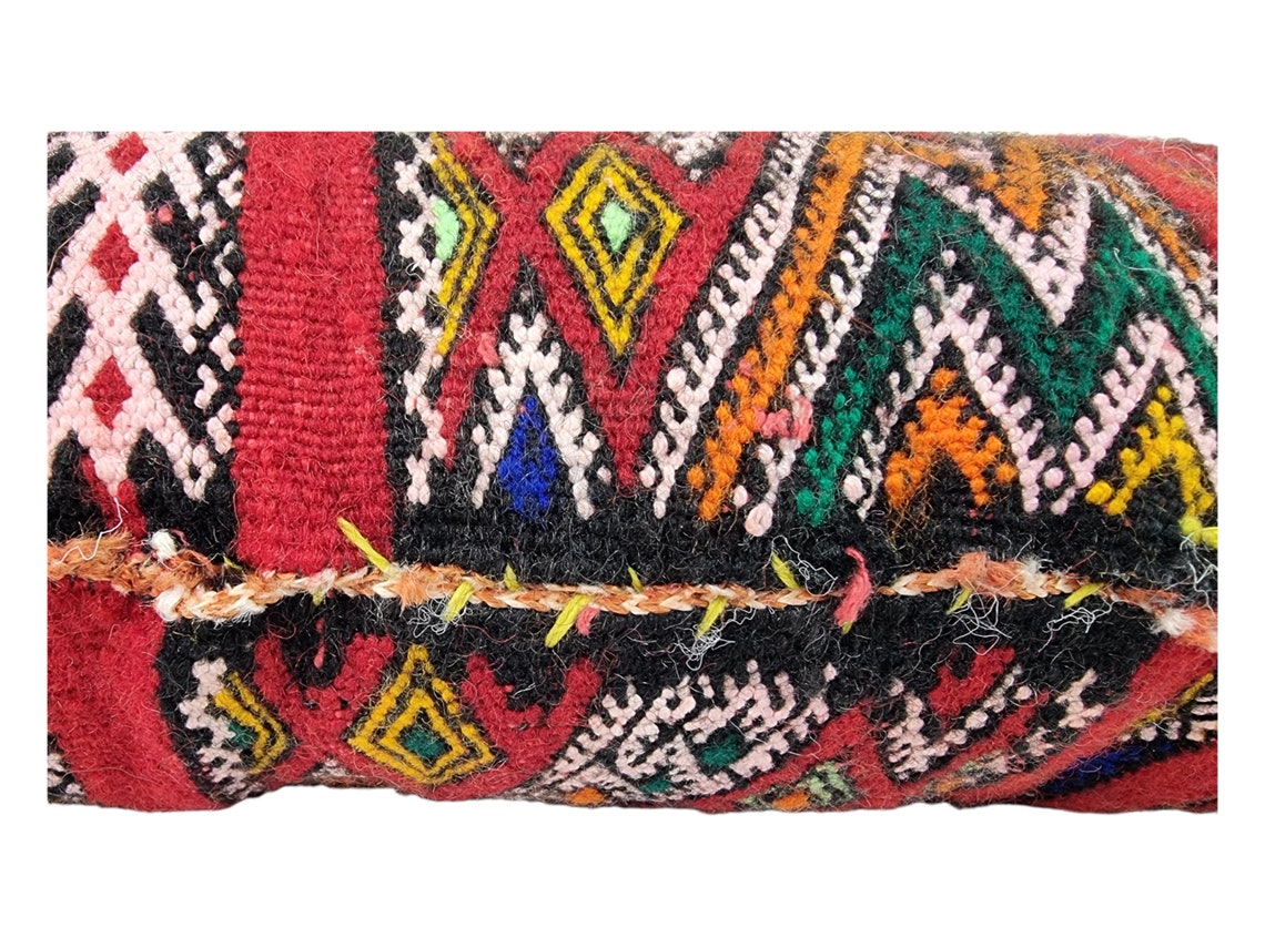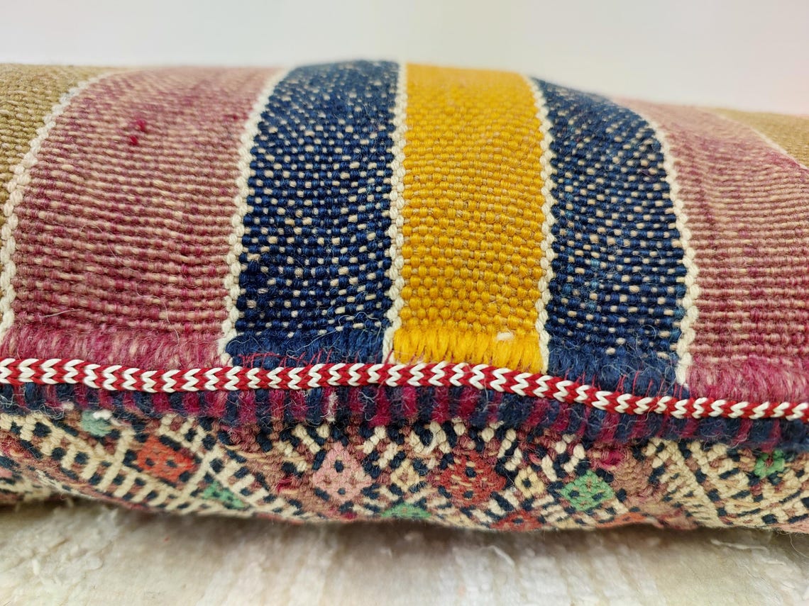 Stunning Vintage Moroccan Lumbar Pillow - Handmade Berber Cushion - Double Sided Berber Lumbar Case - Authentic Bohemian Pillow. 13x37 Inch
