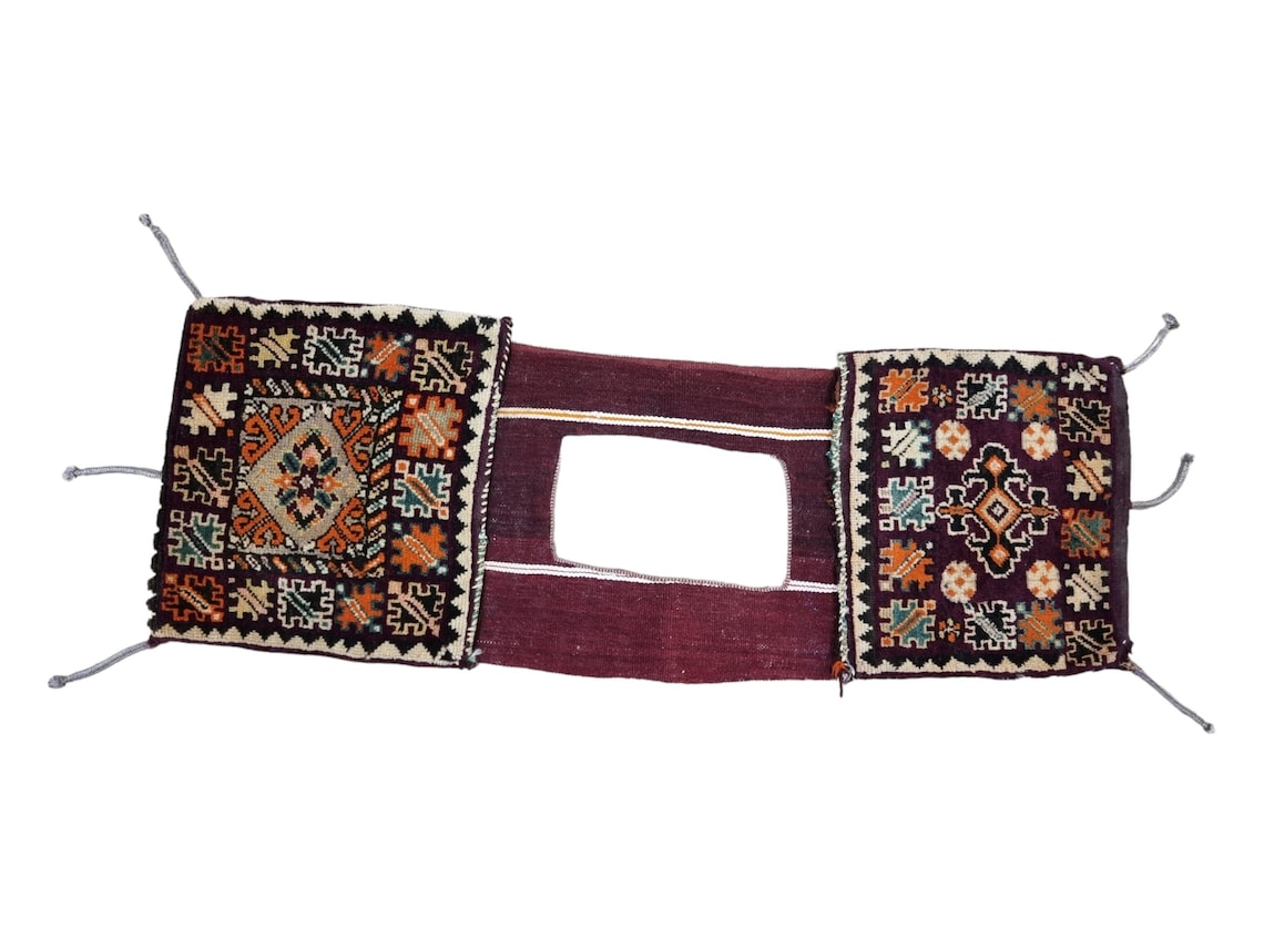 Unique Moroccan Berber Hand Knotted Wool Saddle Bag from Rabat Zaer Tribe