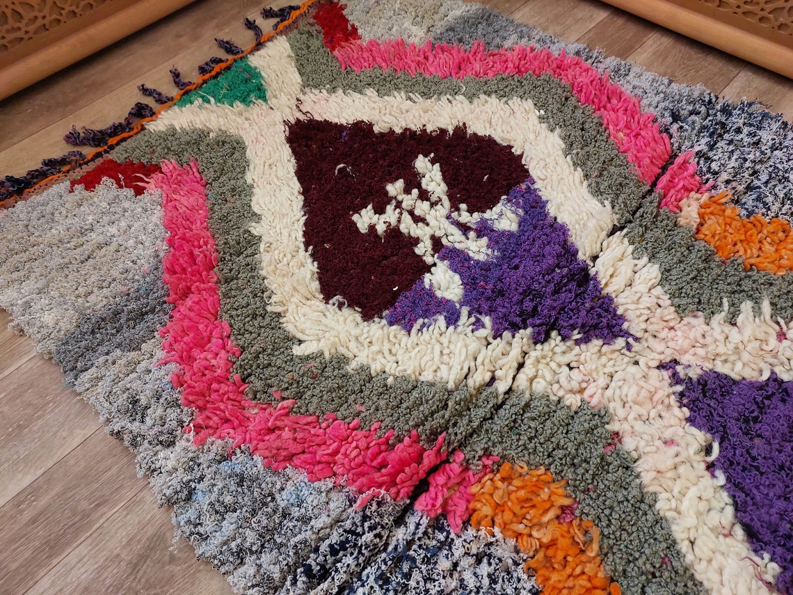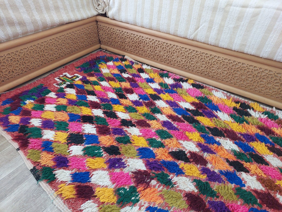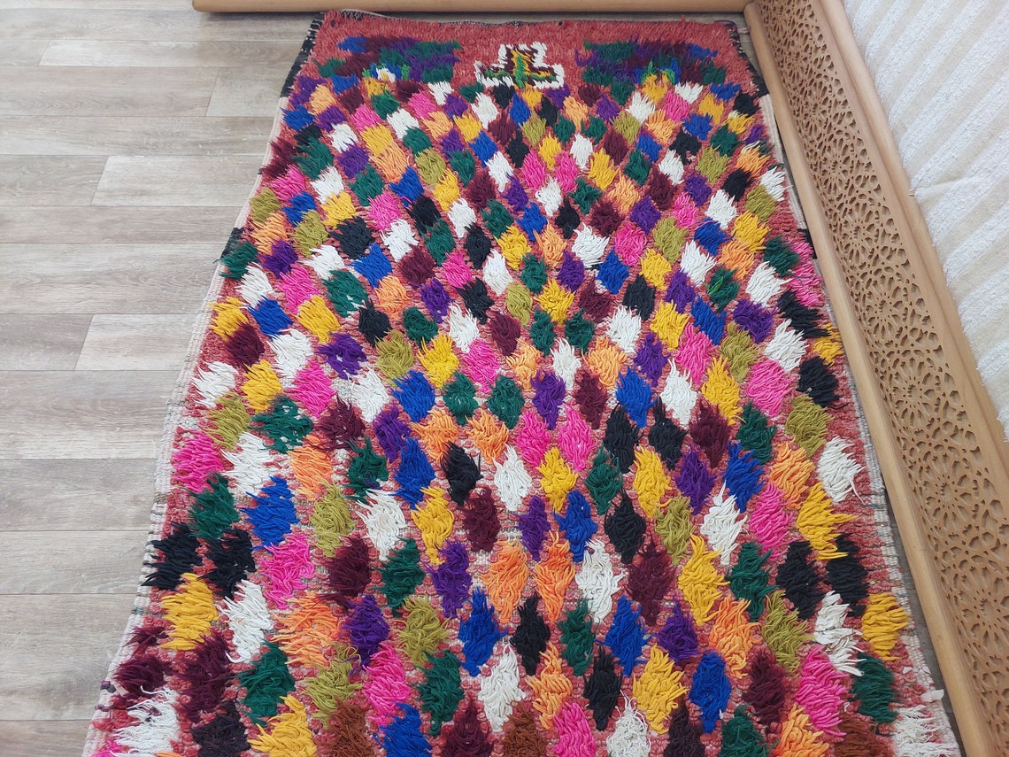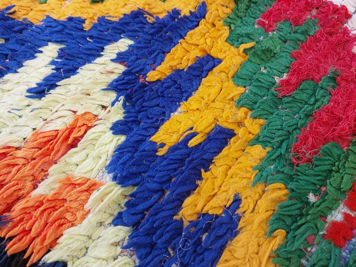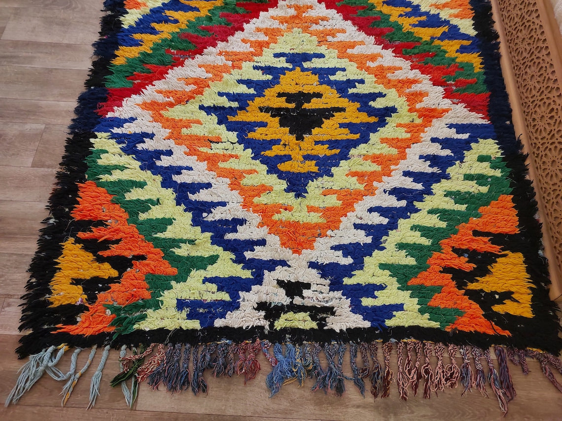 Small Moroccan Boucherouite Rug - Handmade Eco-Friendly - Bright, Bold Patterns 105 x 180cm
