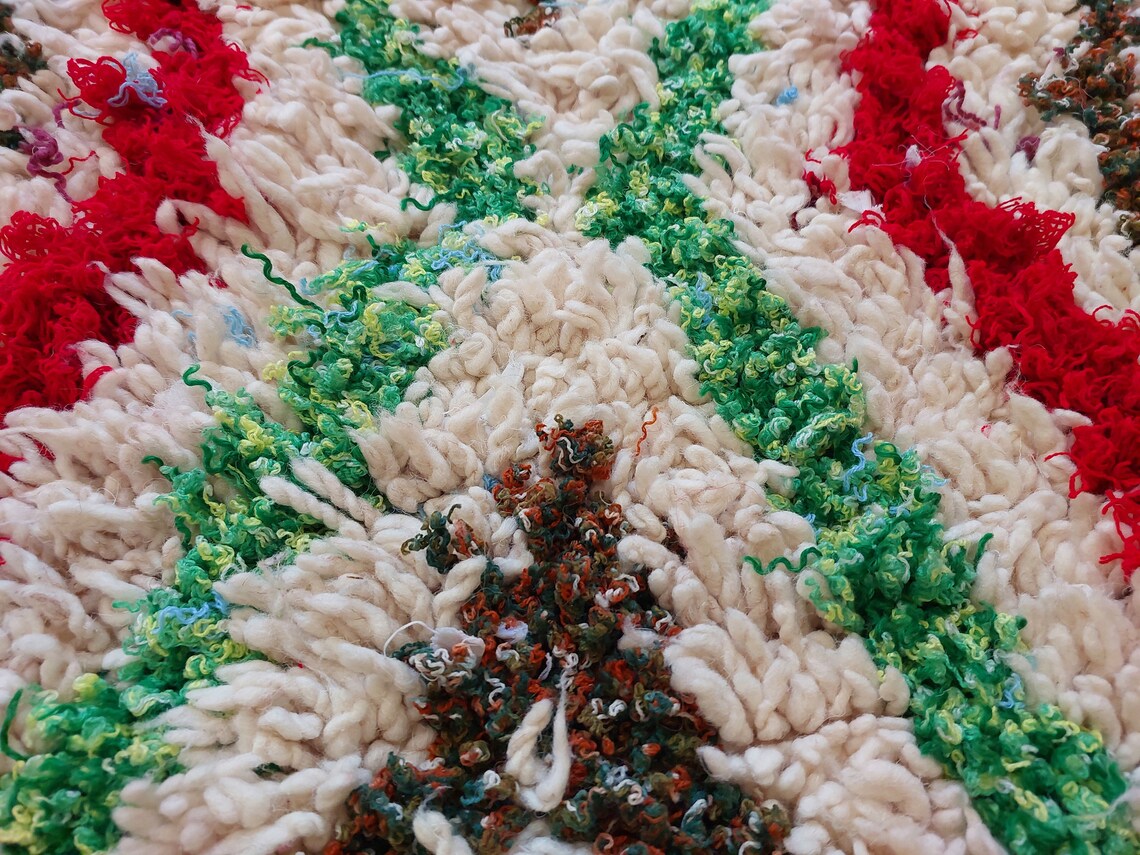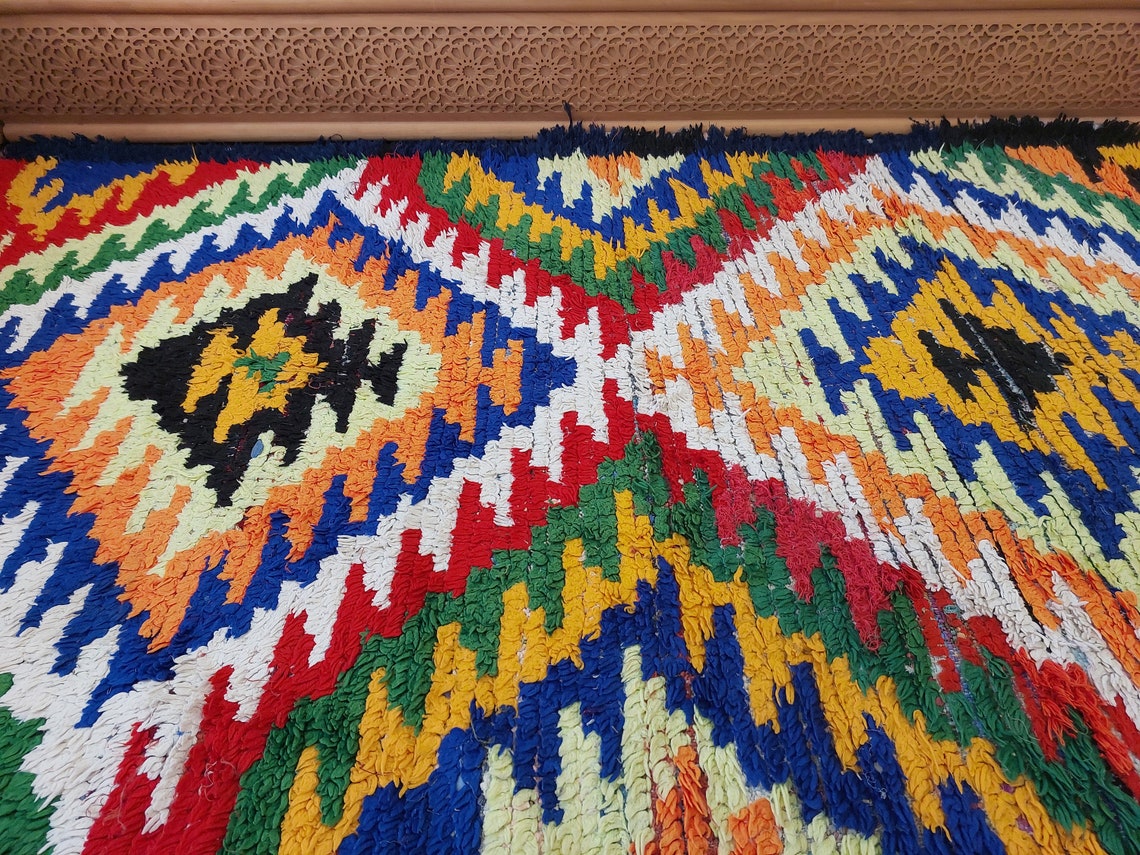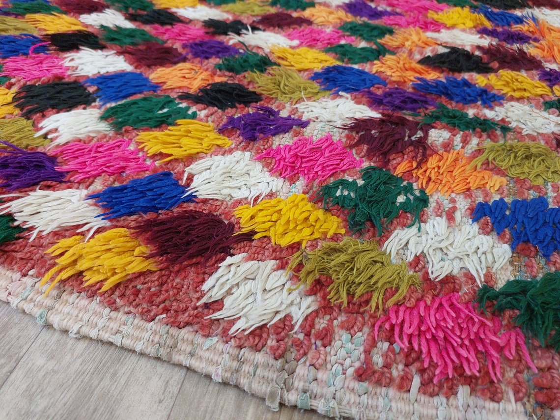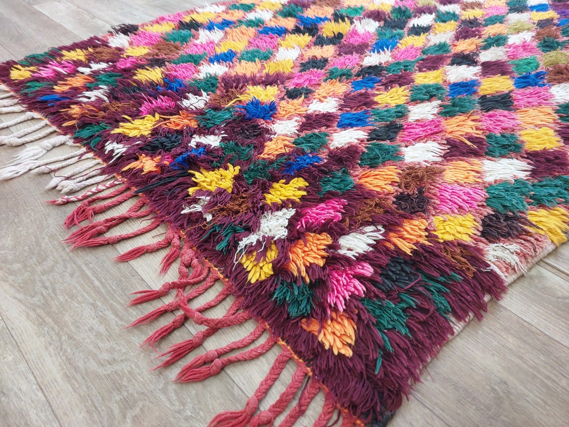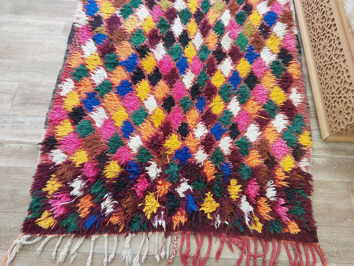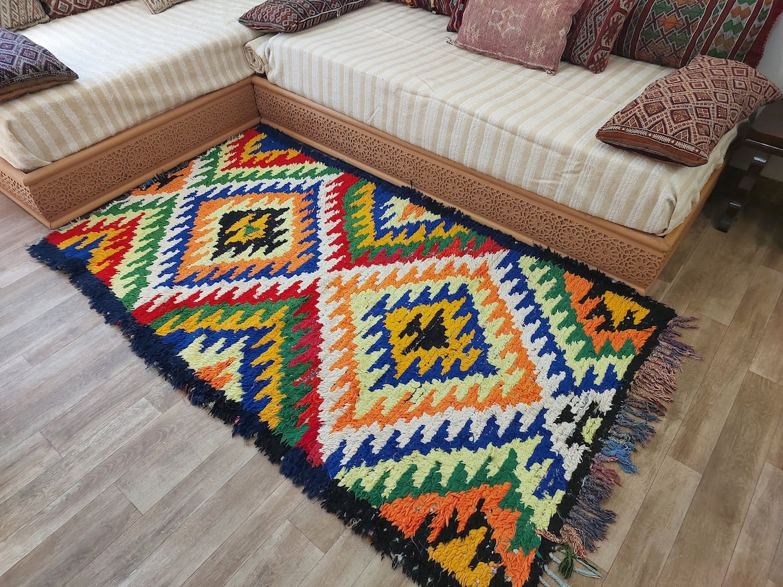 Small Moroccan Boucherouite Rug - Handmade Eco-Friendly - Bright, Bold Patterns 105 x 180cm