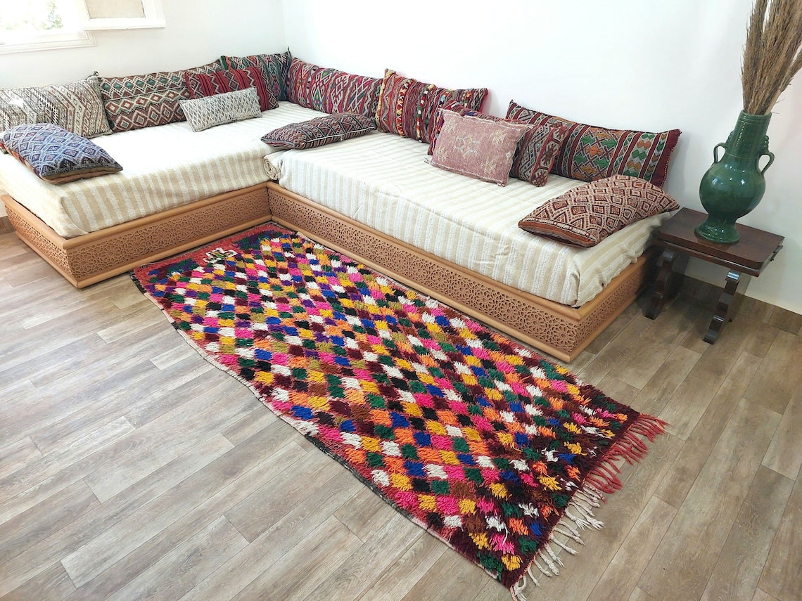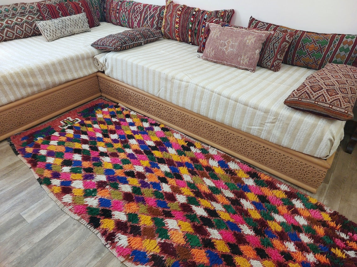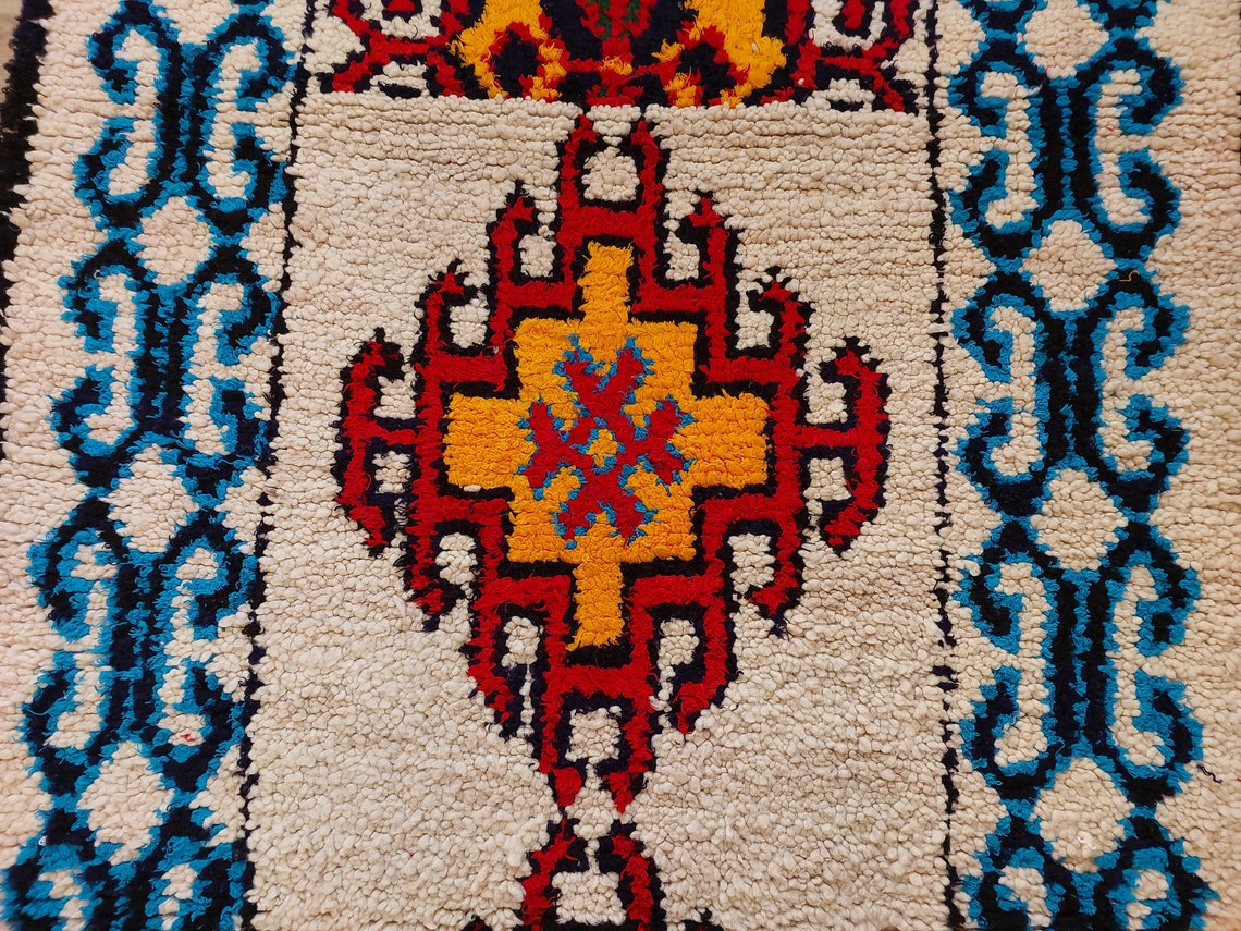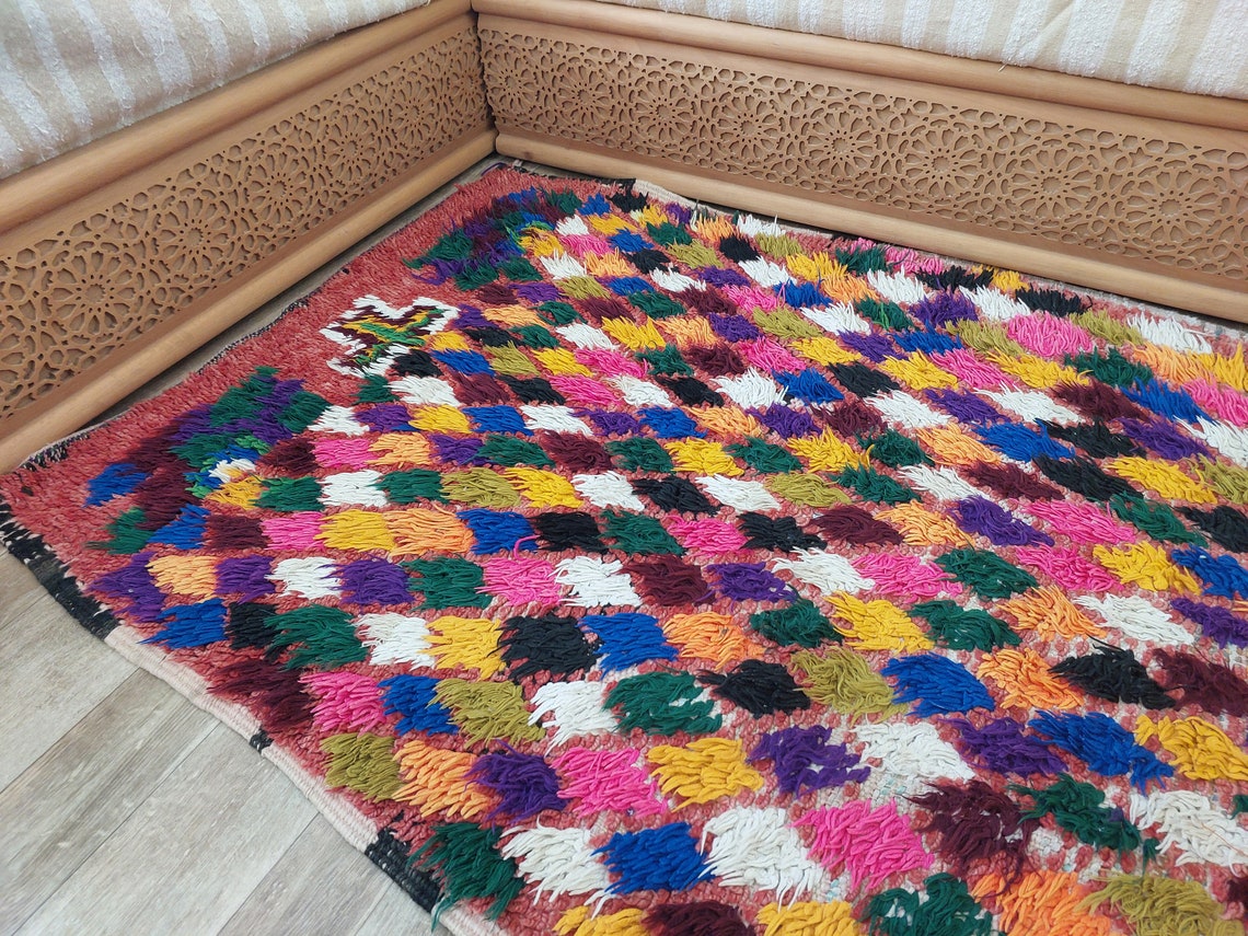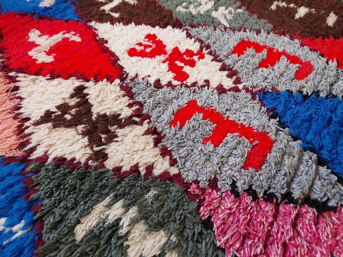Small Moroccan Boucherouite Rug - Handmade Eco-Friendly - Bright, Bold Patterns 105 x 180cm