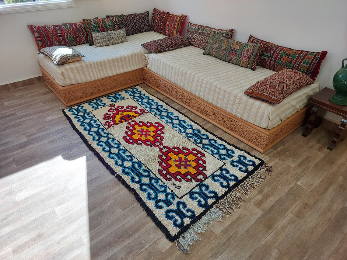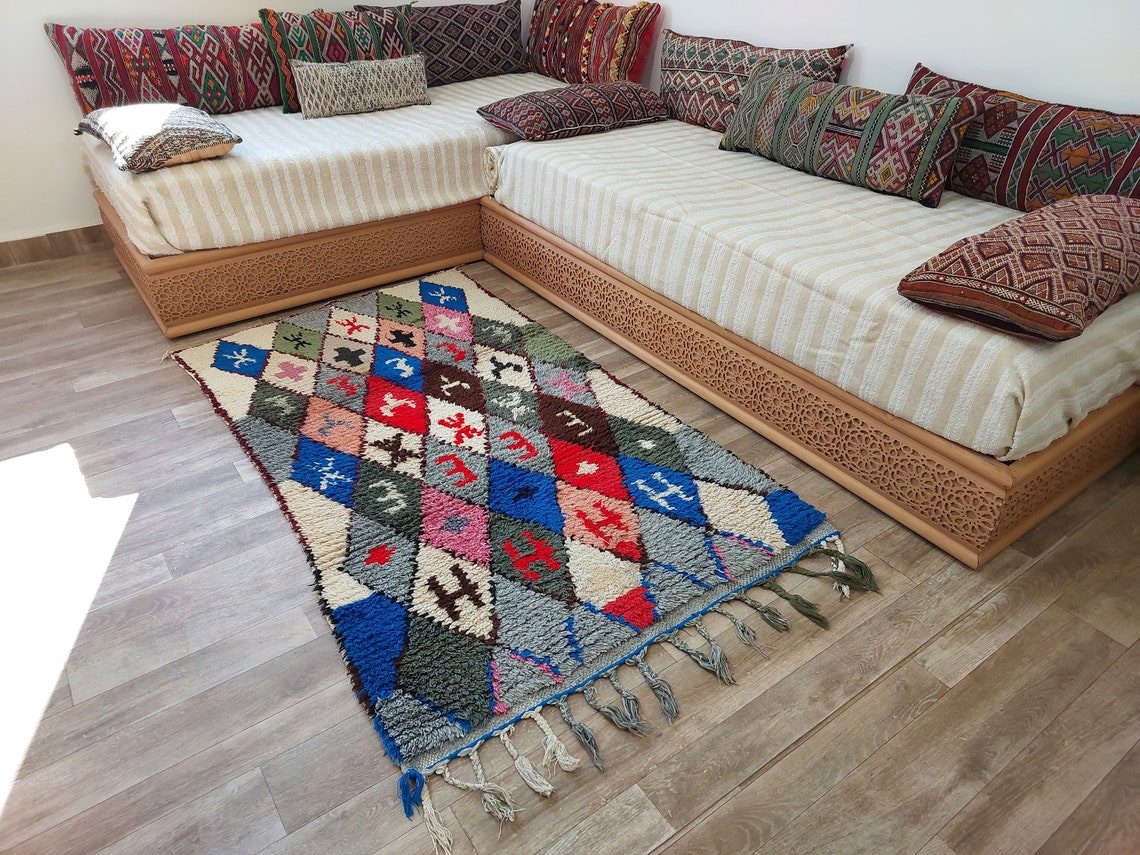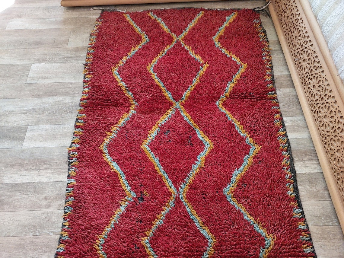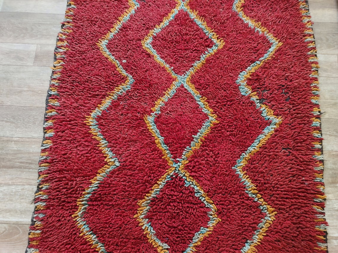 Small Moroccan Rug - Vintage Azilal Rug - Hand Woven Bedside Rug - Boucherouite Rug - Handmade Berber Rug, 100 X182cm