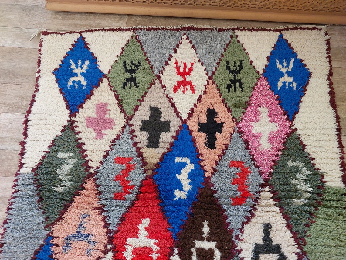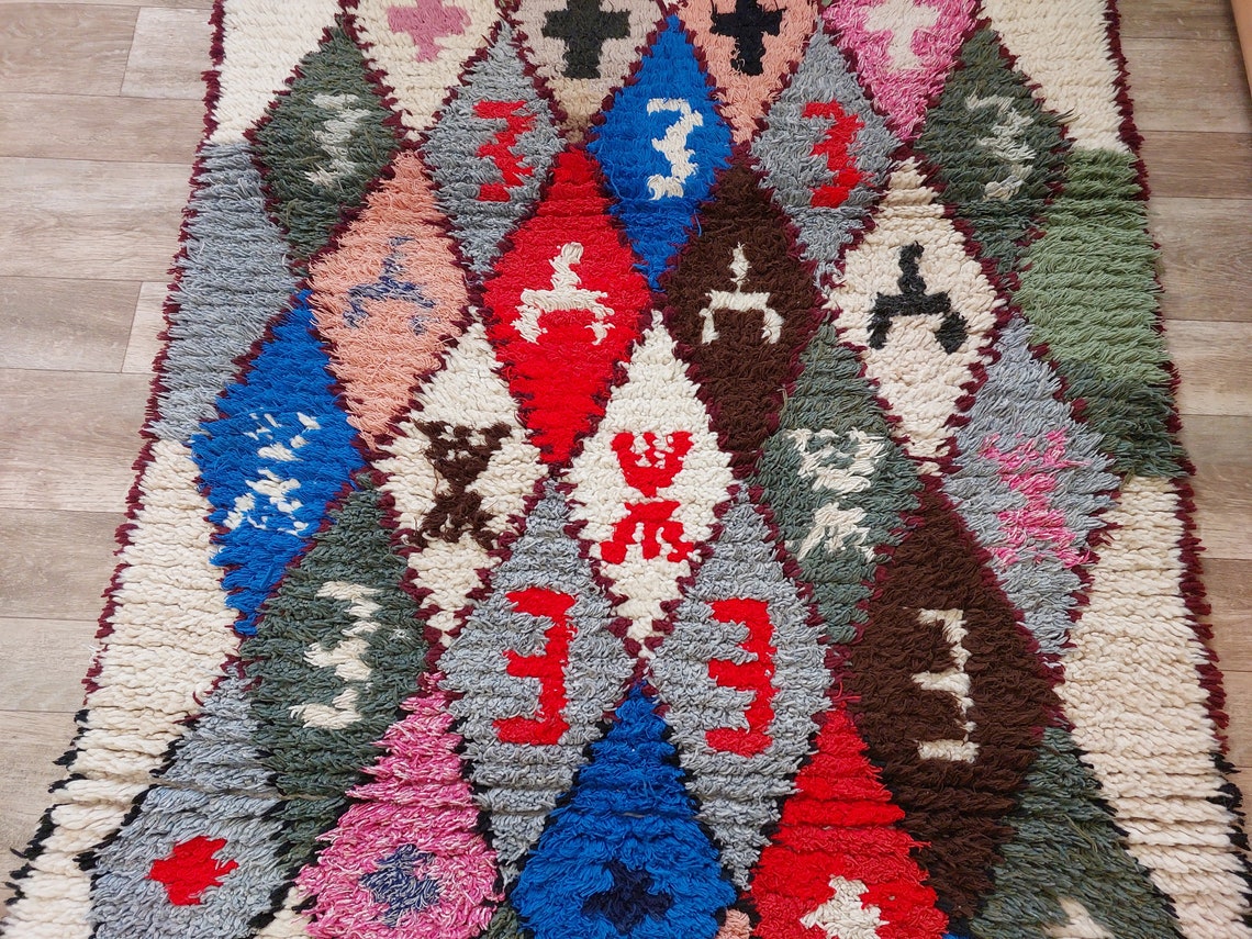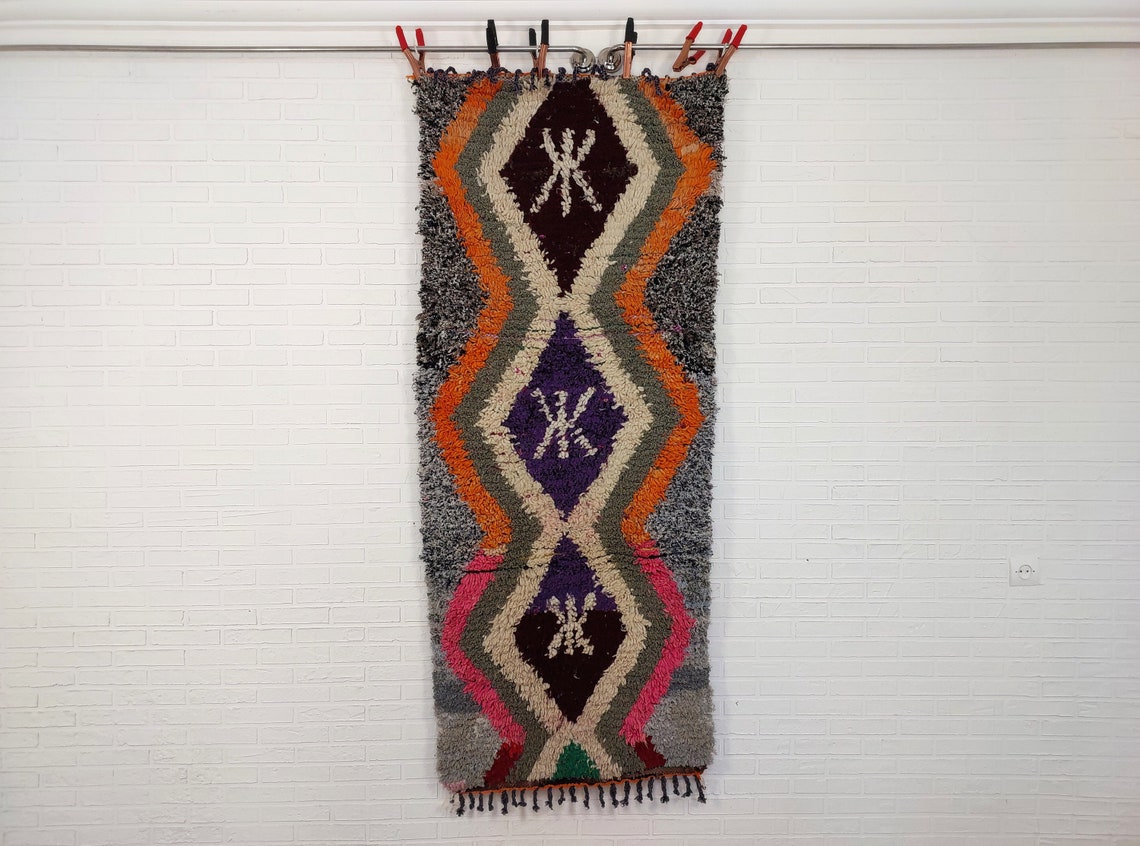 Small Moroccan Rug. Boucharouite Rug. Beni Ourain Rug. Berber Rug. Cute Rug. Handmade Rug 193x81 Cm