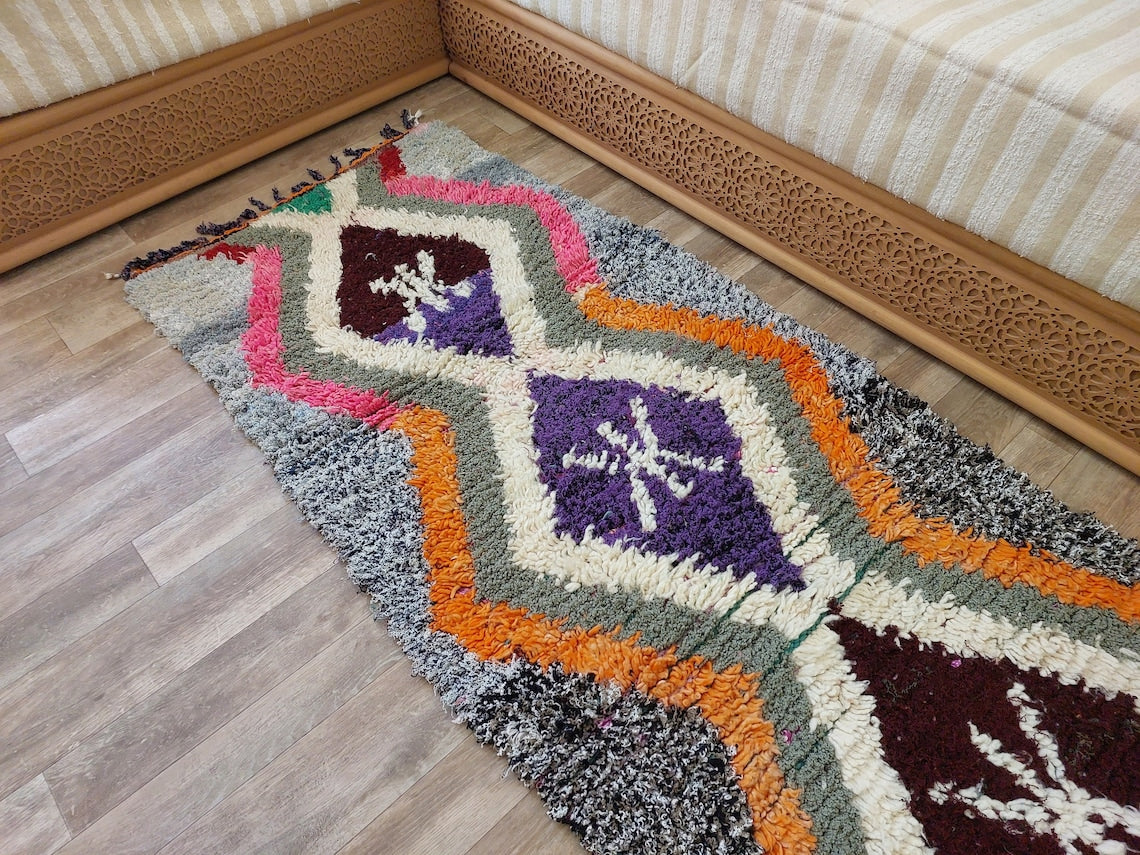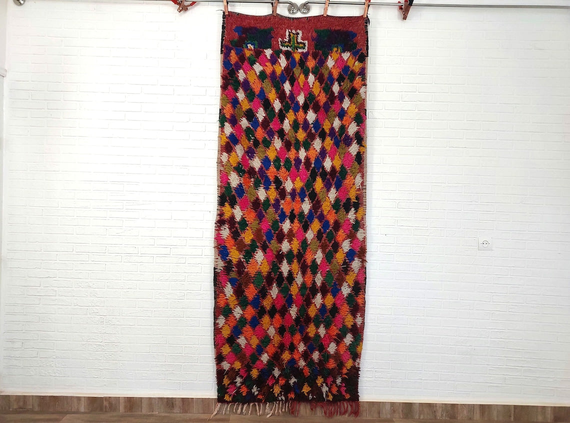 Small Moroccan Rug Runner - Vintage Azilal Rug - Handknotted Rug- Colorful Moroccan Rug - Boucherouite Rug - 3.1x7.8ft