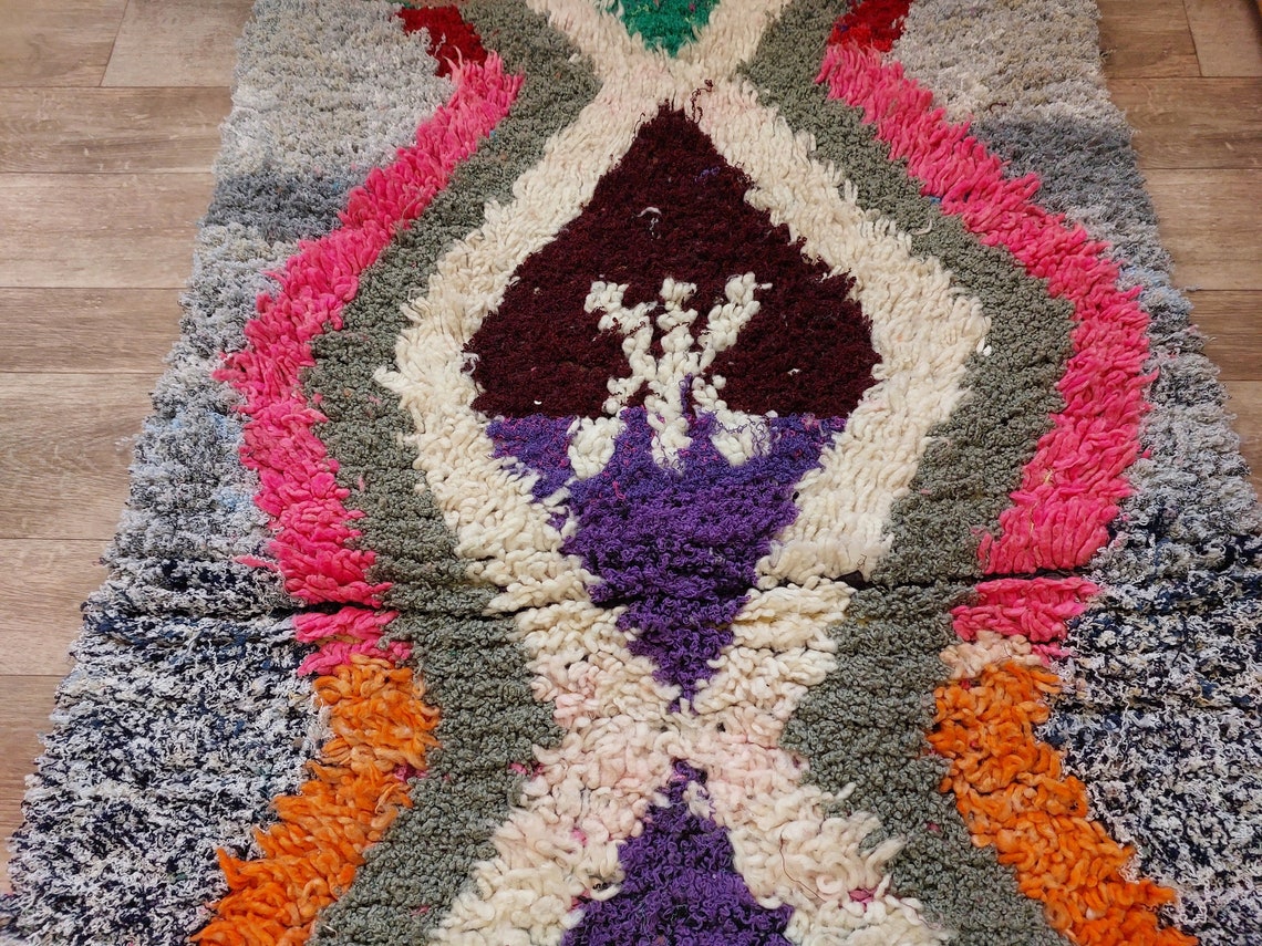 Small Boucherouite Rug , Moroccan Rug Runner - Vintage Azilal Rug - Hand Woven Berber Carpet - Moroccan Rug 100 X 216 cm