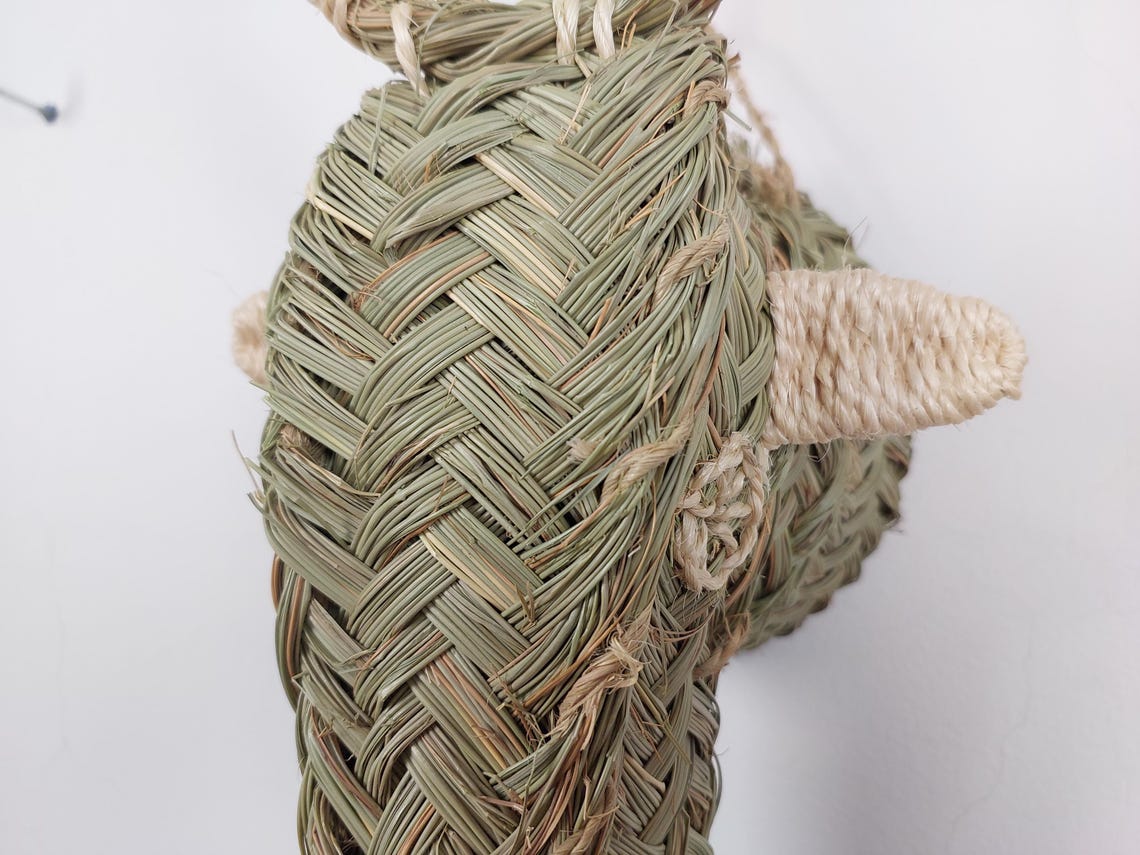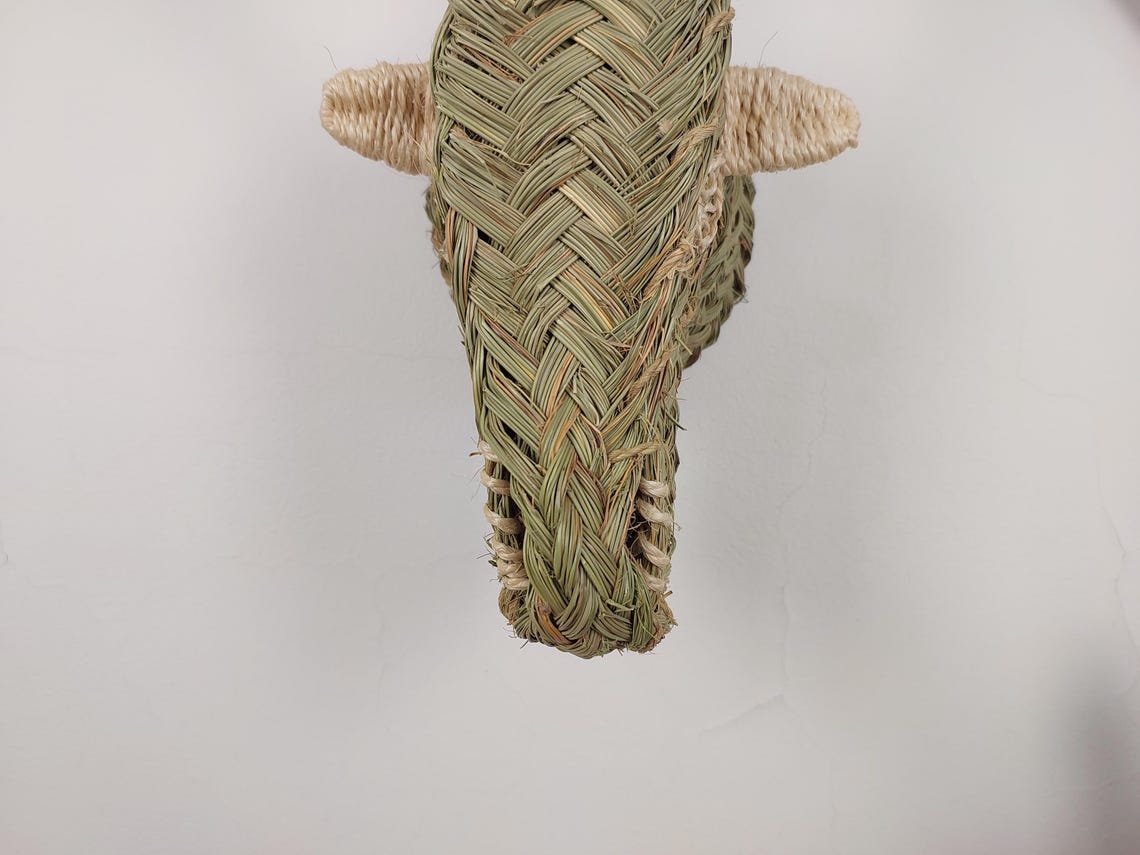 Straw Goat Head Wall Hanging – Custom Handmade Rattan Wall Art, Rustic Boho Animal Head Decor, Moroccan Palm Leaf Trophy