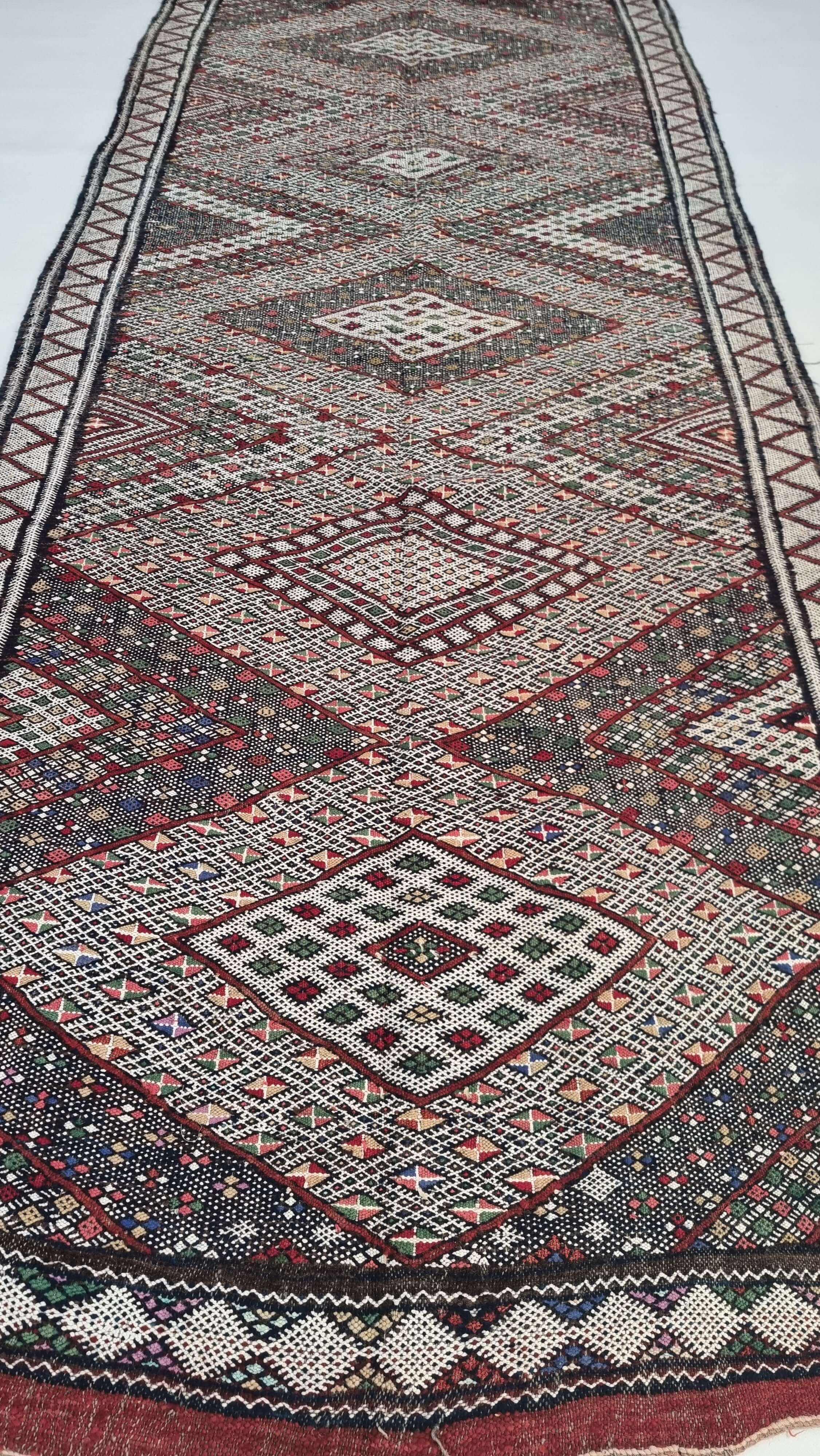 Tarahalt" 4'1"x12'5" Beni mguild, runner rug , Moroccan rug, Berber Rug, kilim rug, cute rug, 70s rug