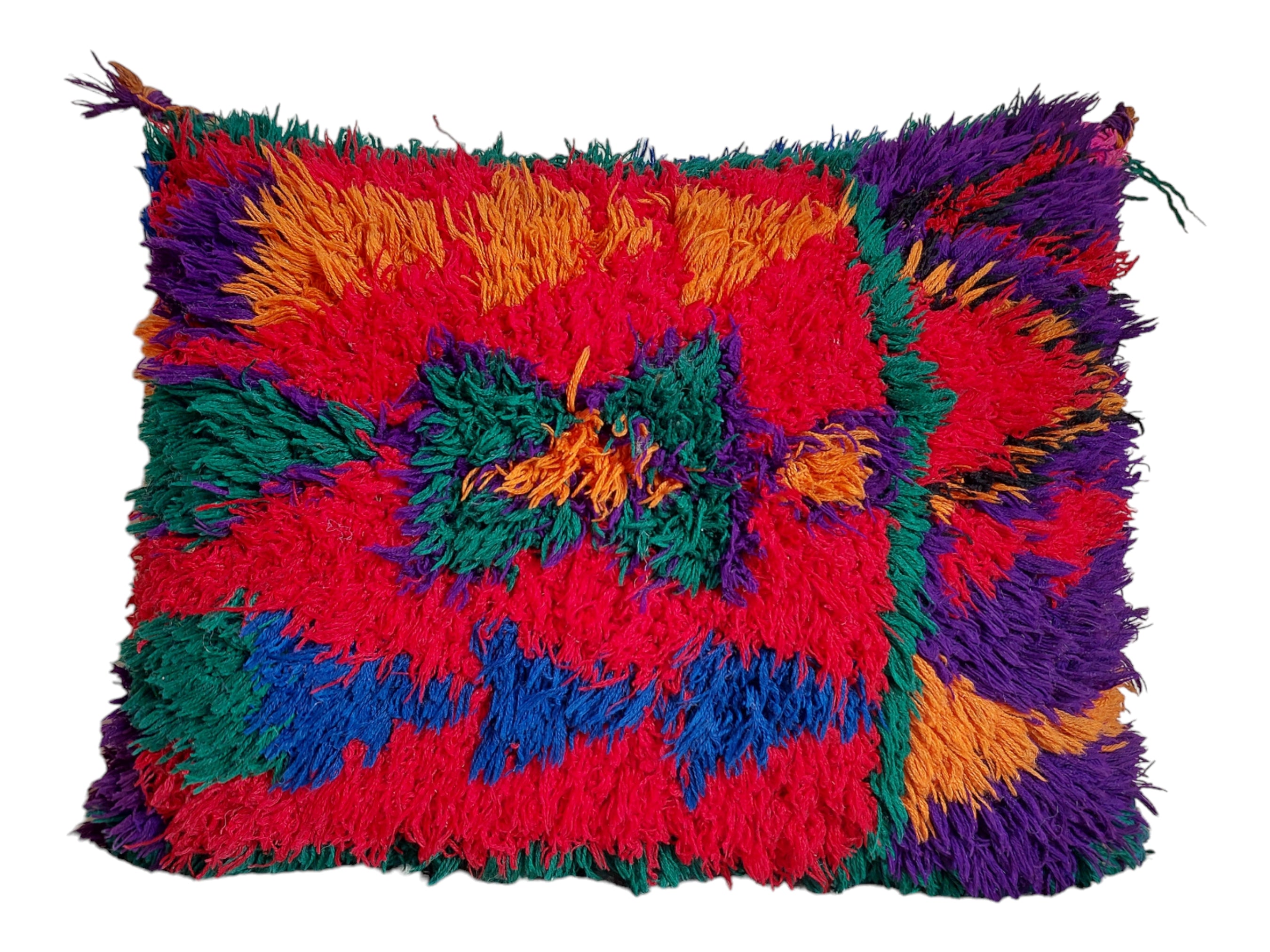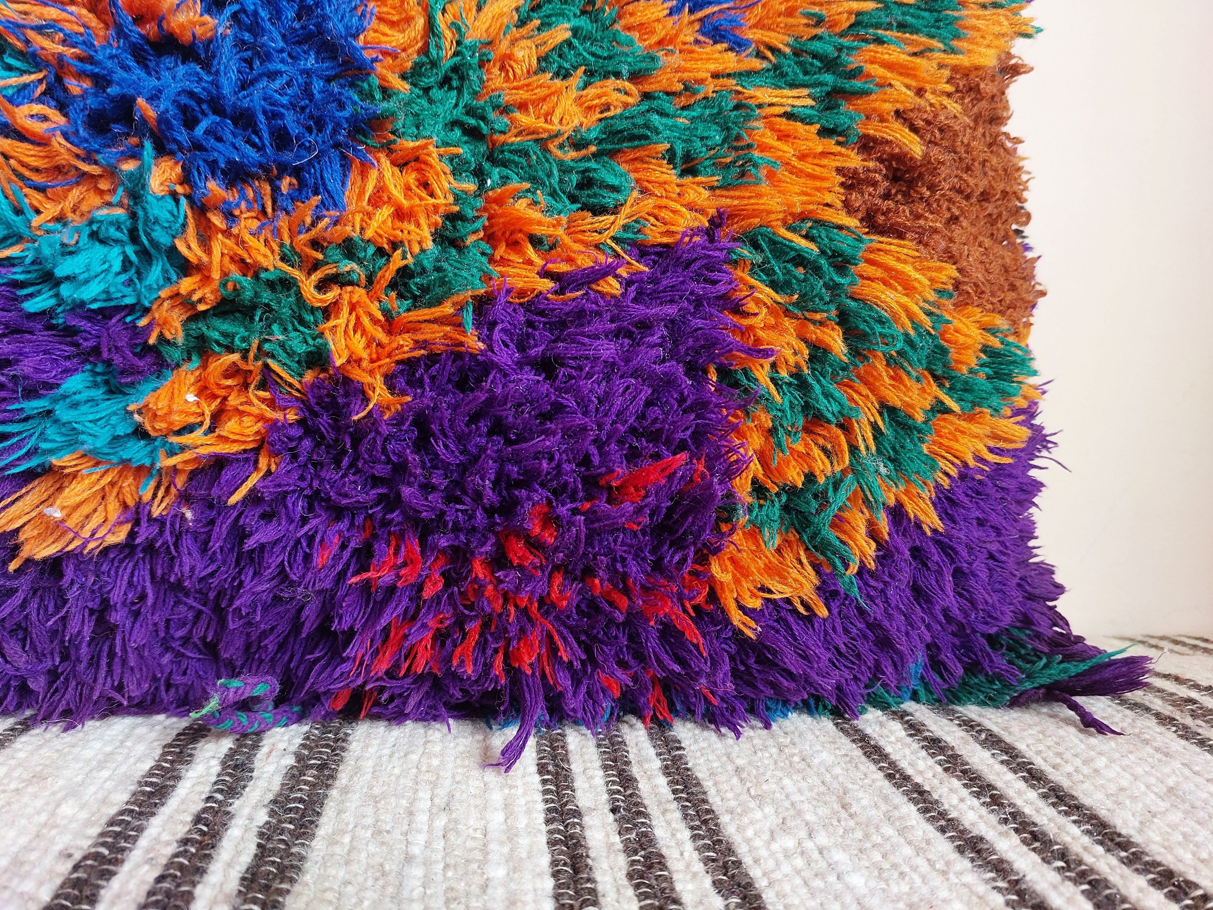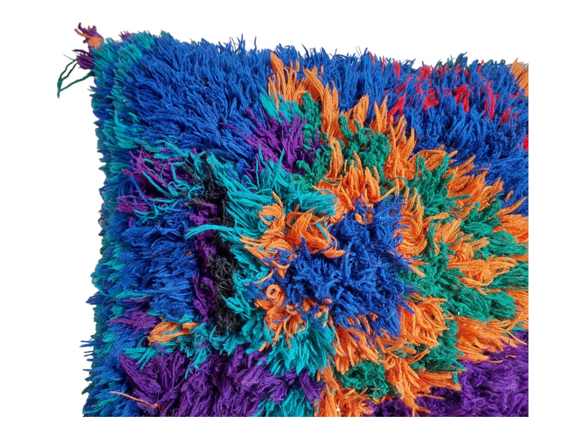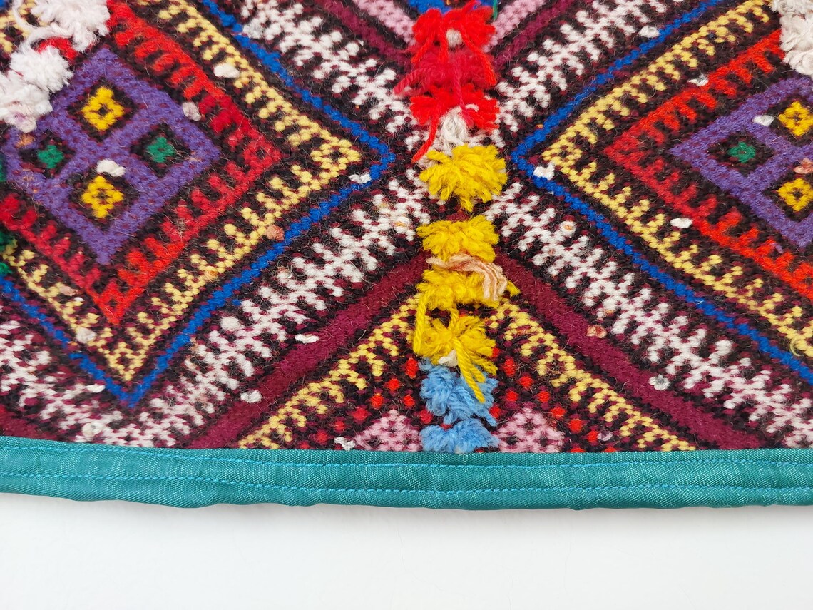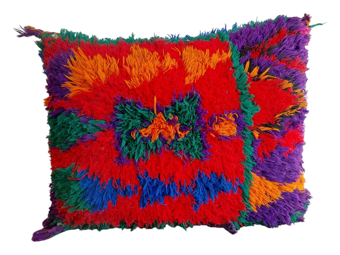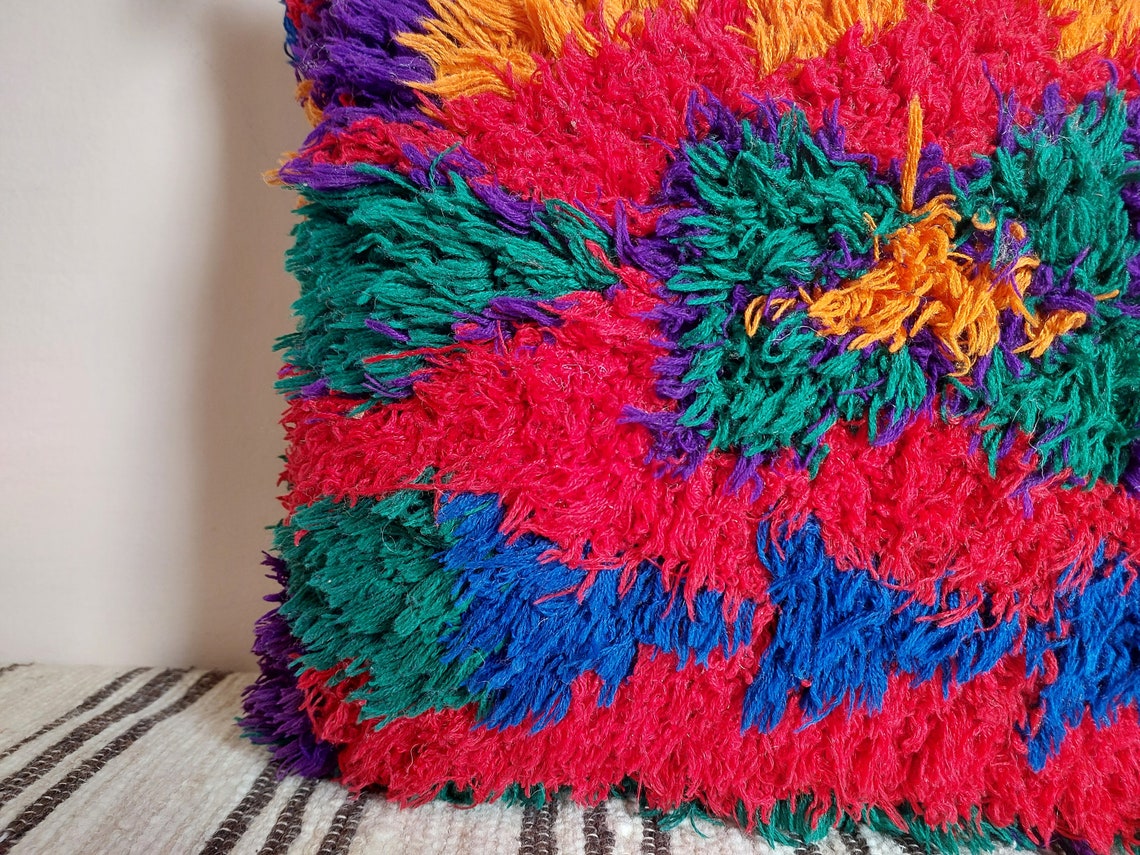 Vintage Ait Bou Ichaouen Cushion - Double Sided Cotton Boho Pillow - Tribal Cushion - Pillow Case - Handmade Boucherouite Pillow