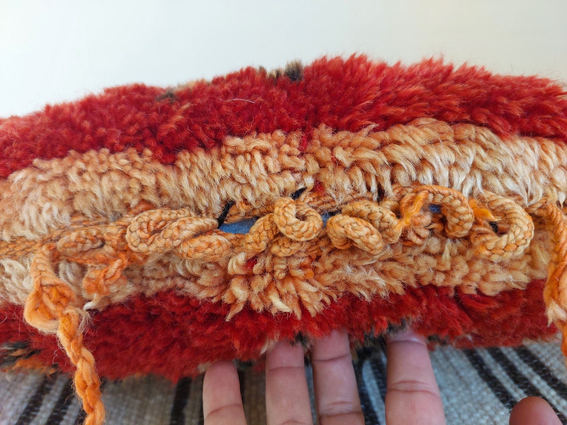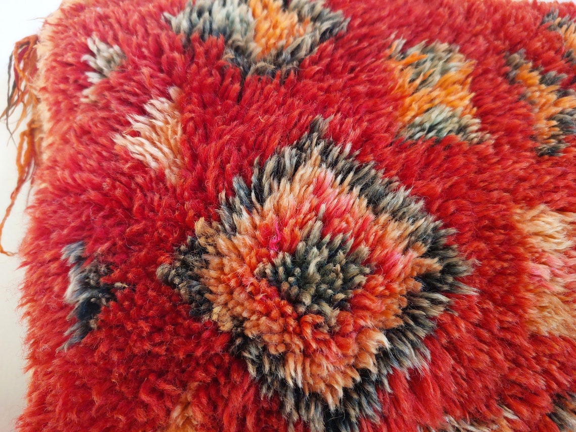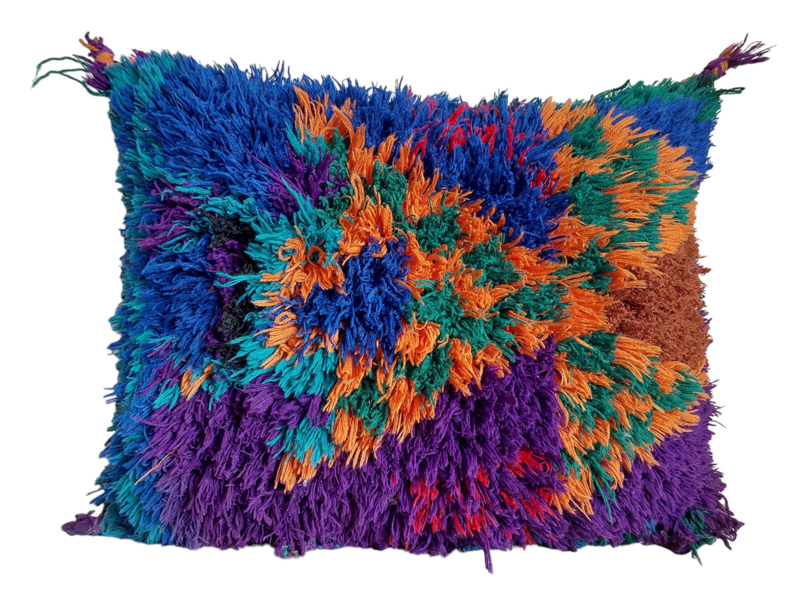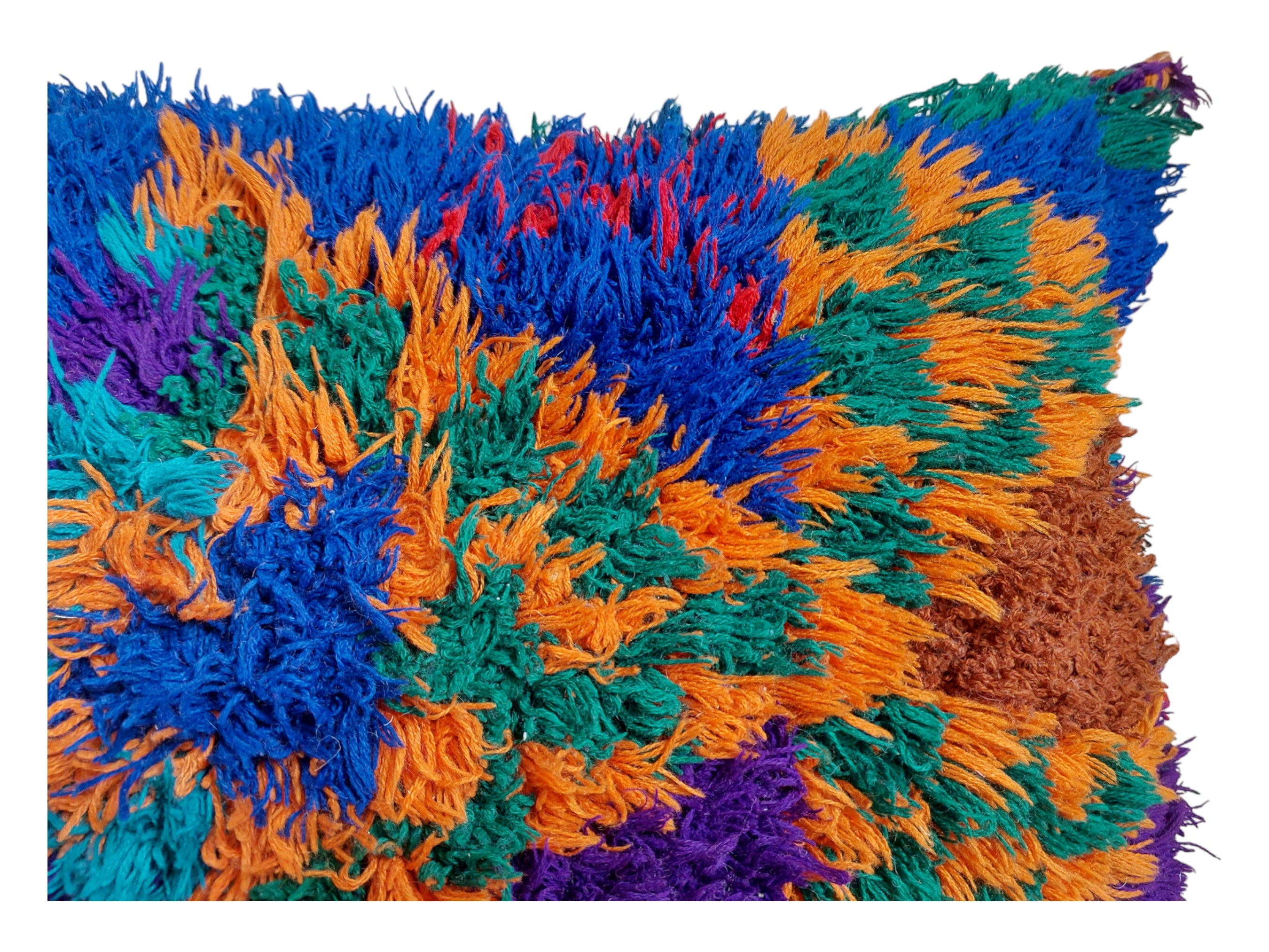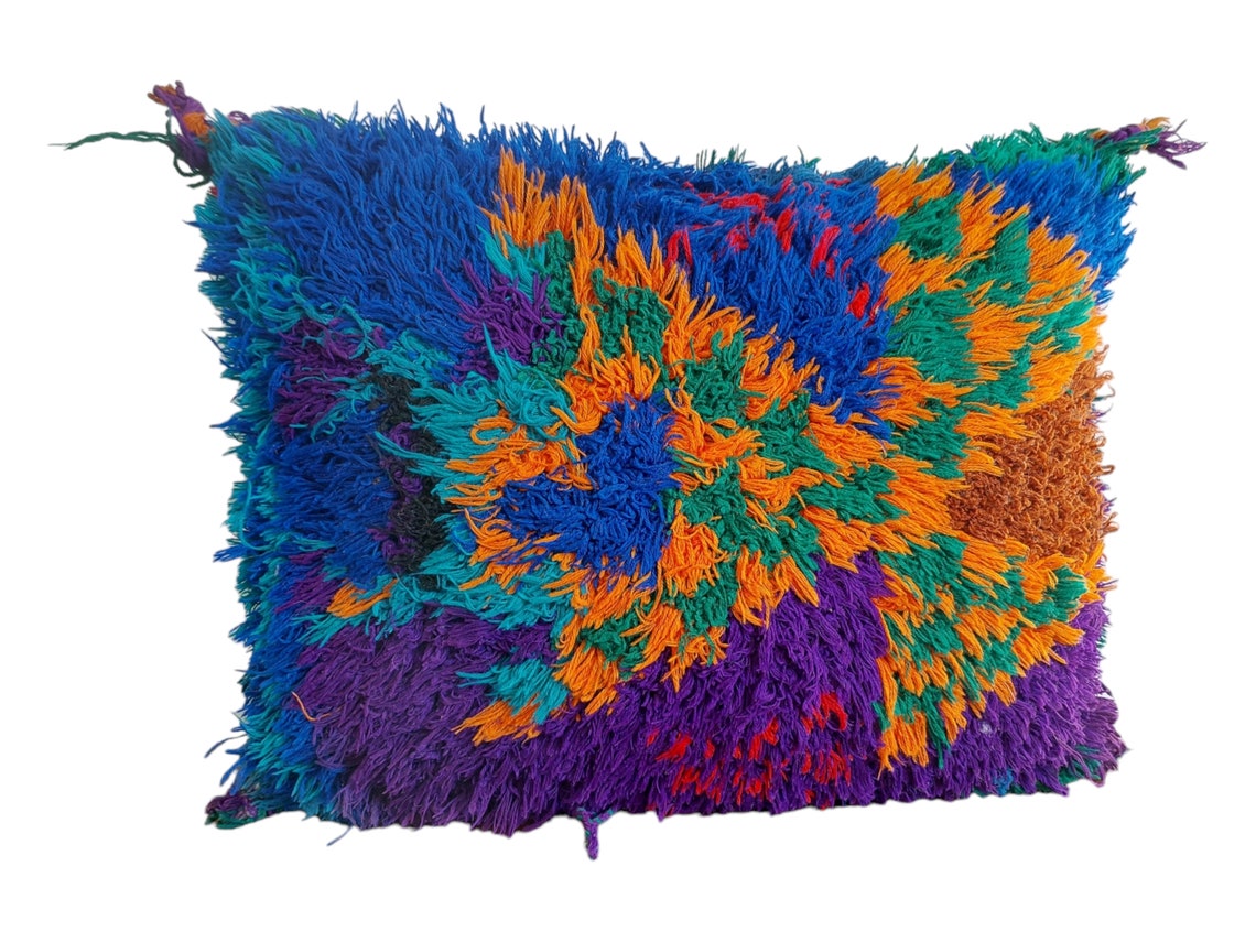 Vintage Ait Bou Ichaouen Cushion - Double Sided Cotton Boho Pillow - Tribal Cushion - Pillow Case - Handmade Boucherouite Pillow