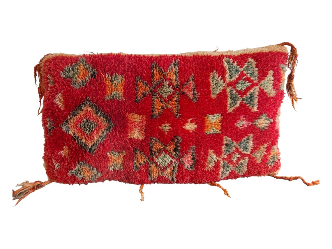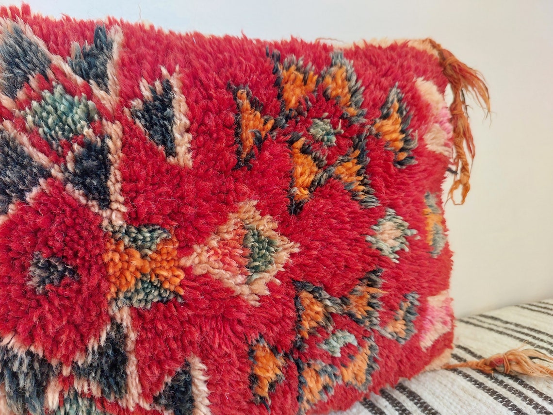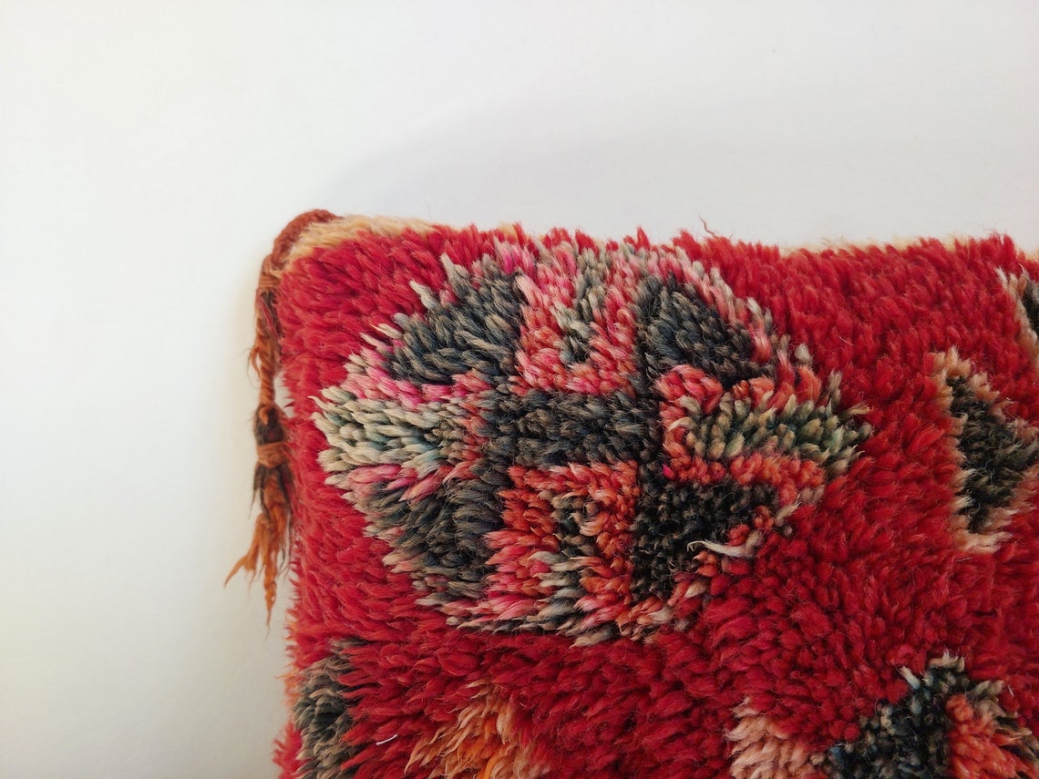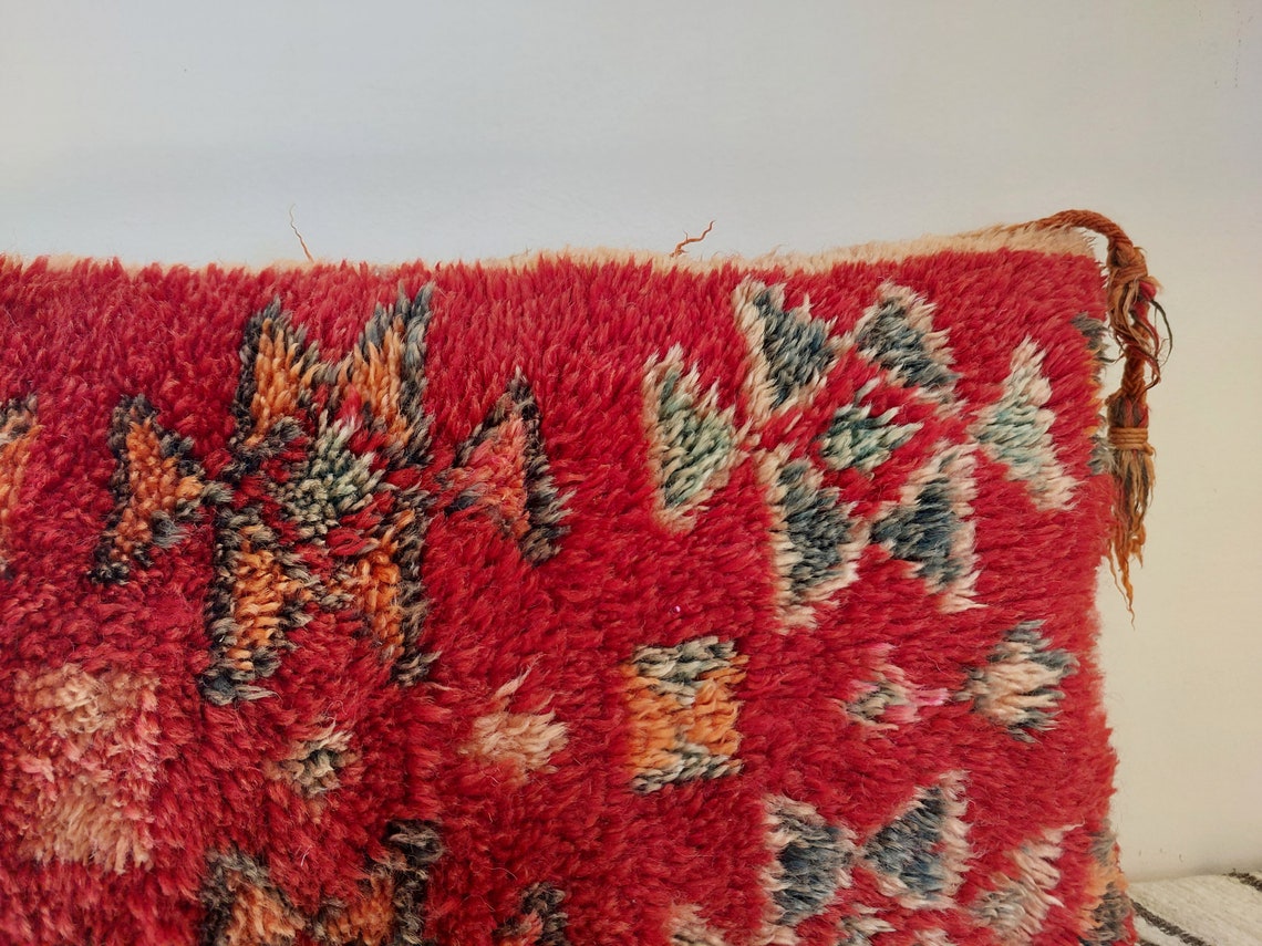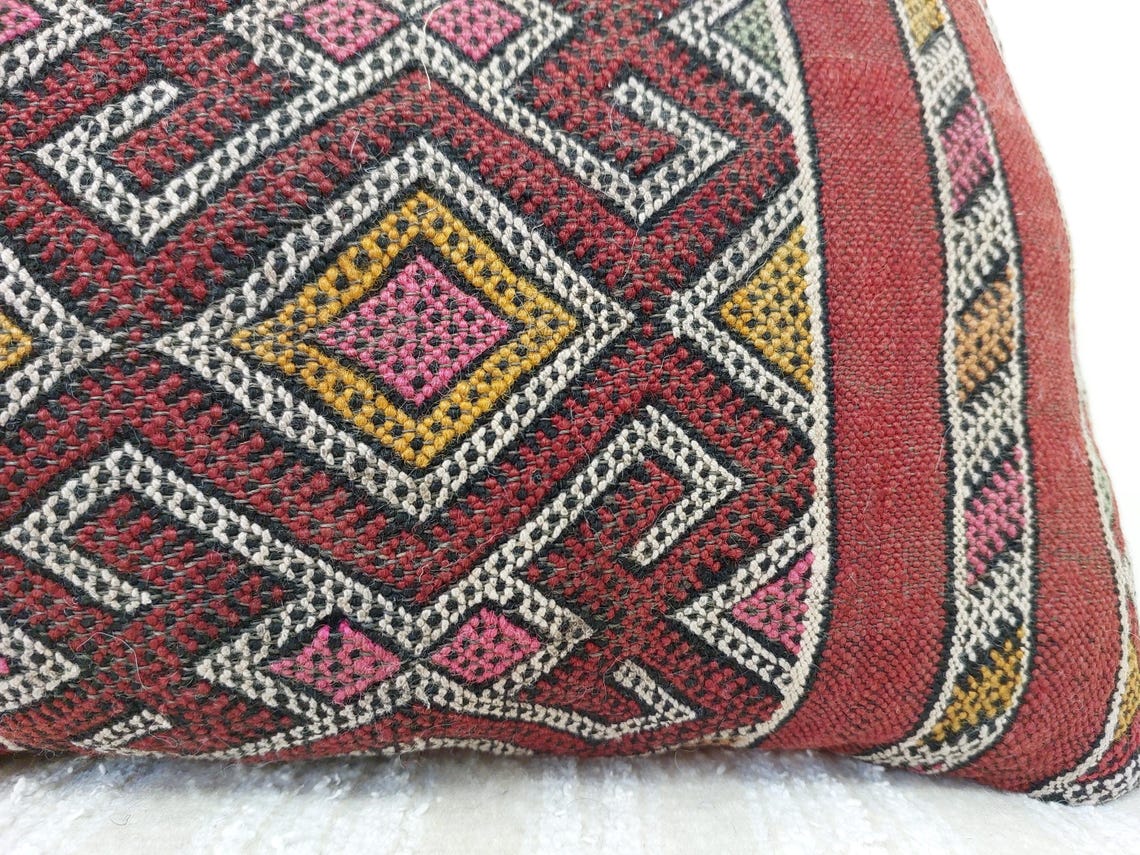 Vintage Ait Bou Ichaouen Cushion: Double-sided Handmade Moroccan Berber Wool Pillow Case In Red And Pink