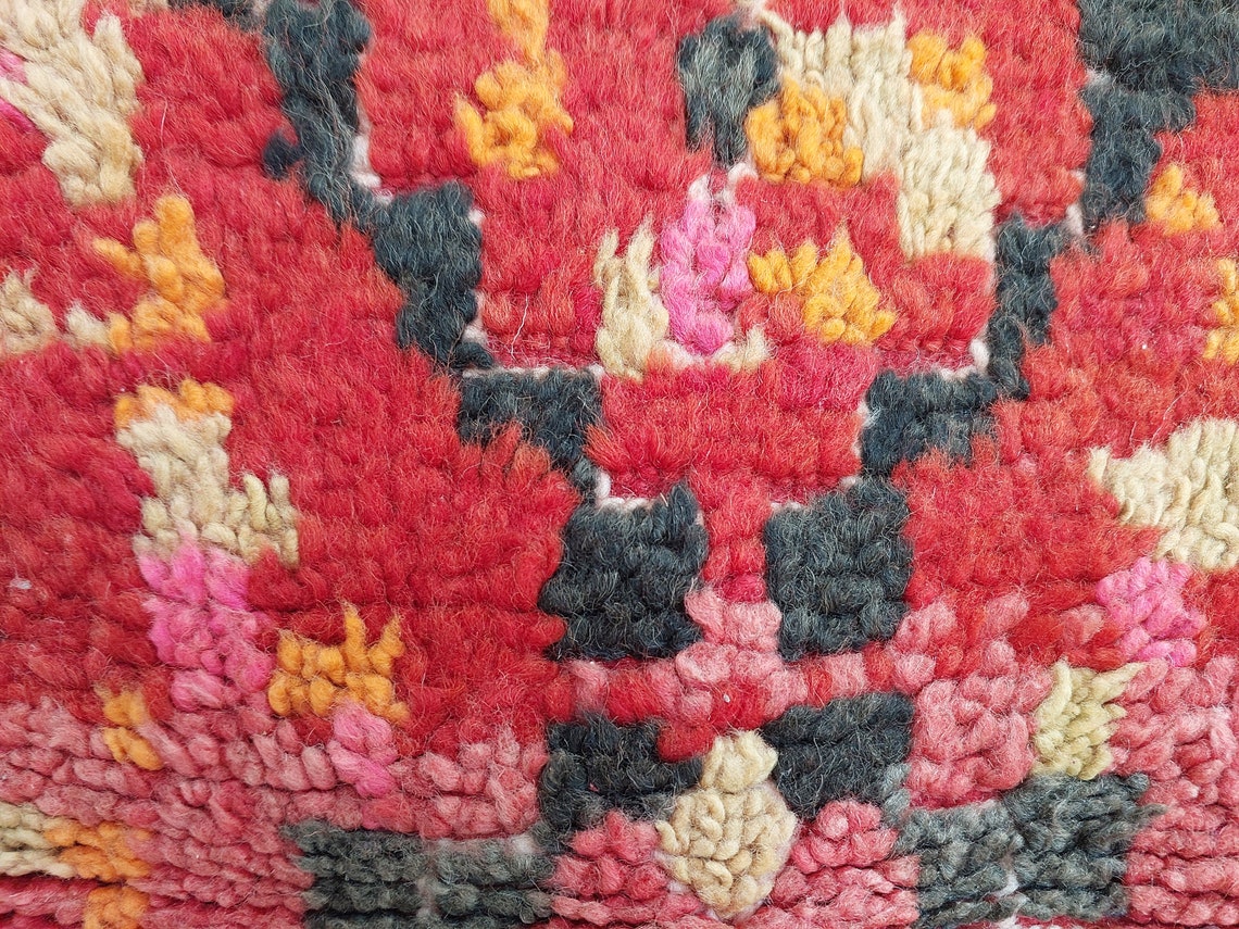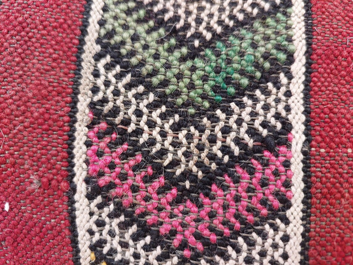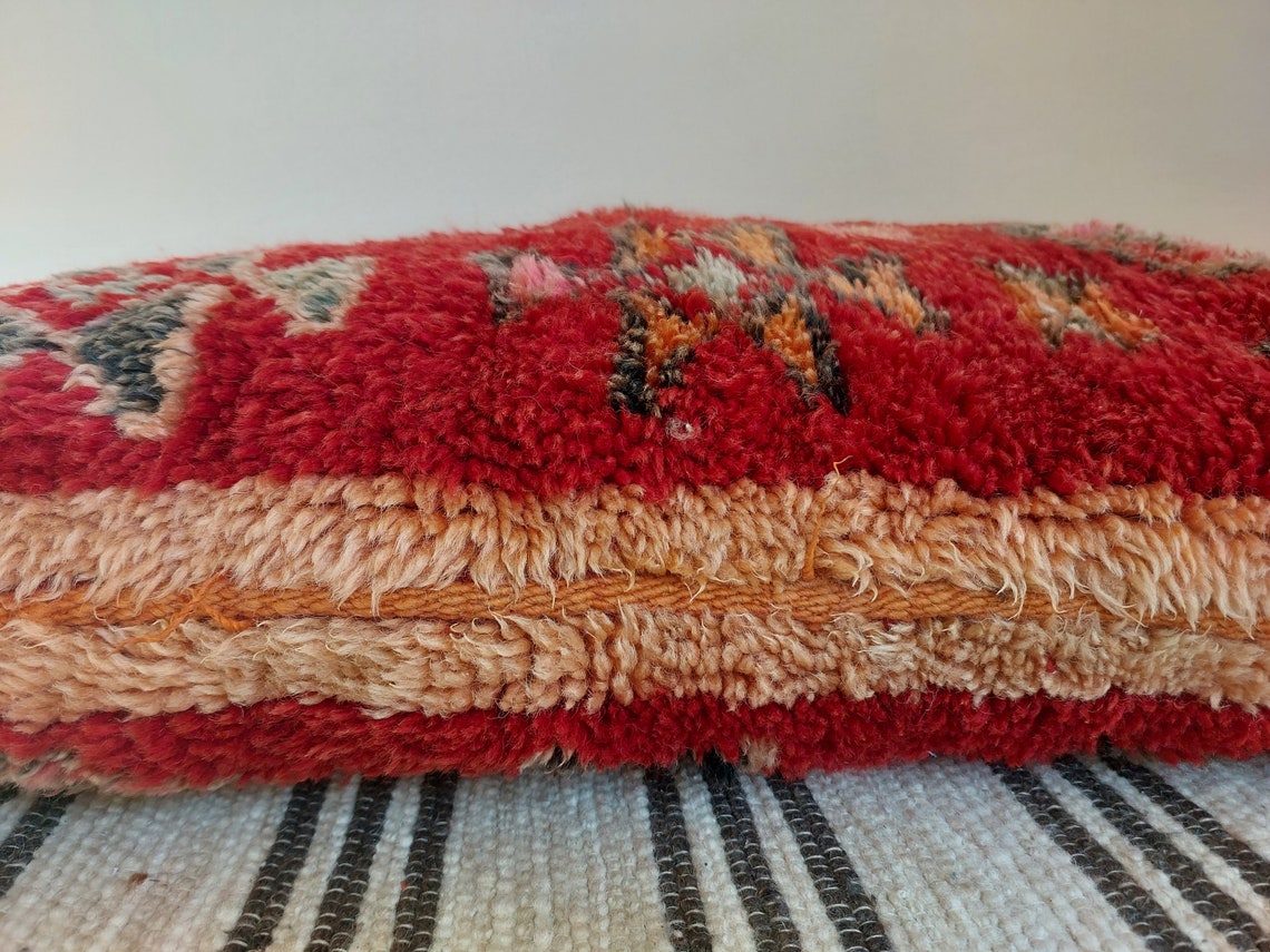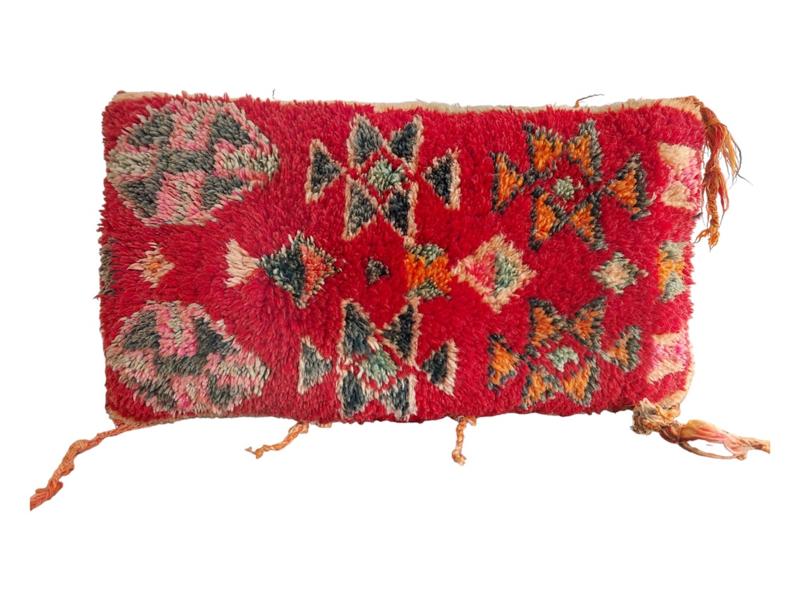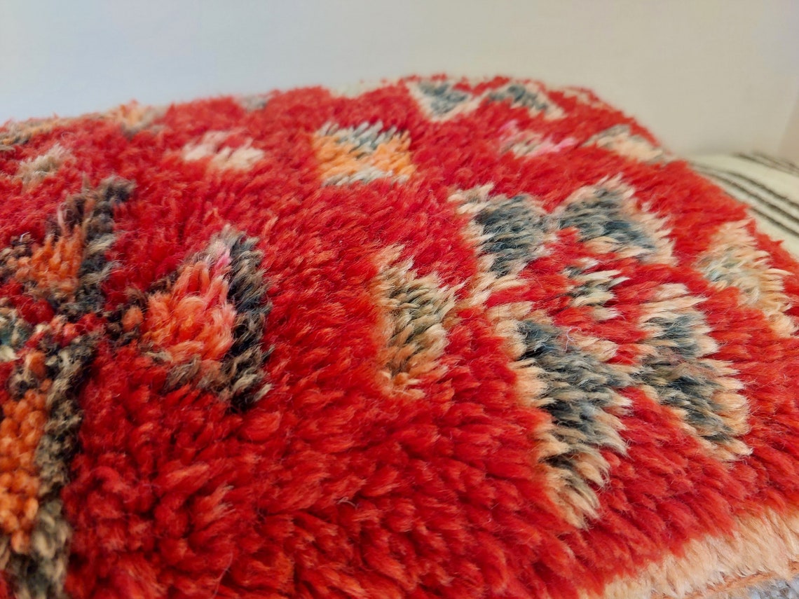 Vintage Ait Bou Ichaouen Cushion: Double-sided Handmade Moroccan Berber Wool Pillow Case In Red And Pink