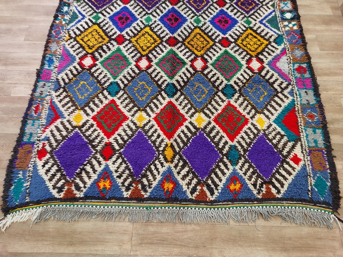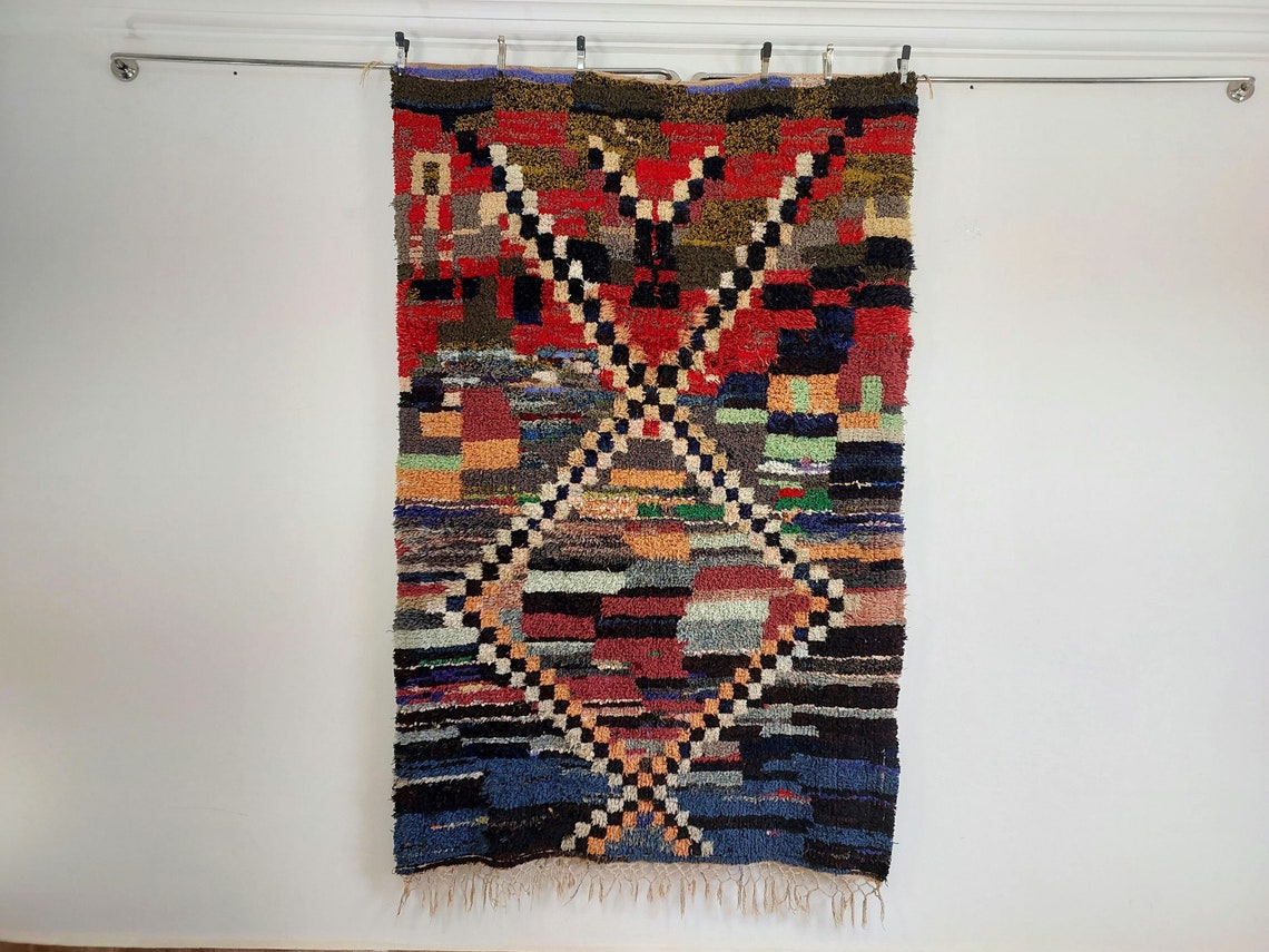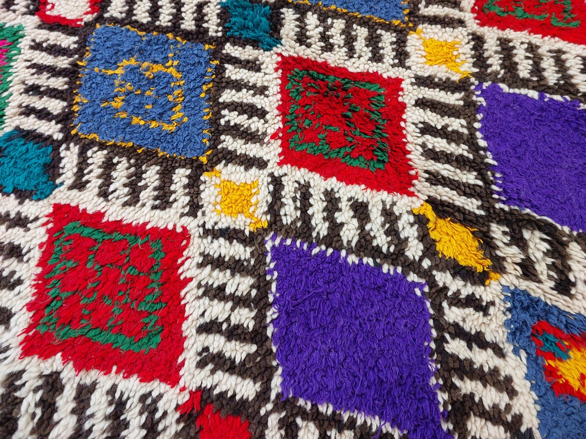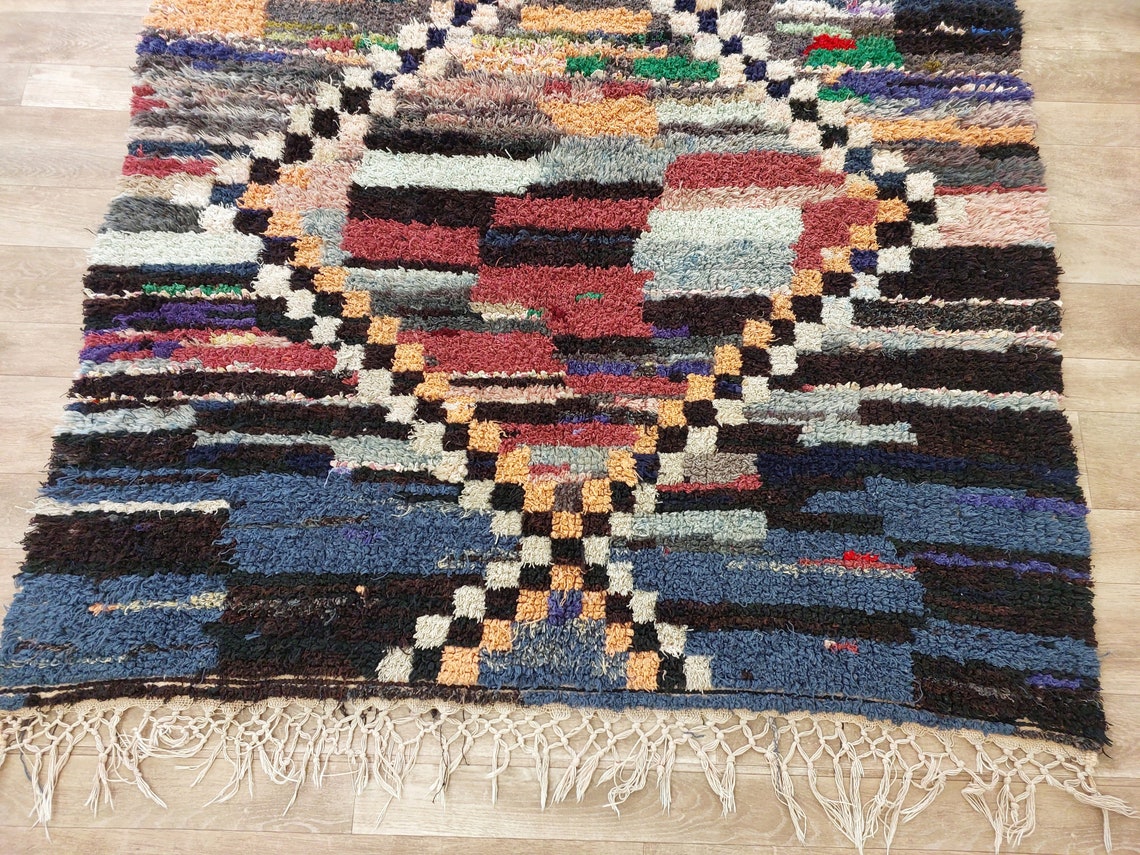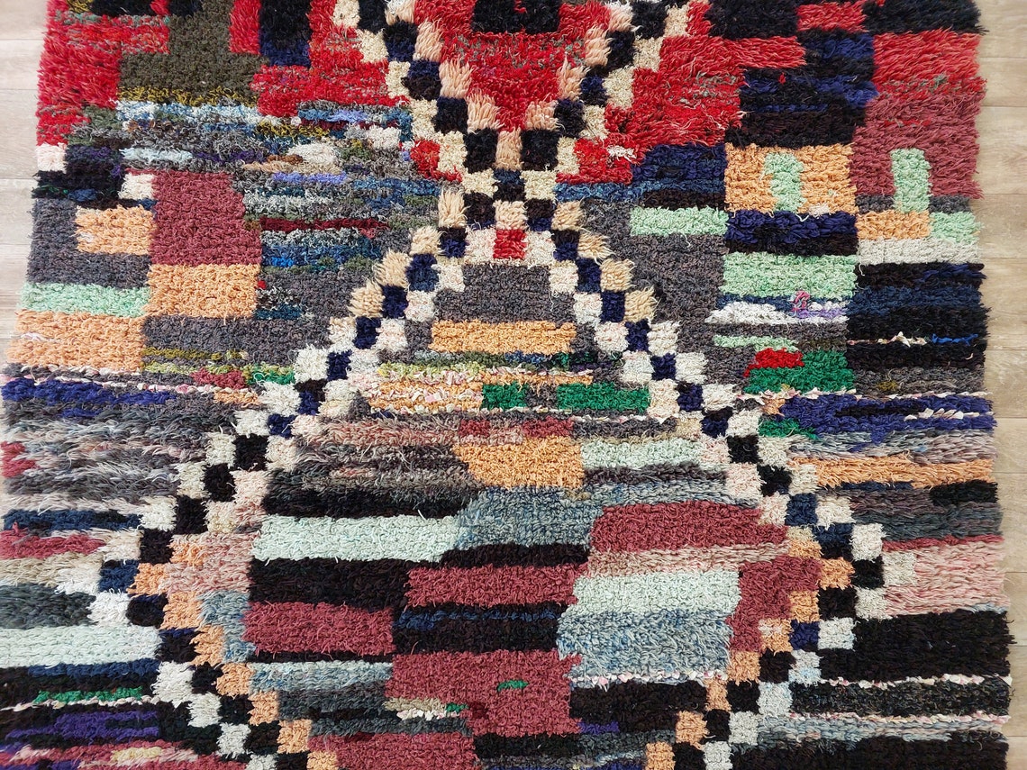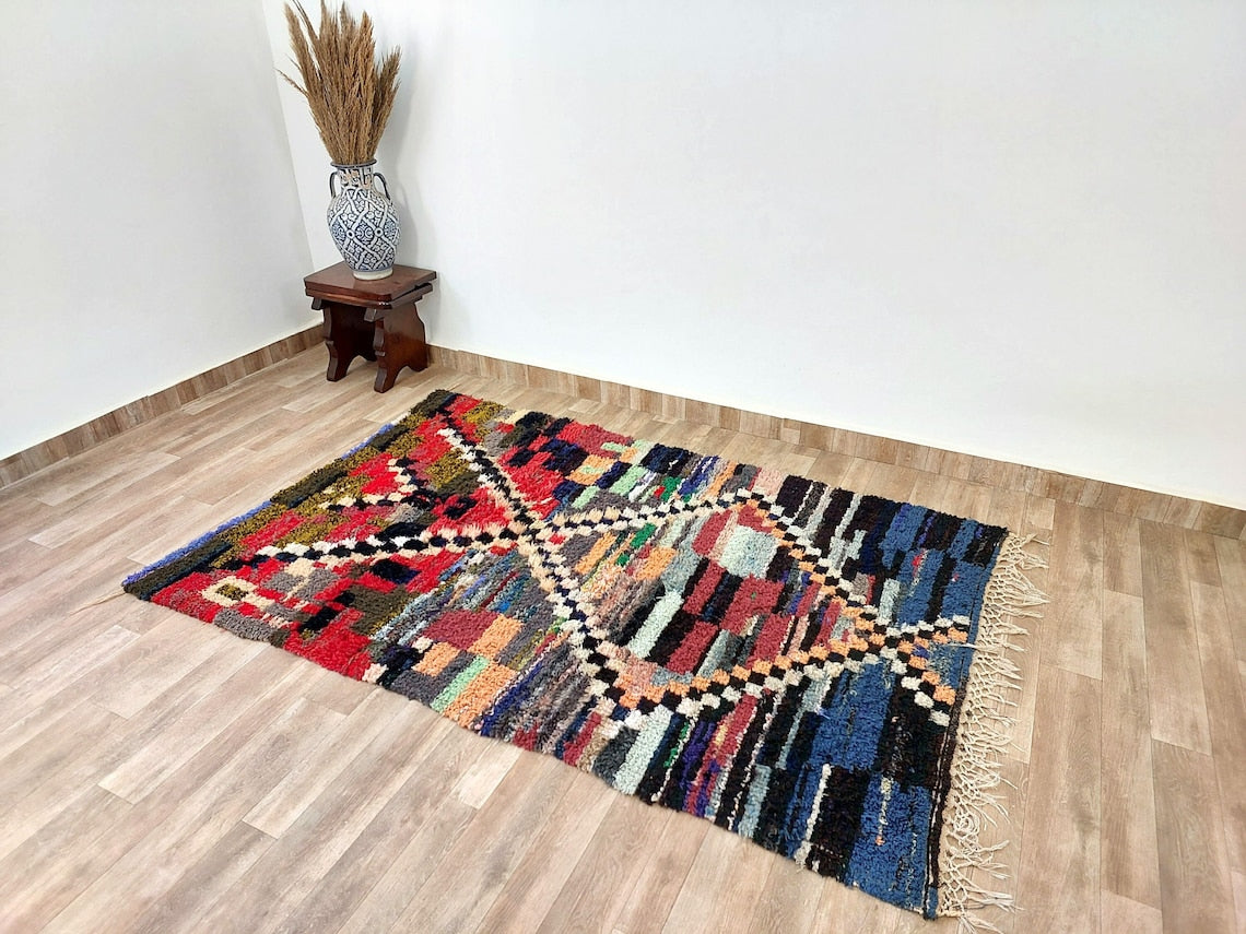 Vibrant Moroccan Boucherouite Rug: Handwoven Recycled Art Carpet for Entryway (4'4"x7')