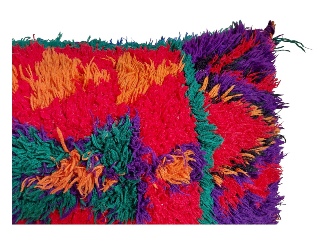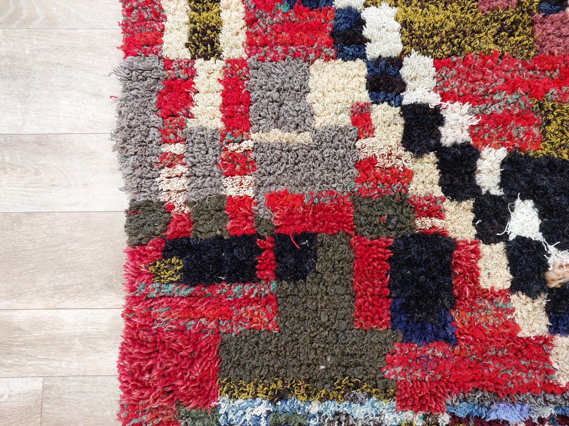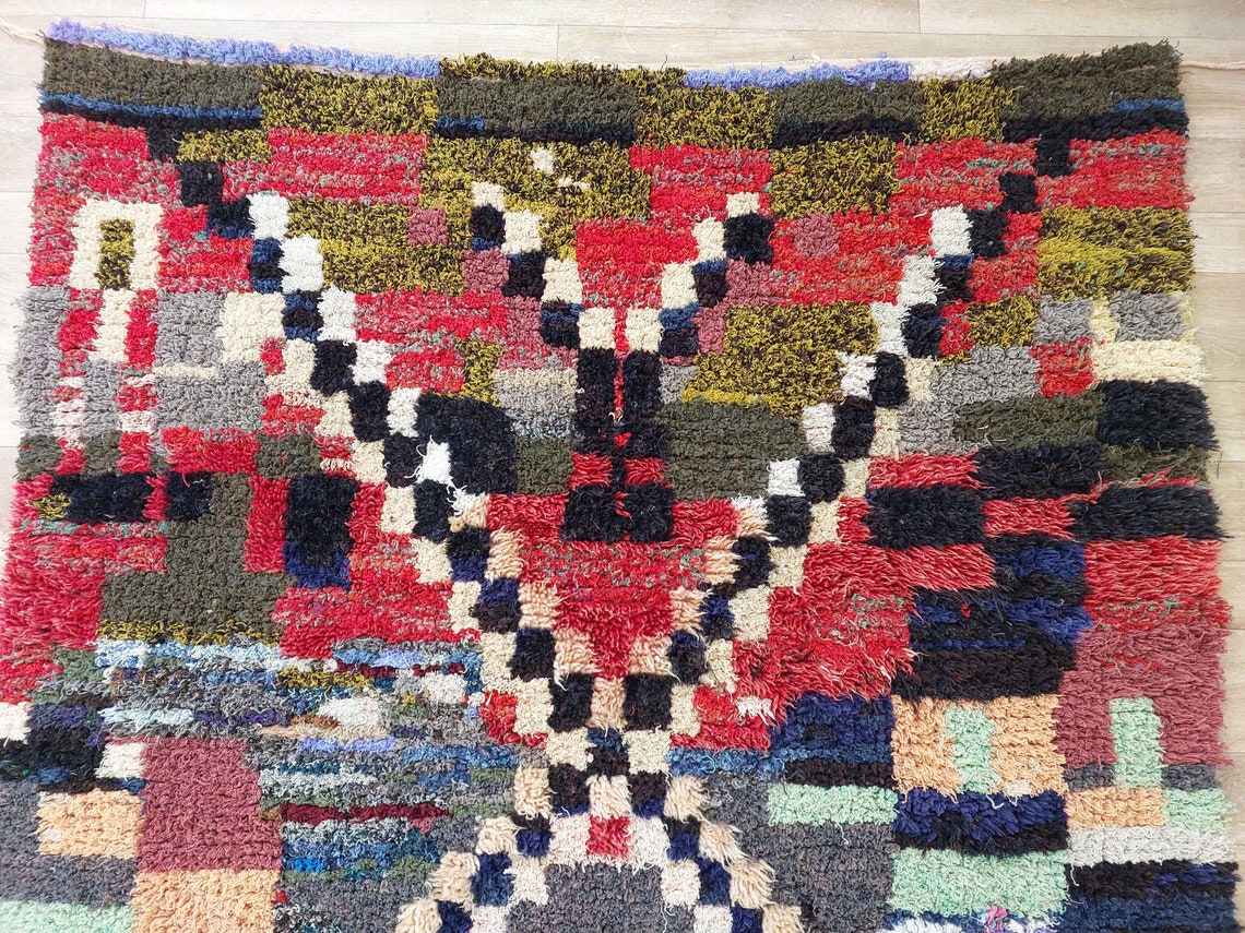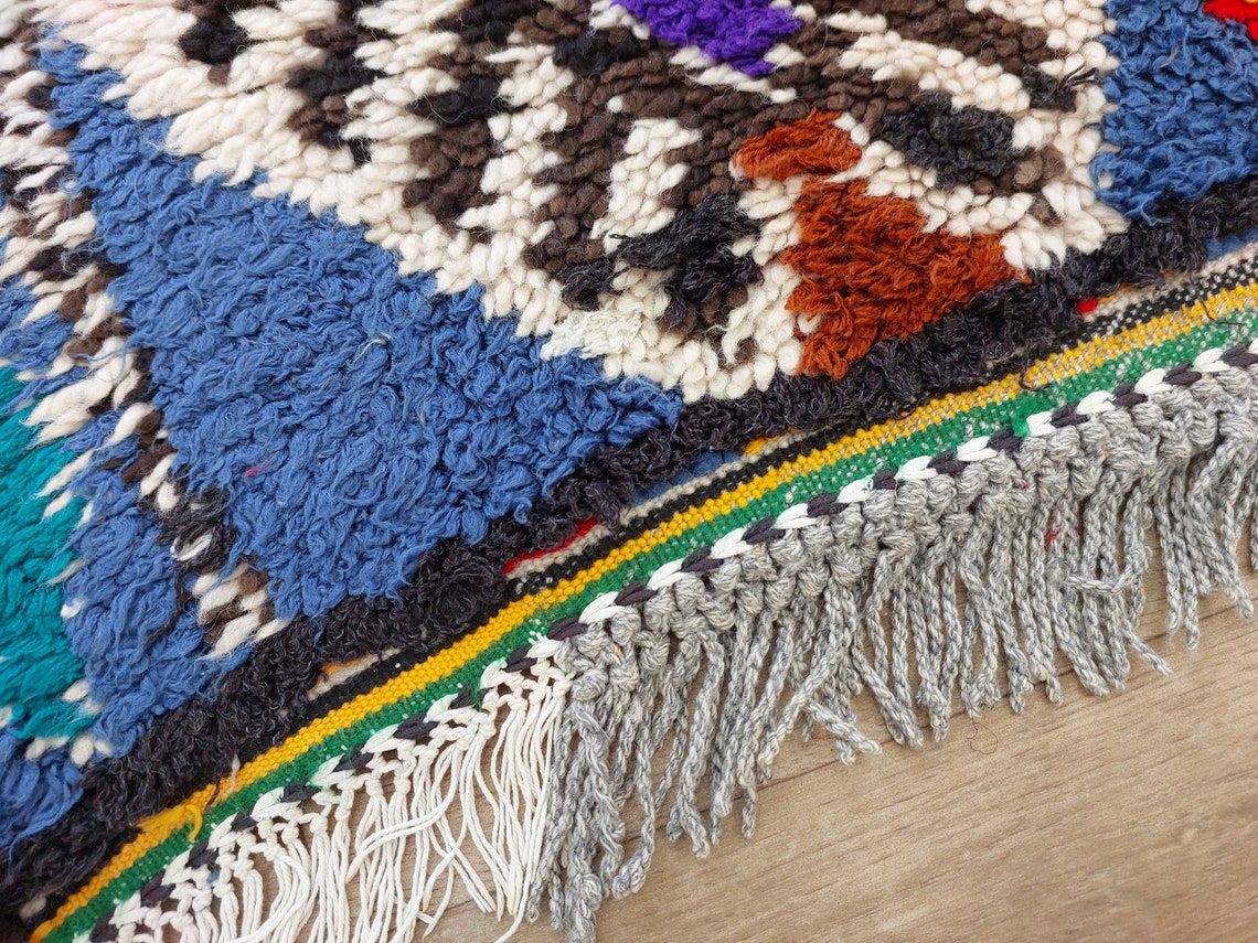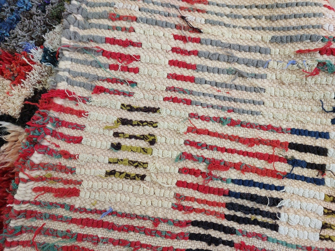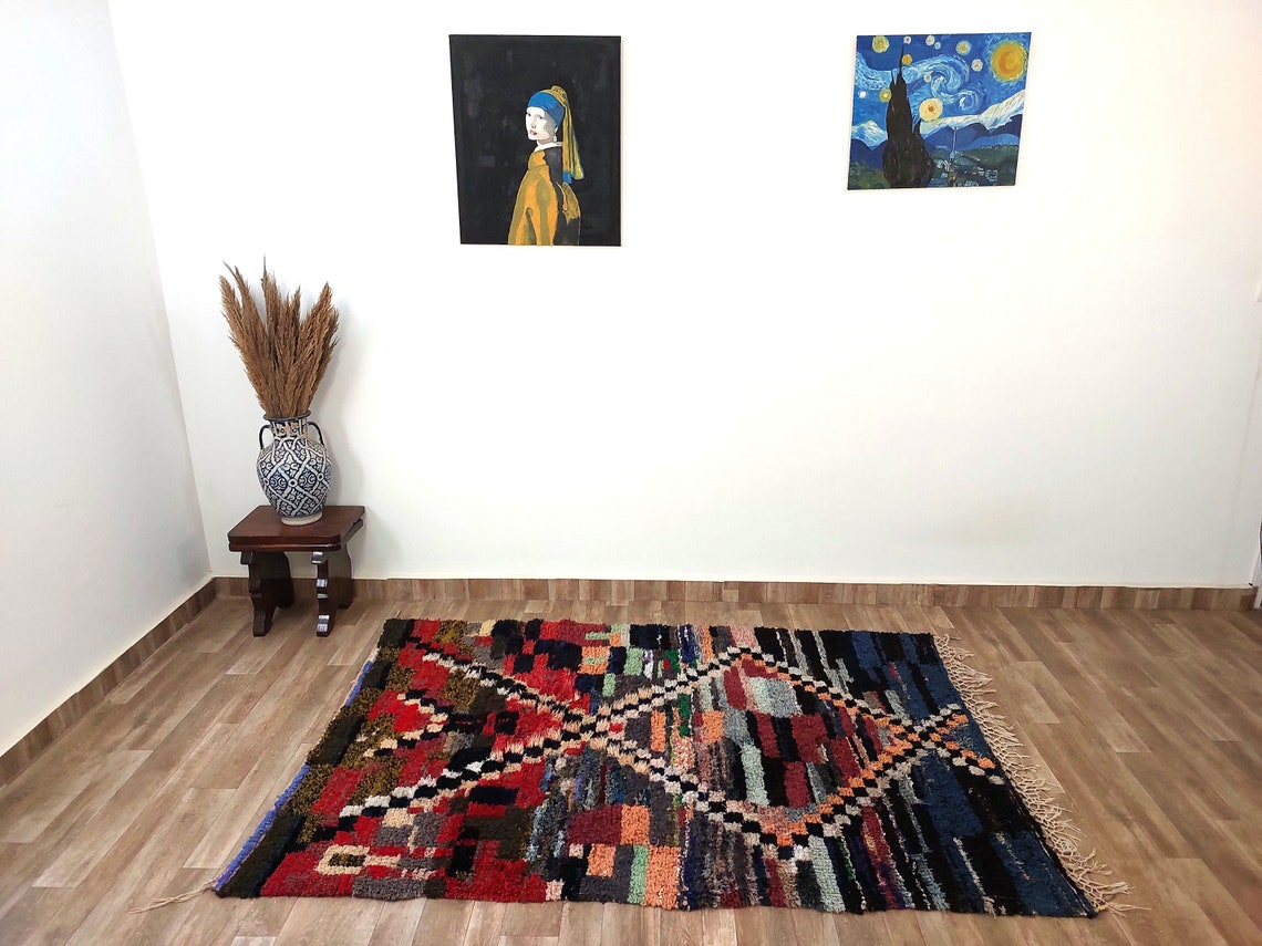 Vibrant Moroccan Boucherouite Rug: Handwoven Recycled Art Carpet for Entryway (4'4"x7')