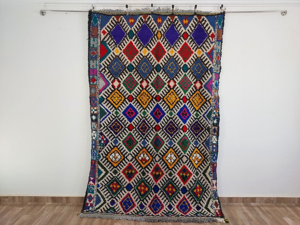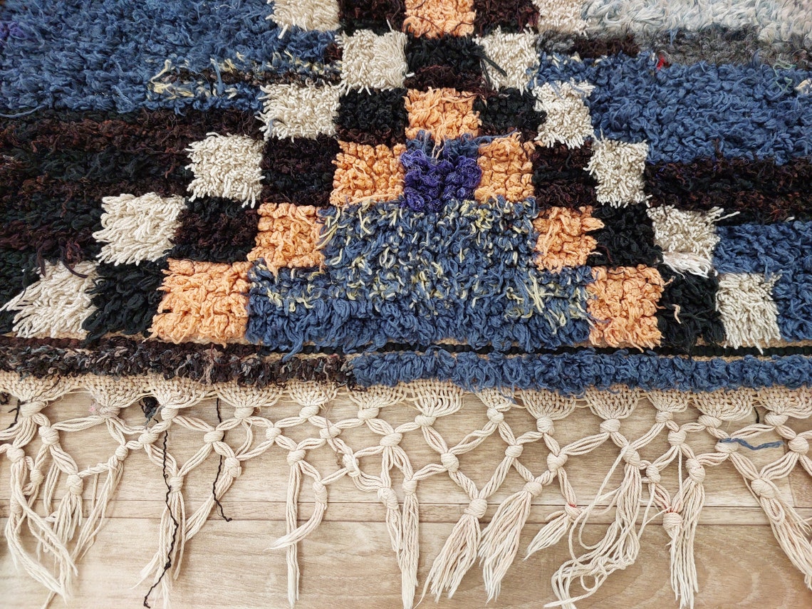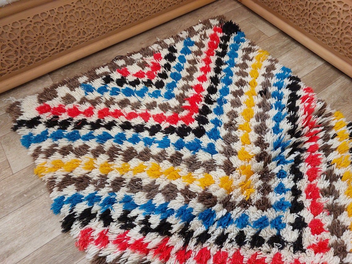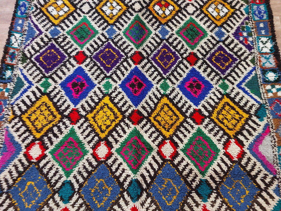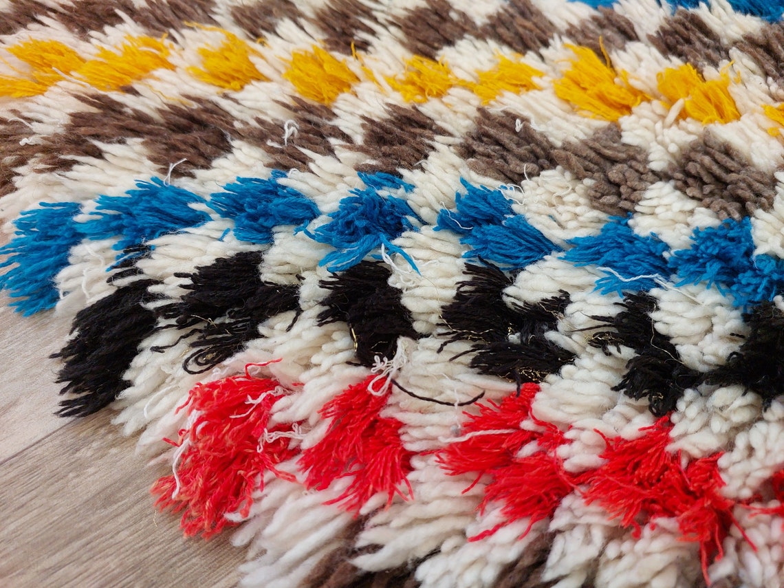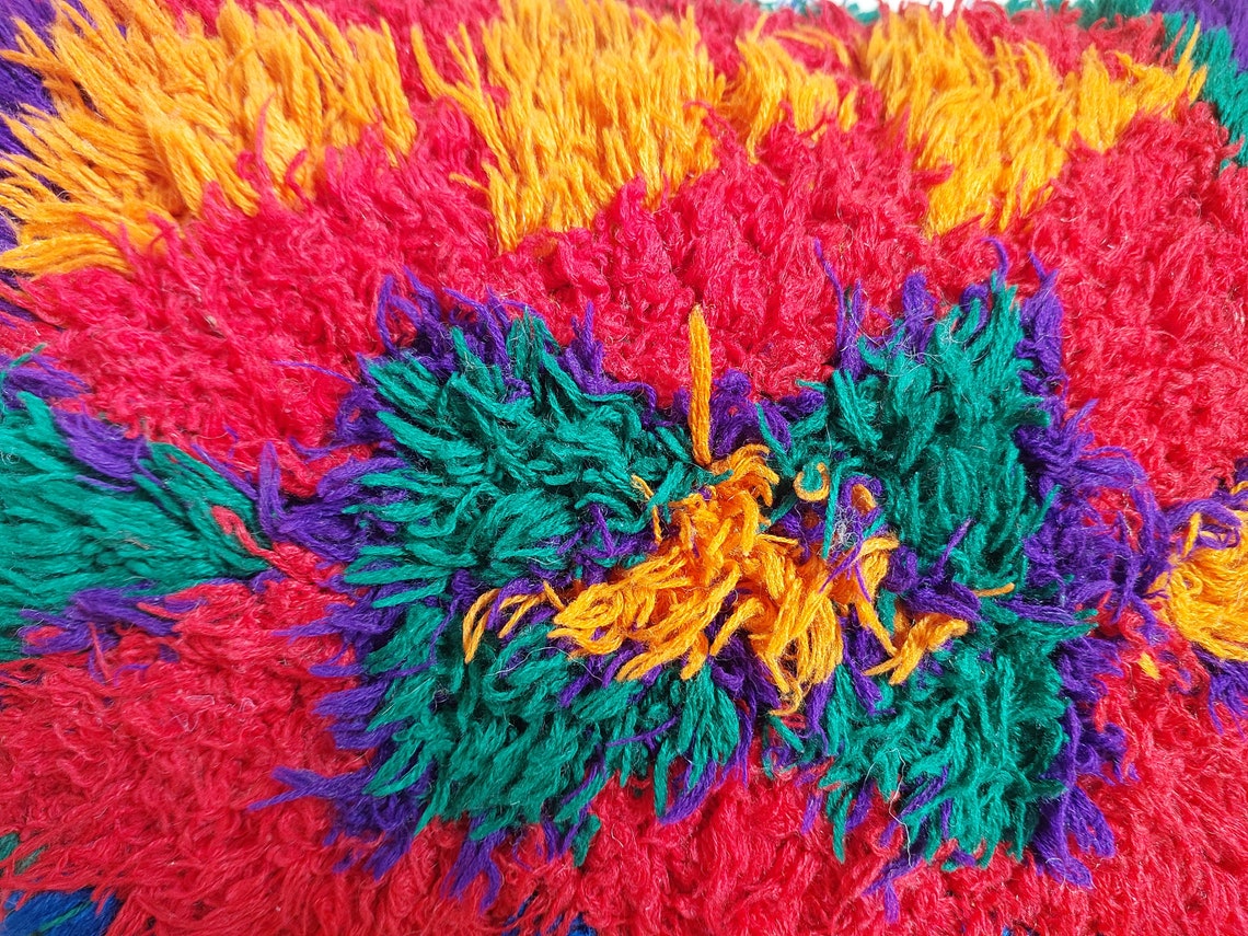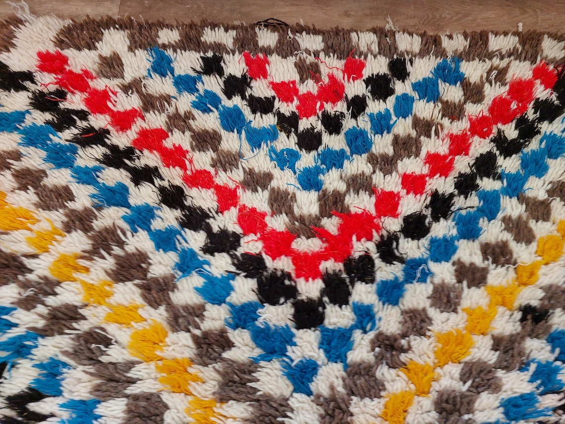 Vibrant Moroccan Boucherouite Rug: Handwoven Recycled Art Carpet for Entryway (4'4"x7')