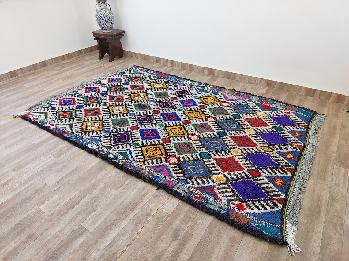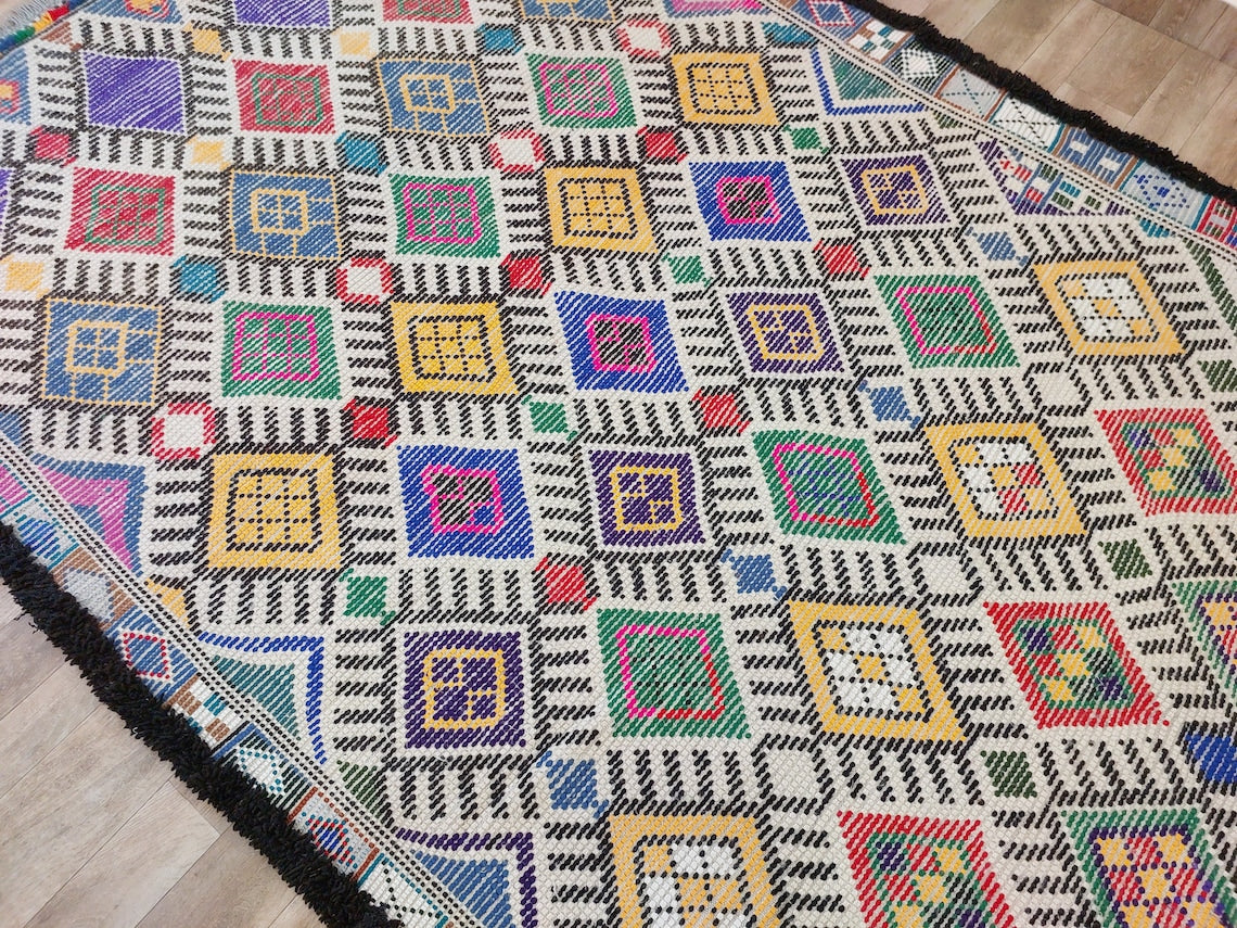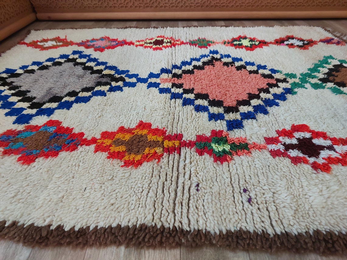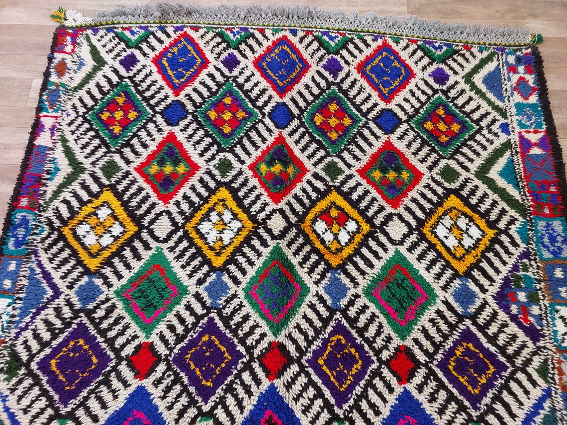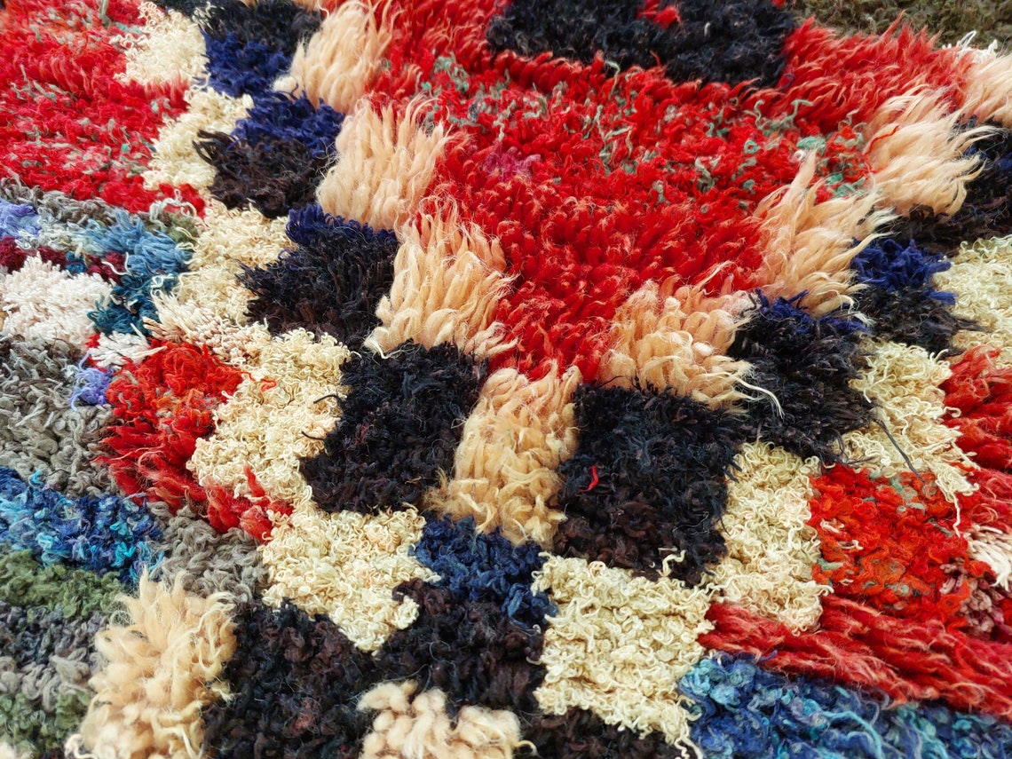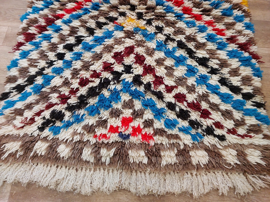 Vibrant Moroccan Boucherouite Rug: Handwoven Recycled Art Carpet for Entryway (4'4"x7')