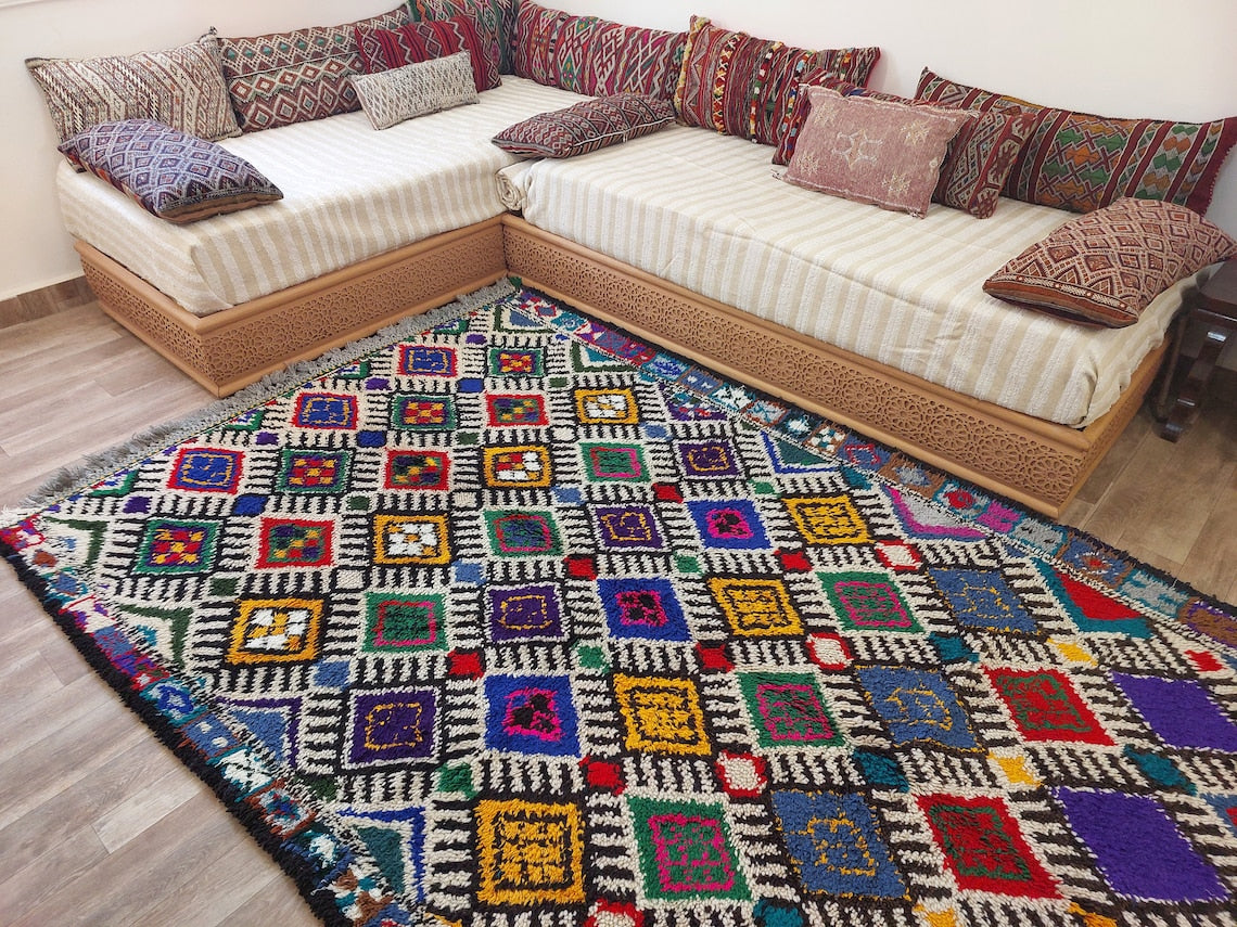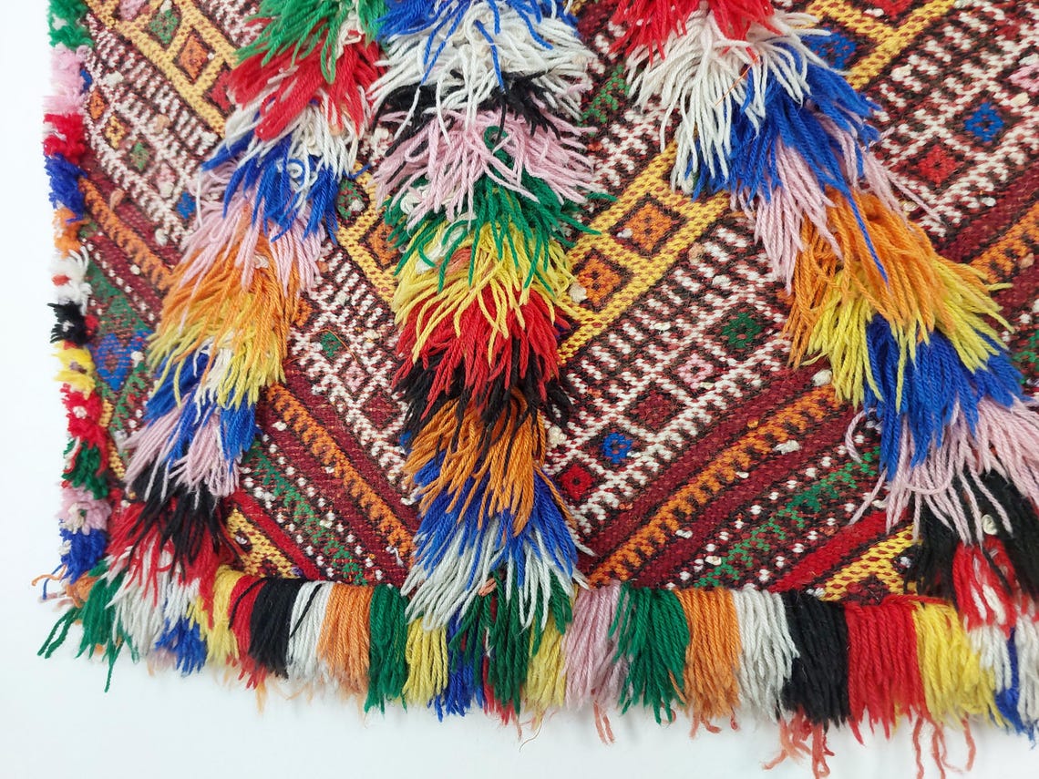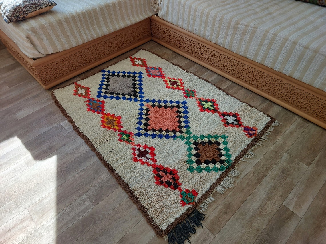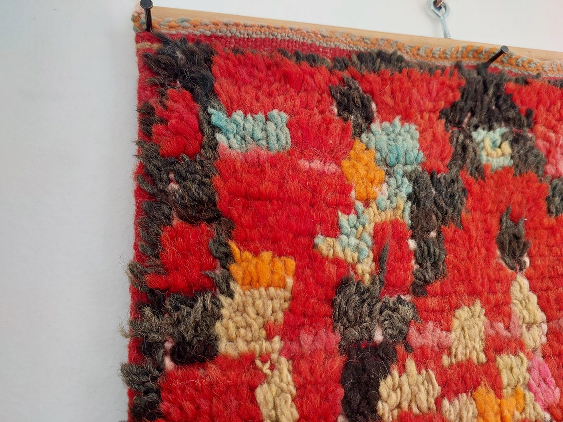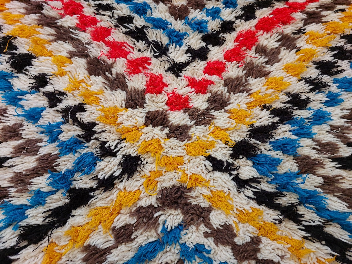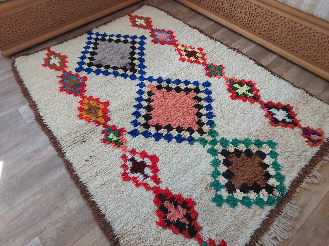 Vibrant Moroccan Boucherouite Rug: Handwoven Recycled Art Carpet for Entryway (4'4"x7')