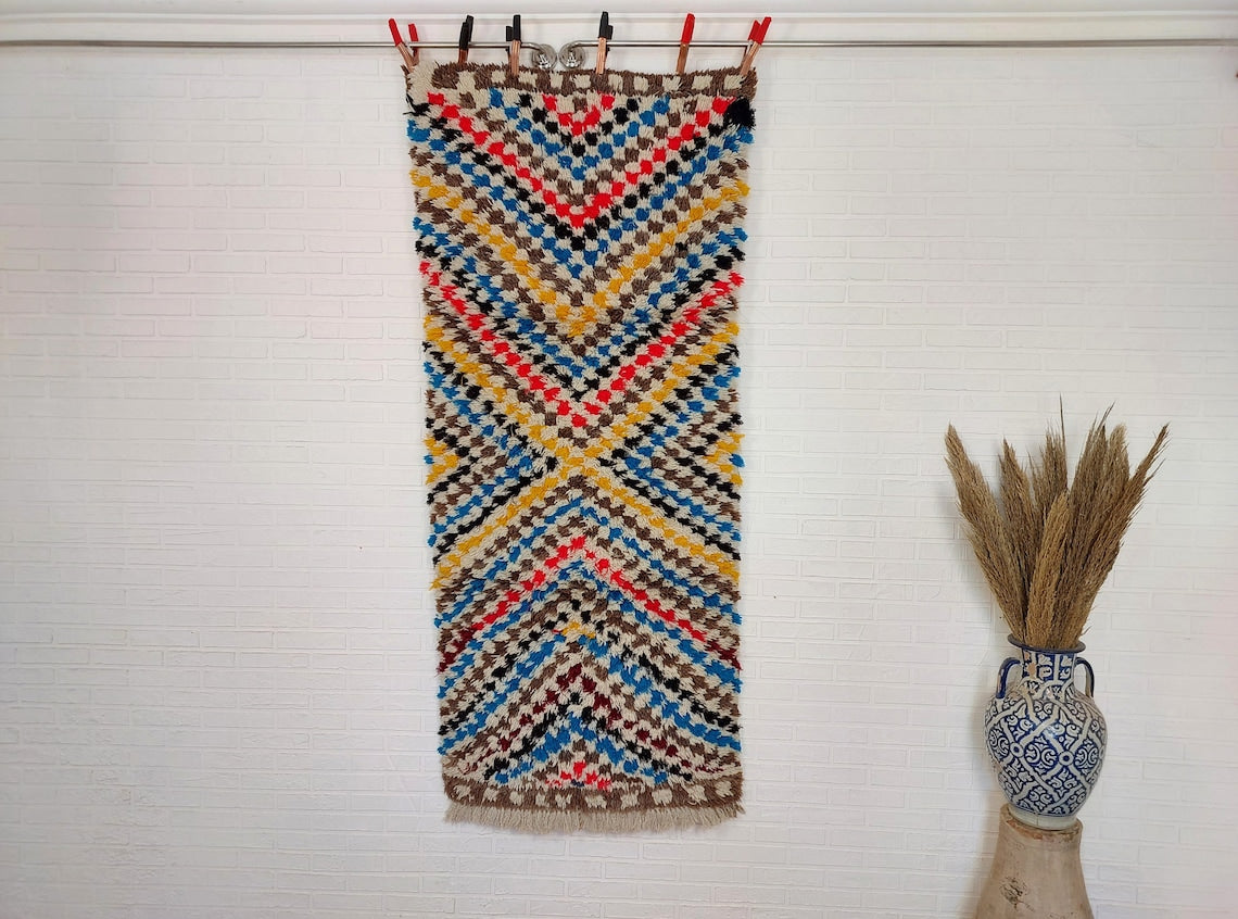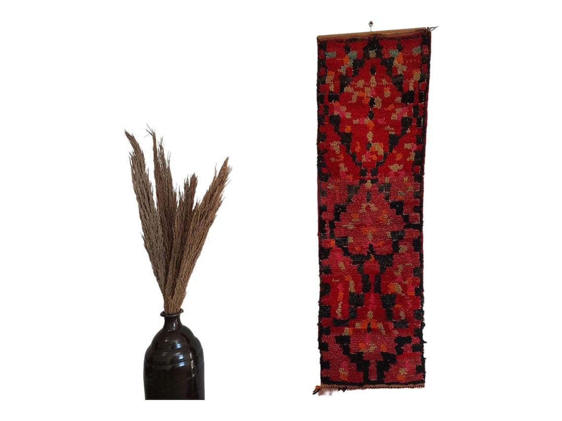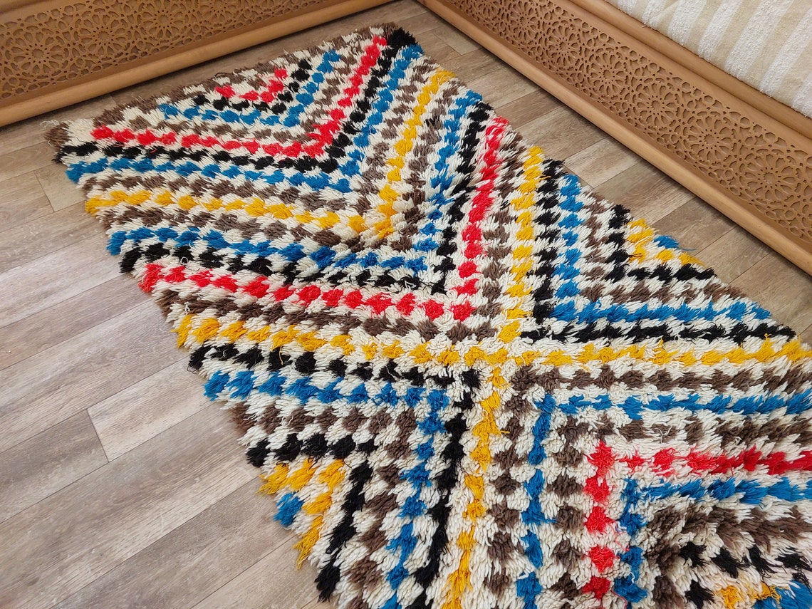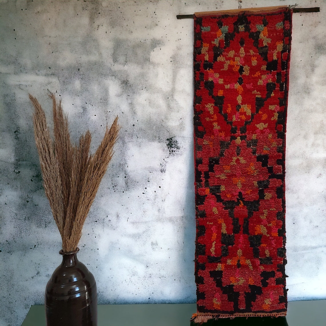 Vibrant Moroccan Boucherouite Runner: Sustainable Handmade Berber Rug for Hallway or Living Room