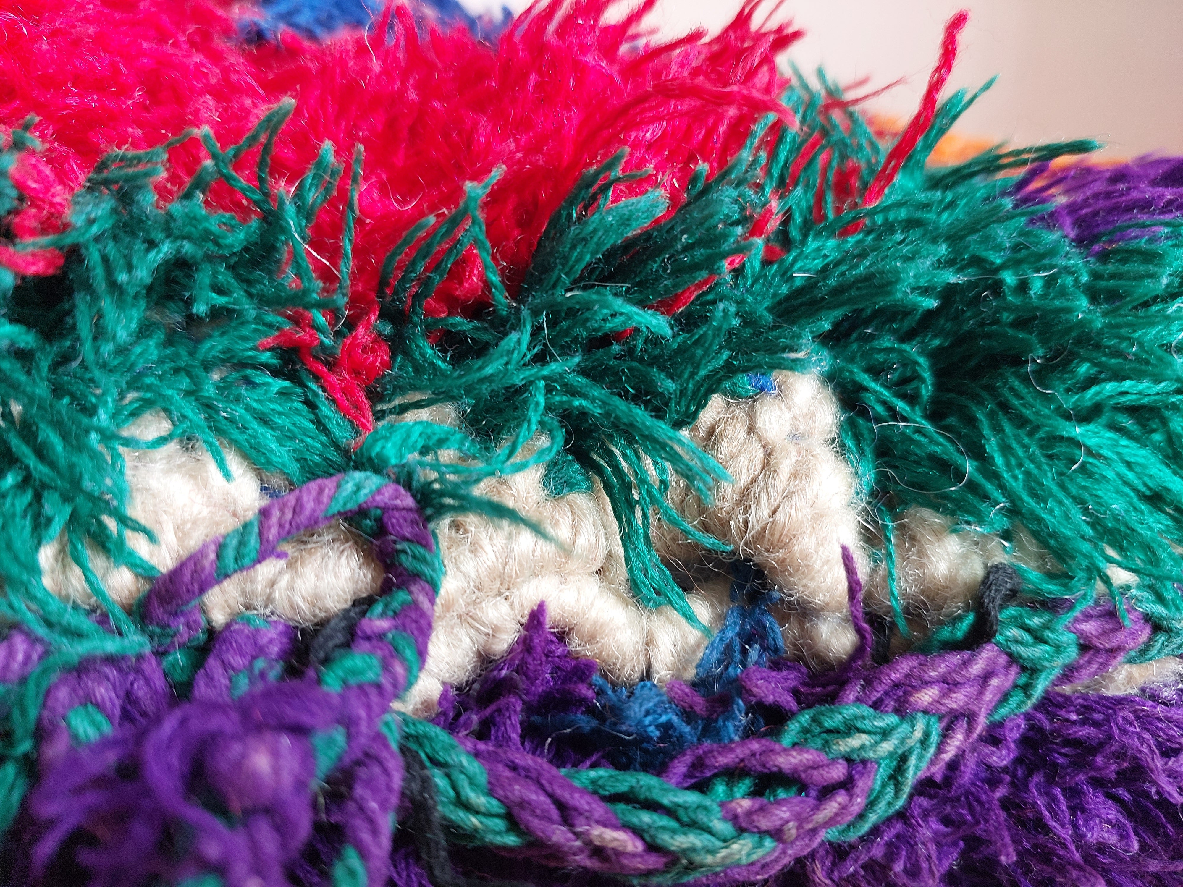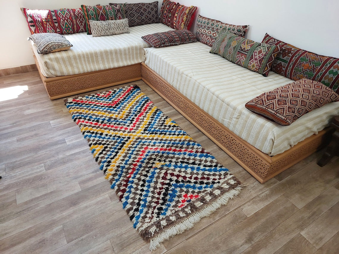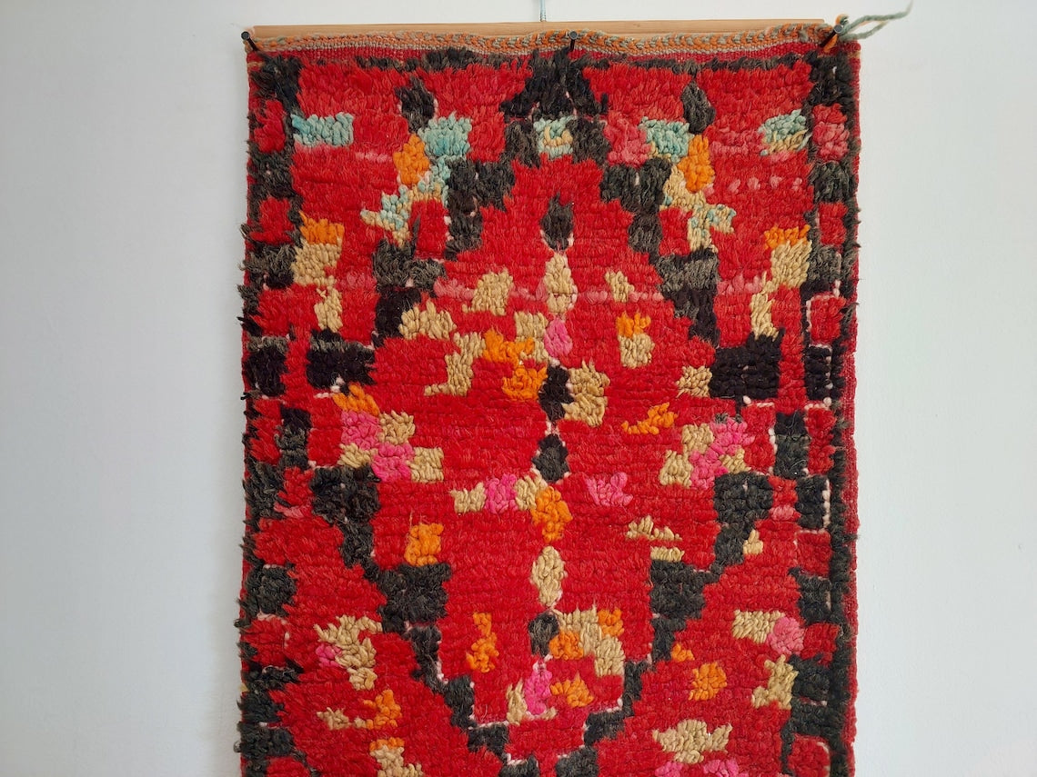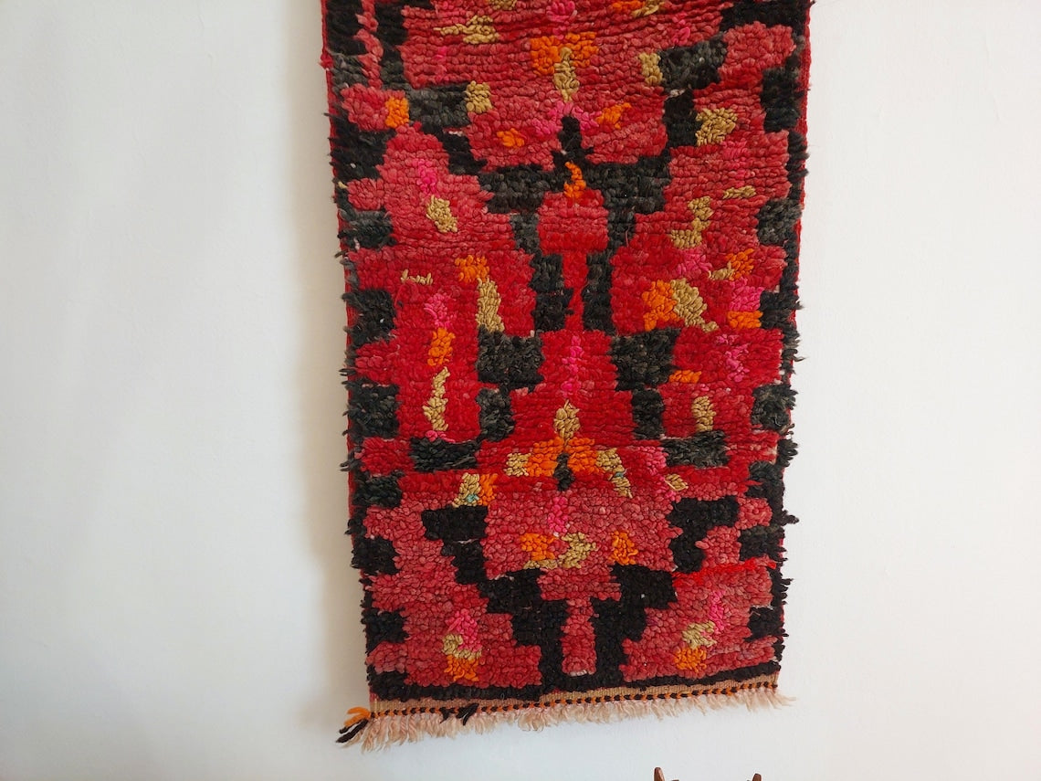 Vibrant Moroccan Boucherouite Runner: Sustainable Handmade Berber Rug for Hallway or Living Room