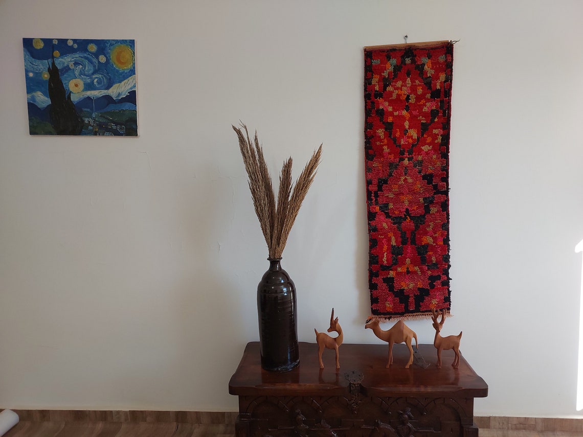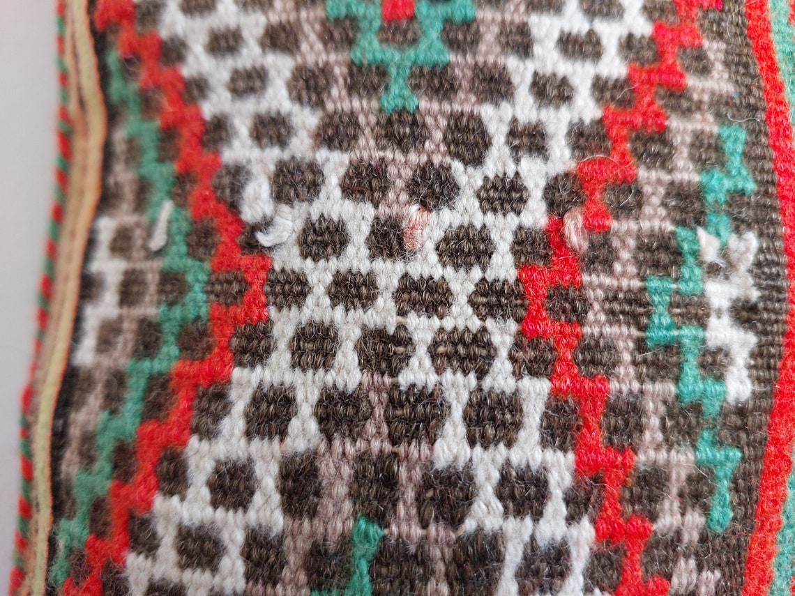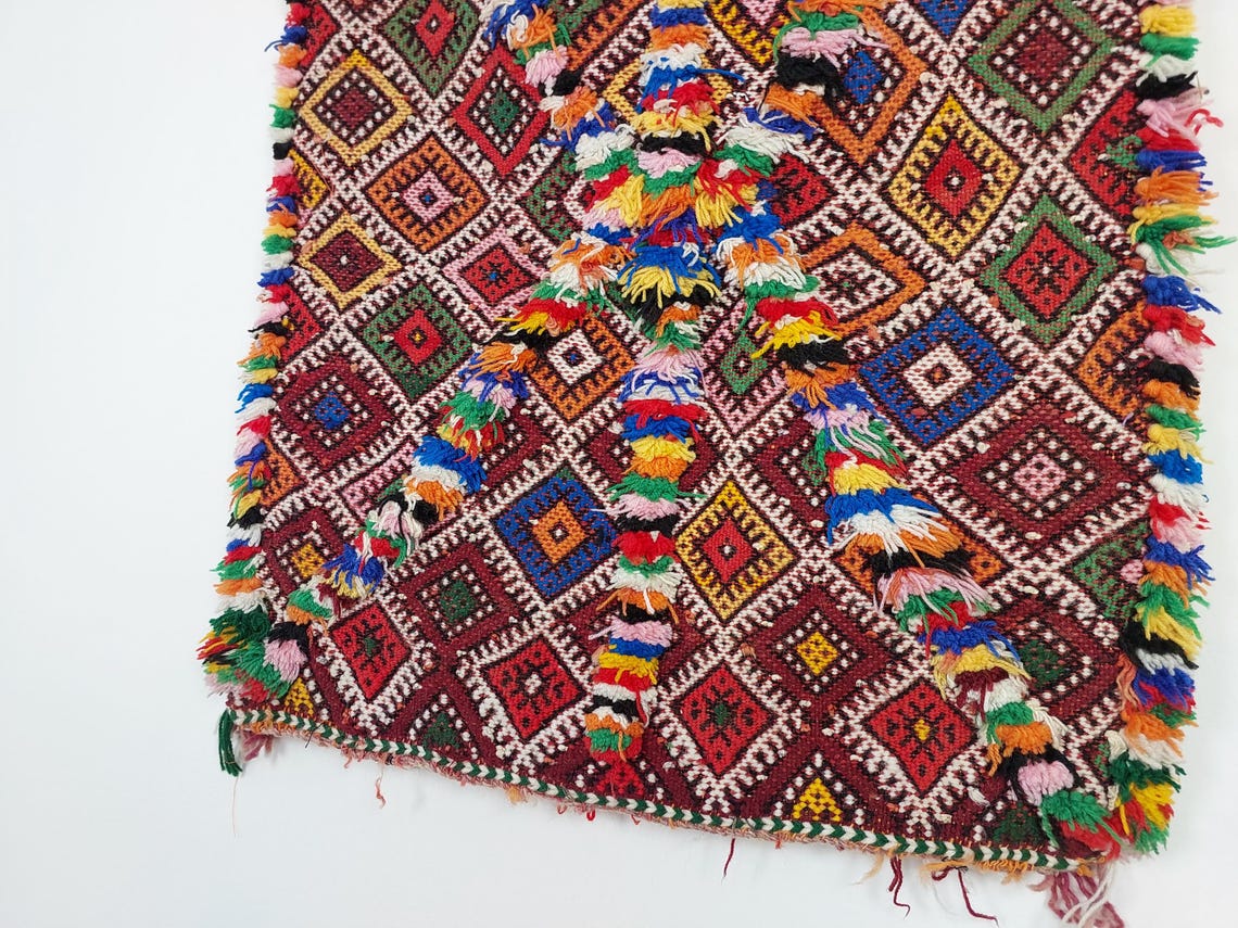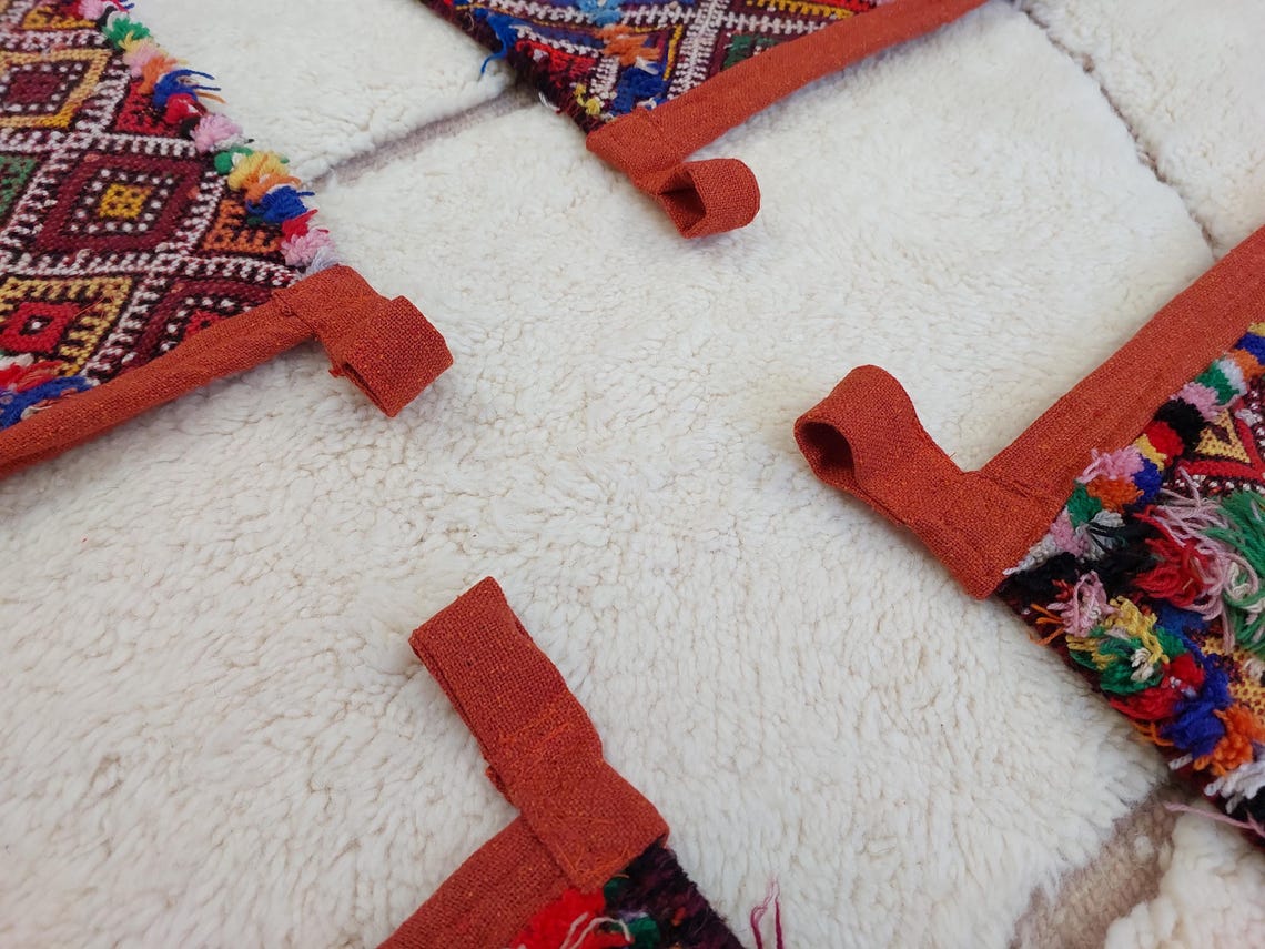 Vintage Berber Handwoven Wool Wall Art: Colorful Rectangular Hanging Pillow With Tribal Amazigh Symbols