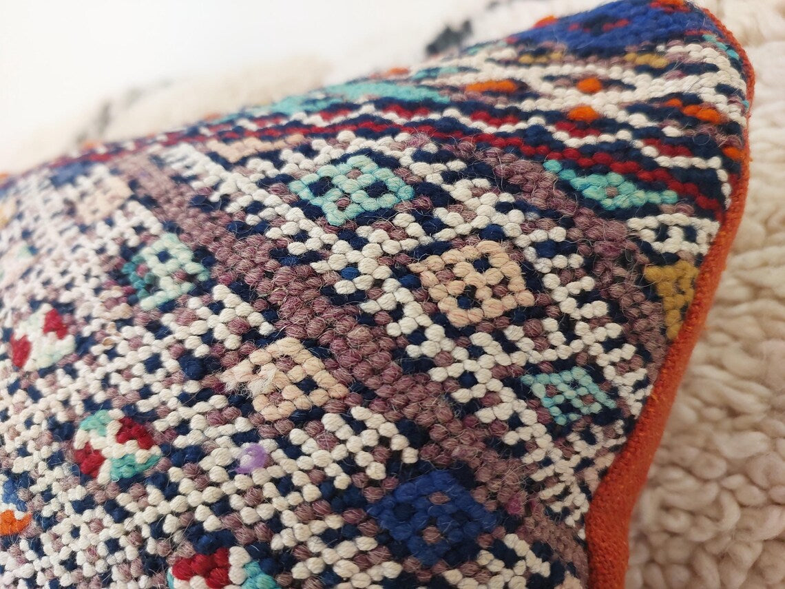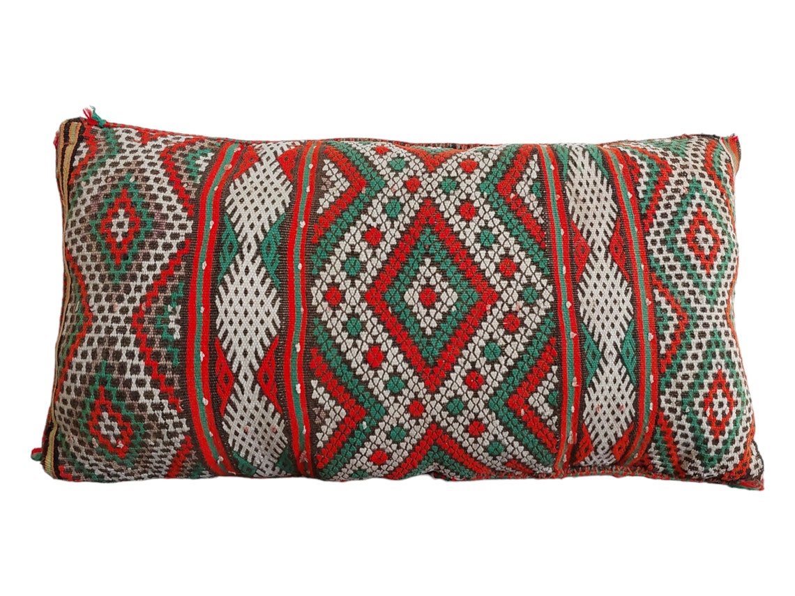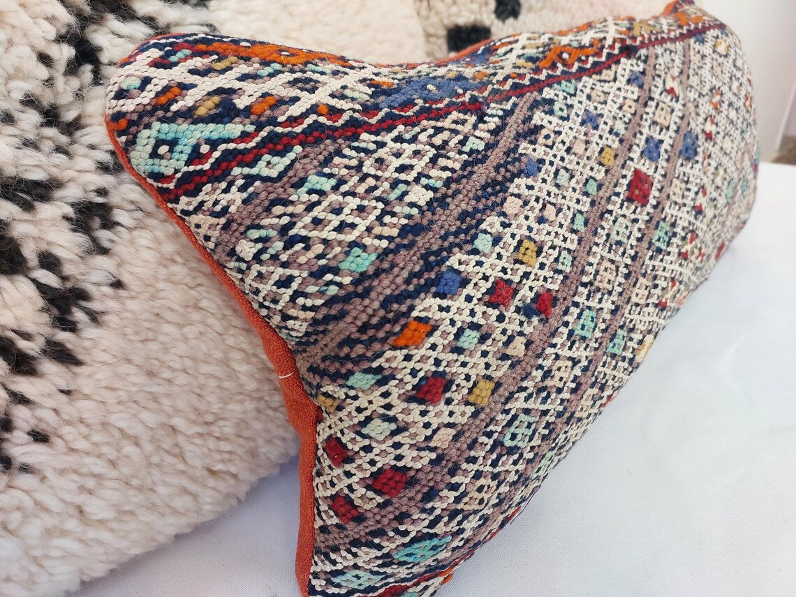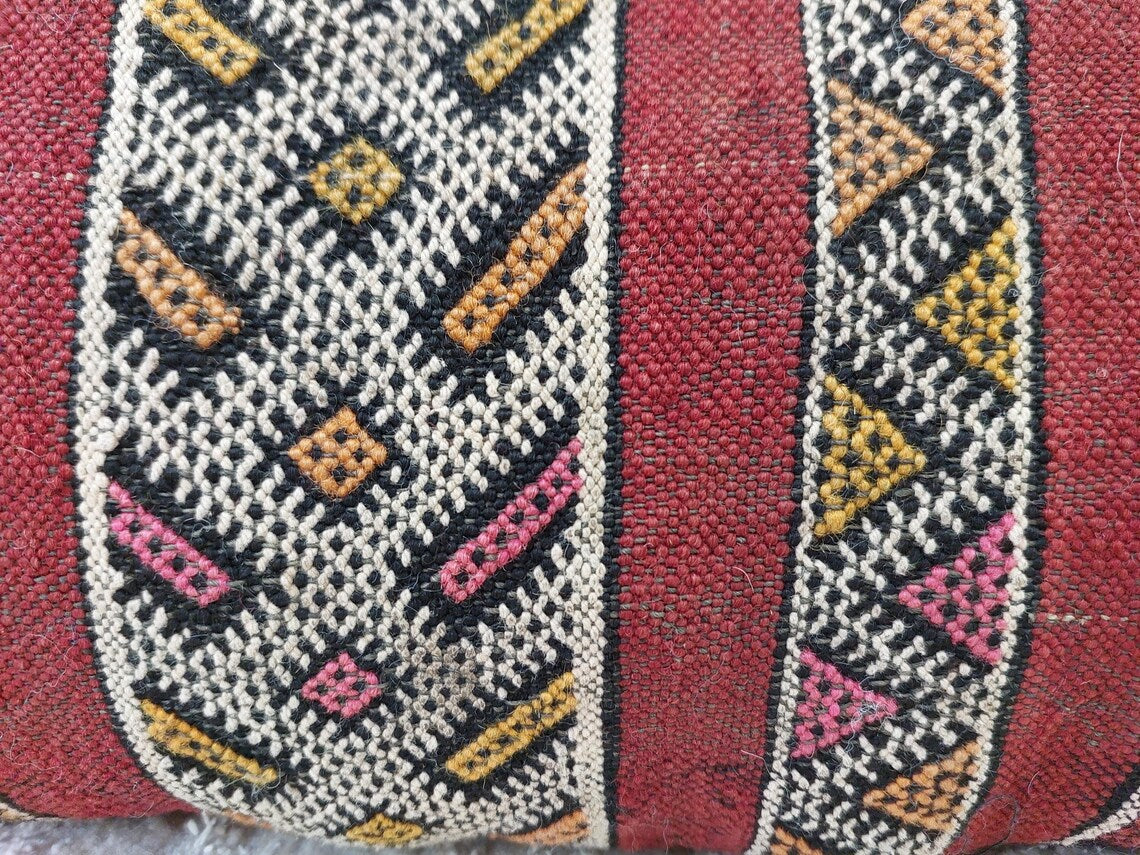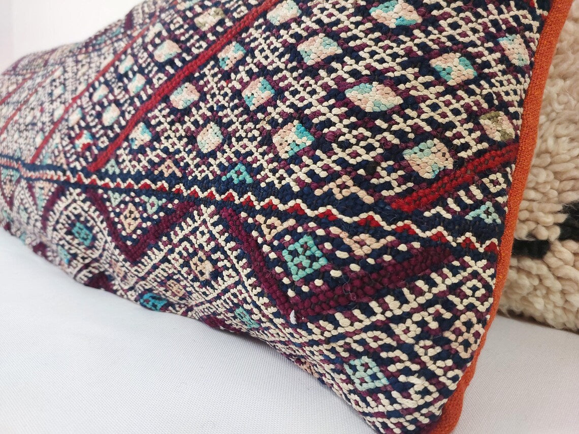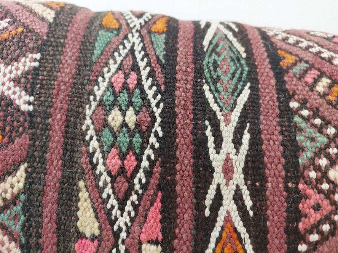 Unique Moroccan Kilim Lumbar Cushion 13x24 Inches - Vintage Berber Decorative Pillow