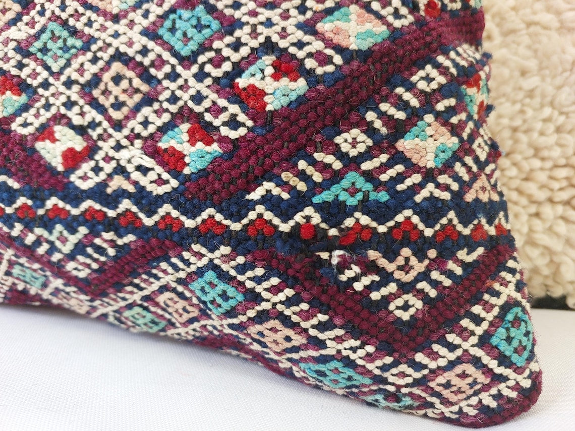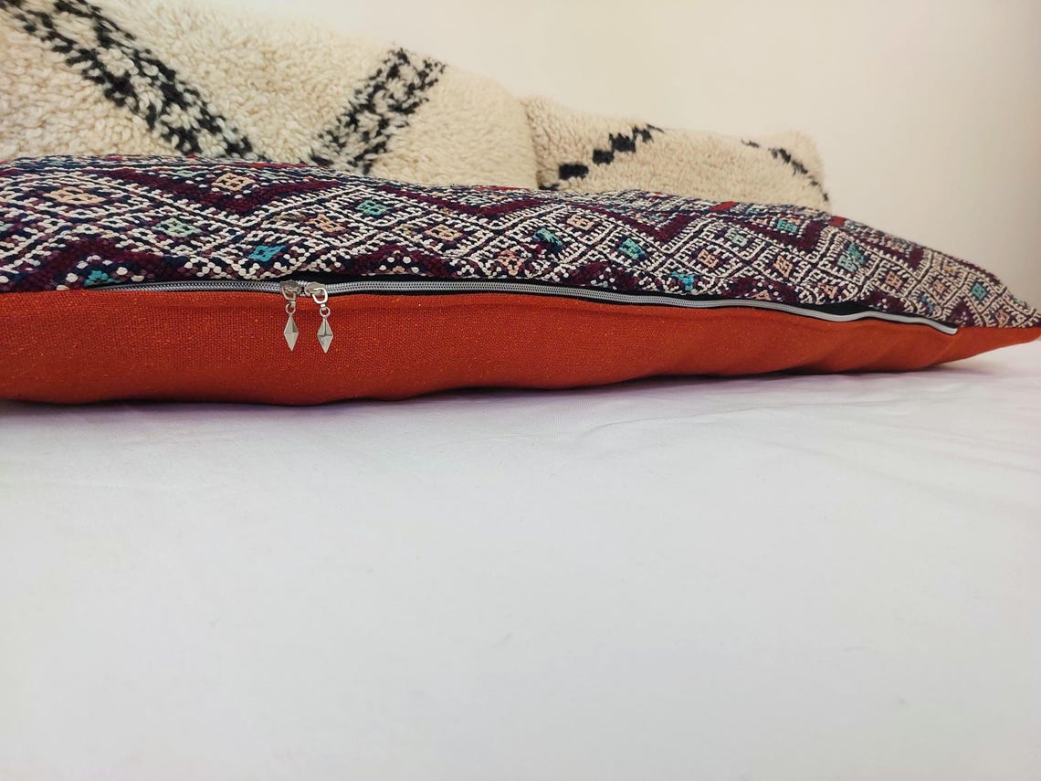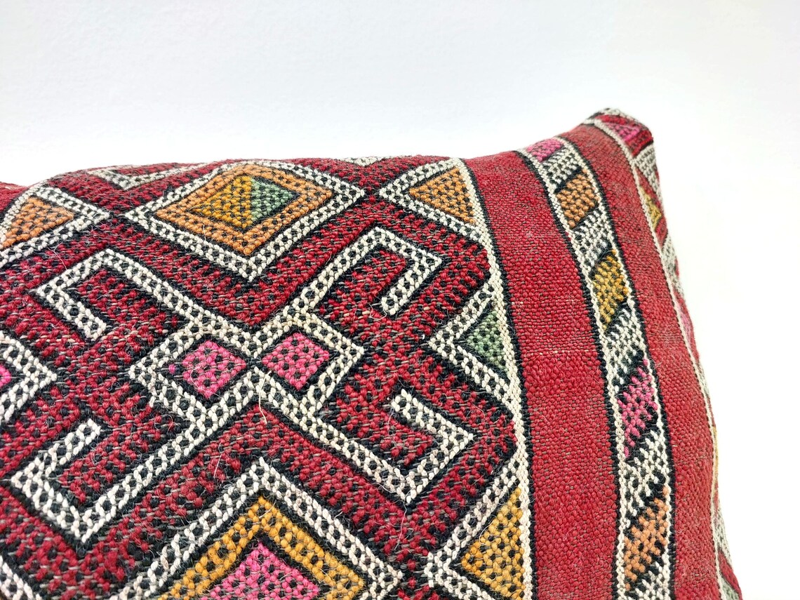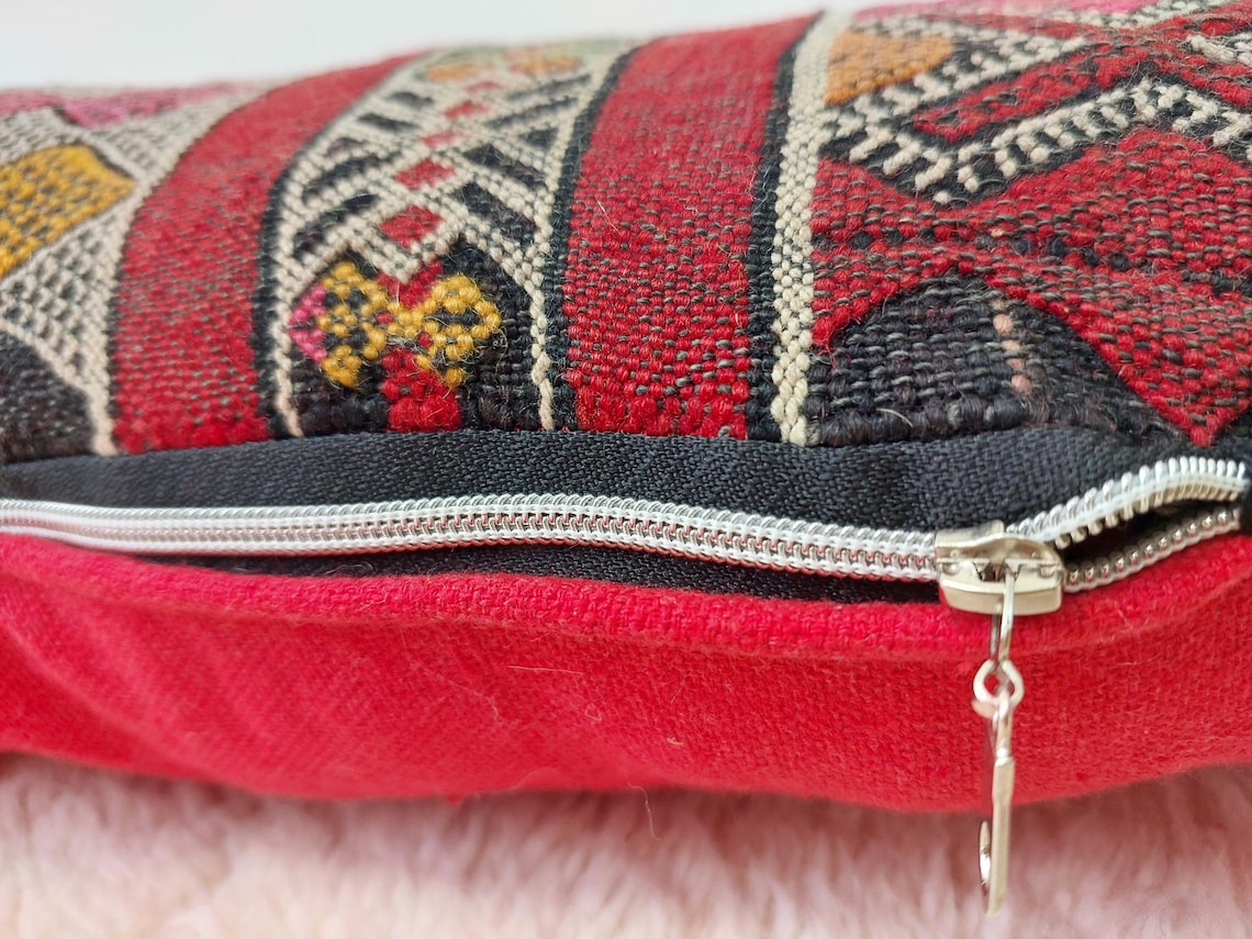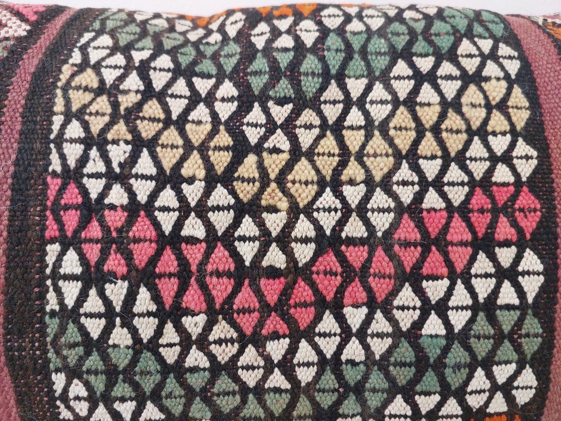Unique Moroccan Kilim Lumbar Cushion 13x24 Inches - Vintage Berber Decorative Pillow