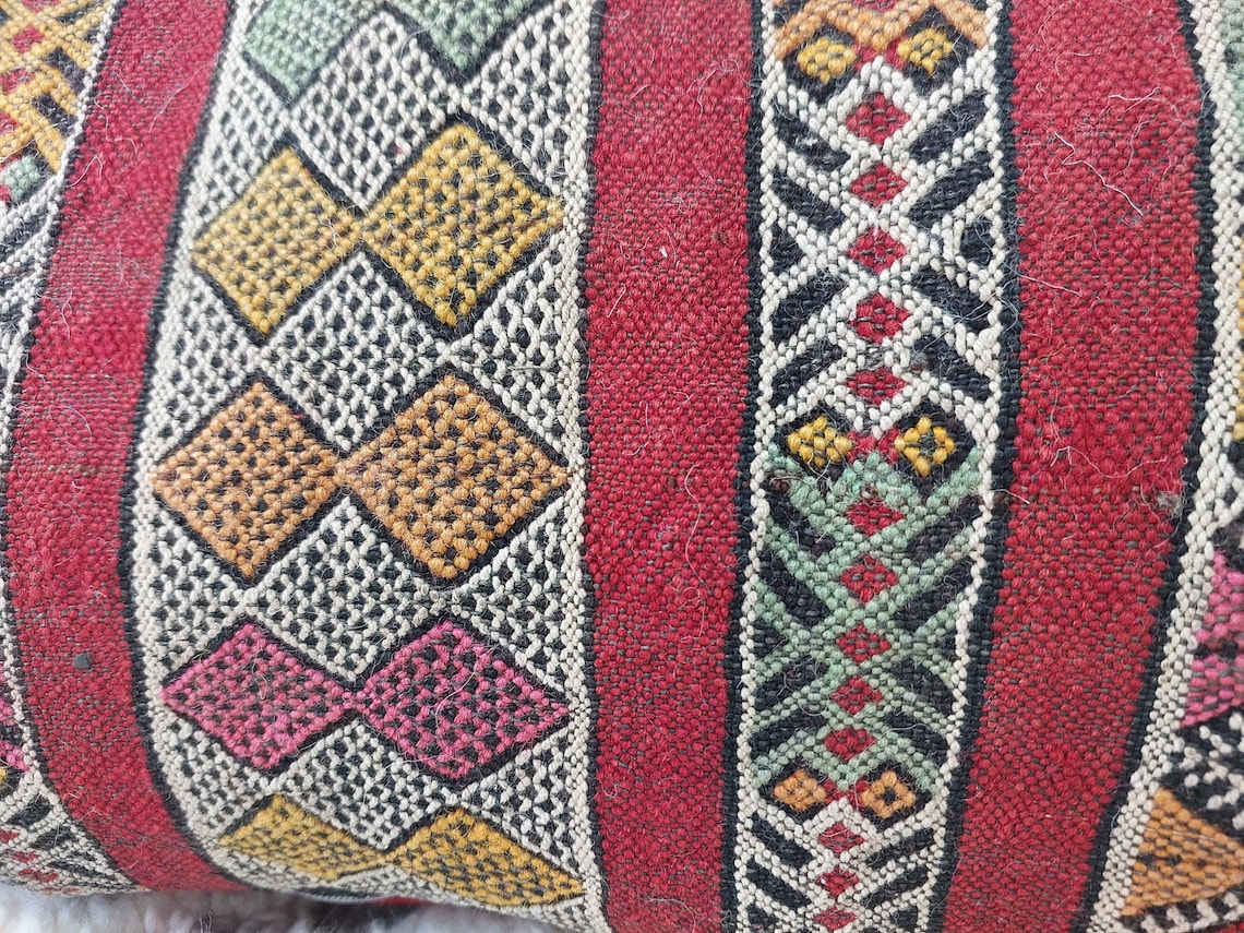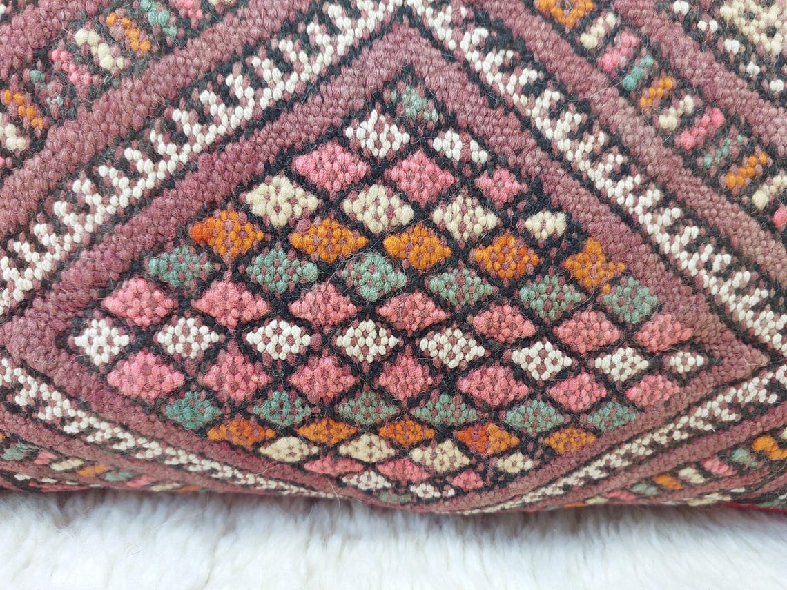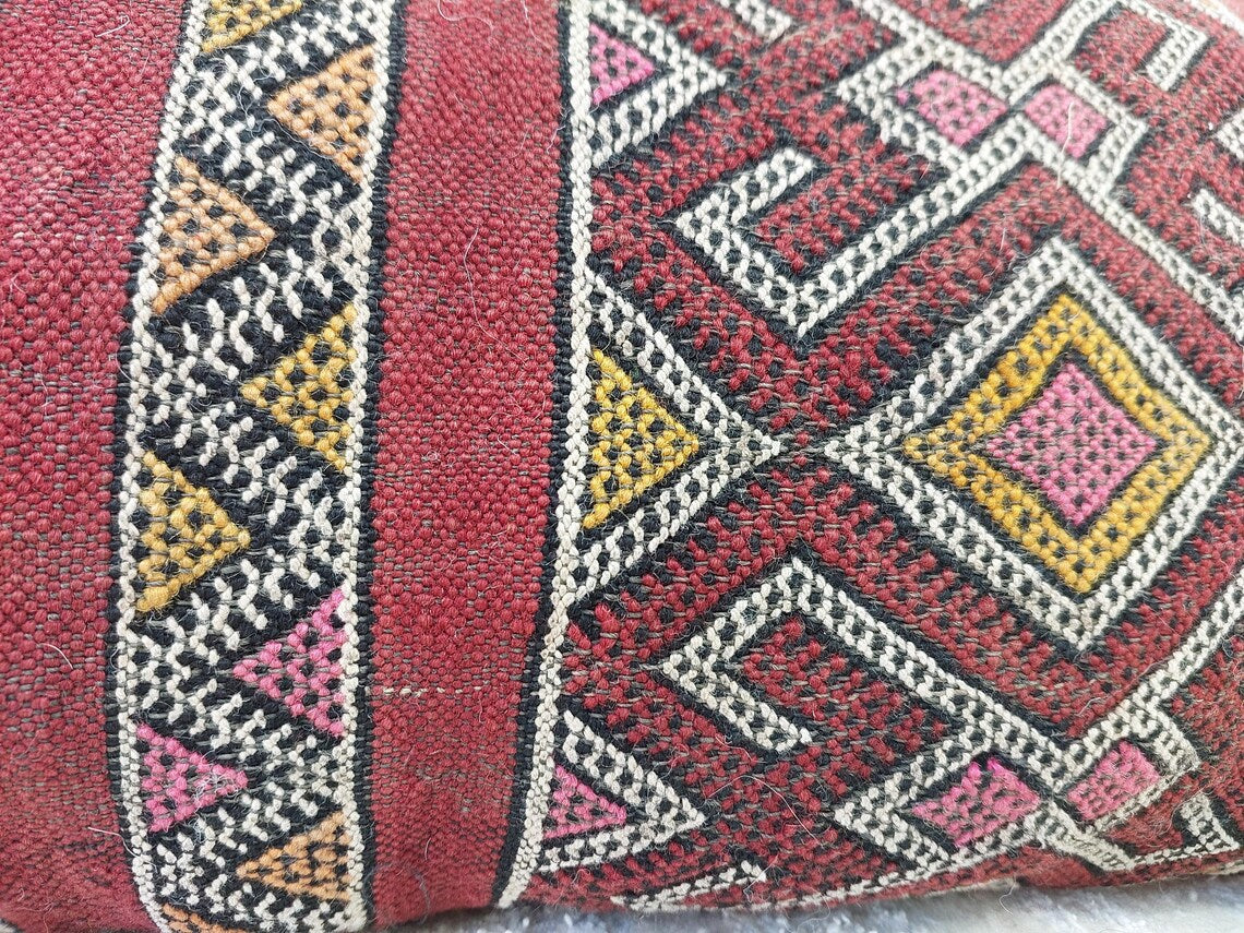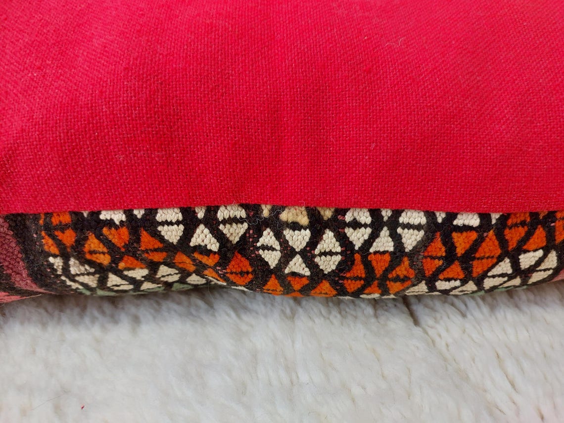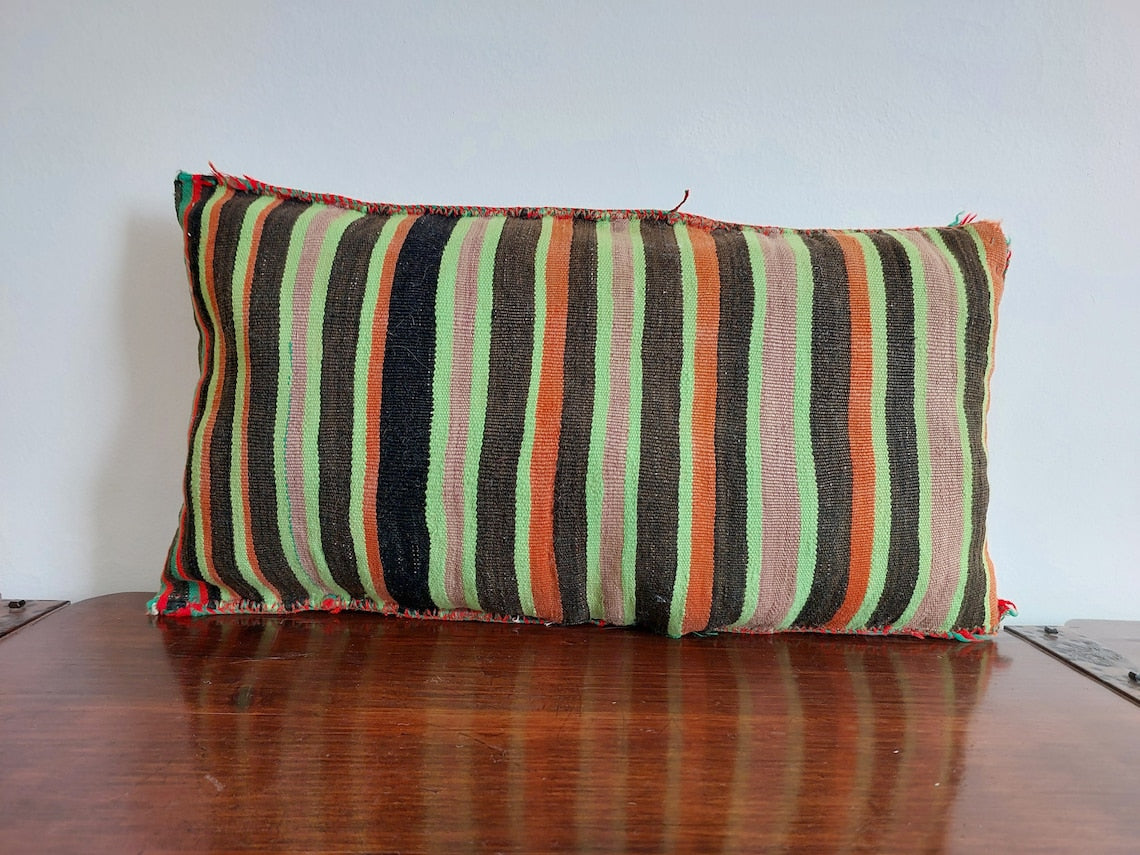Unique Moroccan Kilim Lumbar Cushion 13x24 Inches - Vintage Berber Decorative Pillow