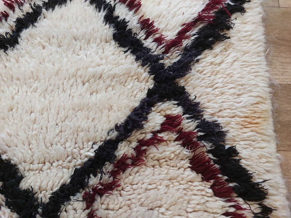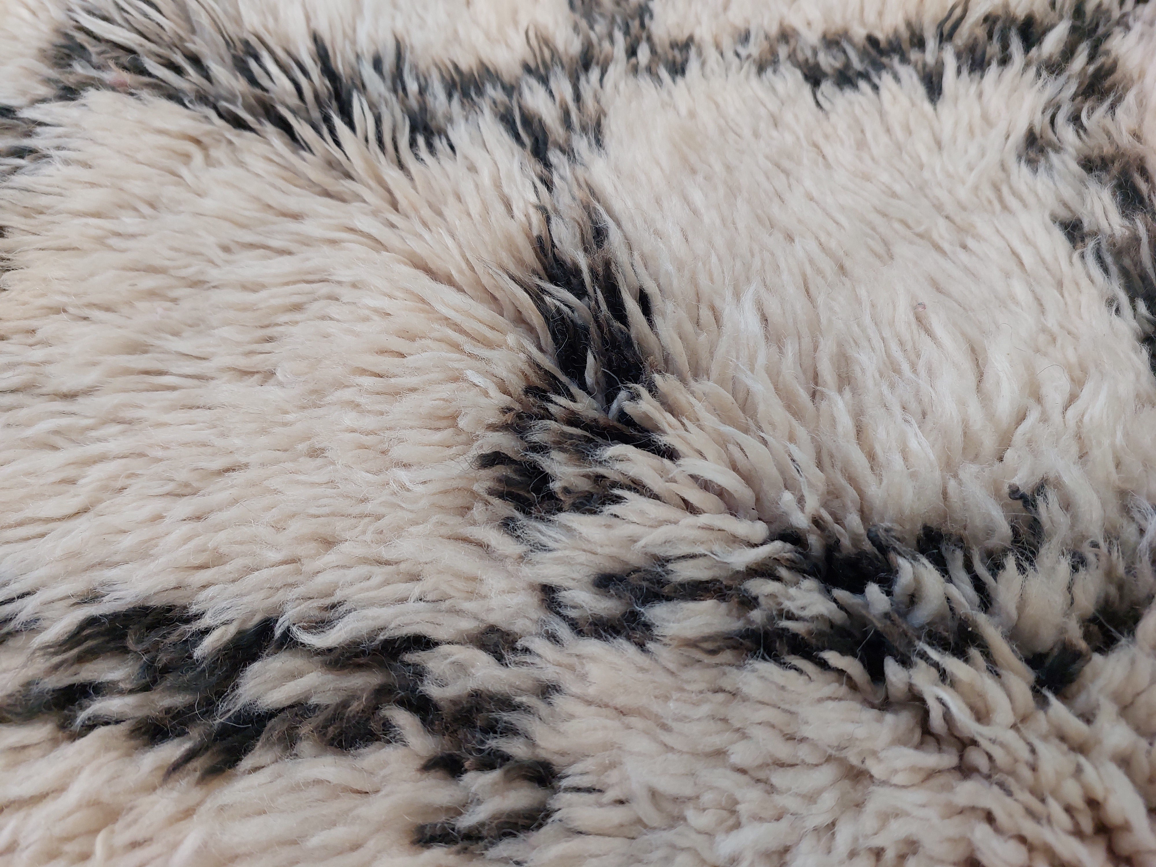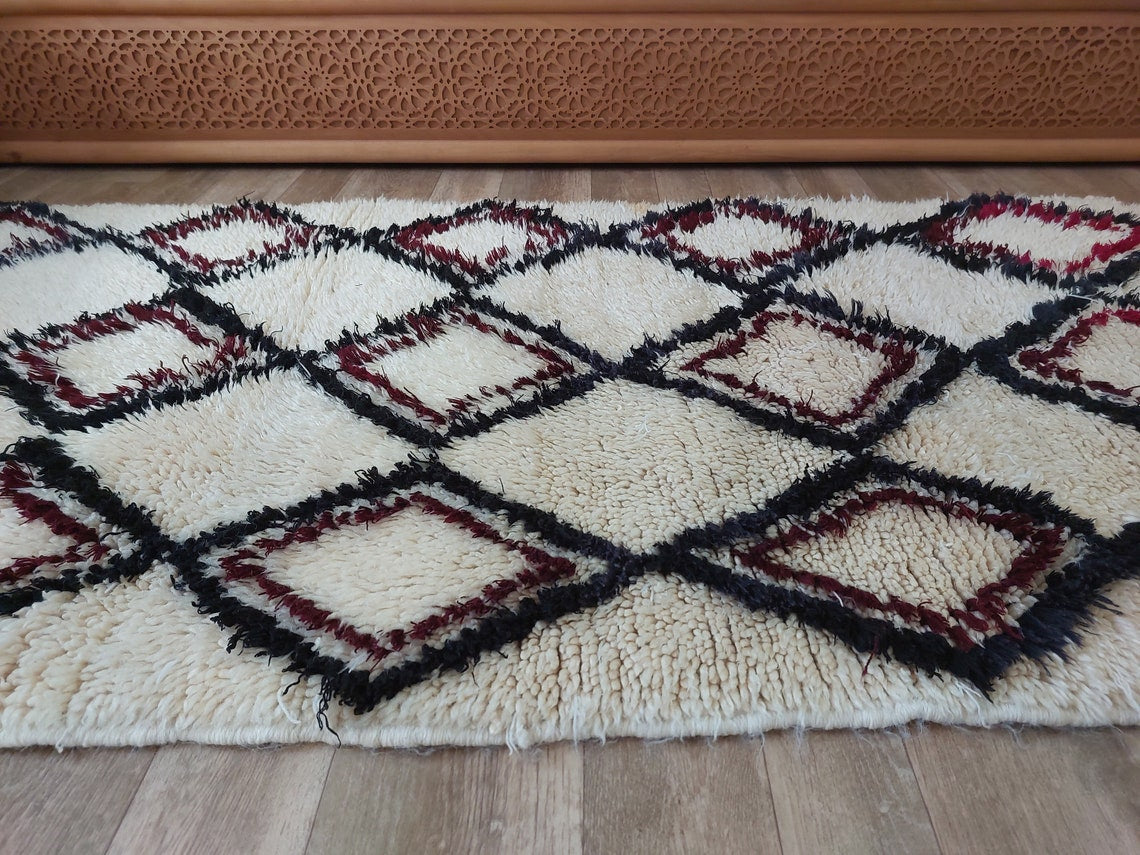 Vintage Beni Ourain Moroccan Rug: Small Handknotted Soft Fluffy Wool Carpet For Living Room