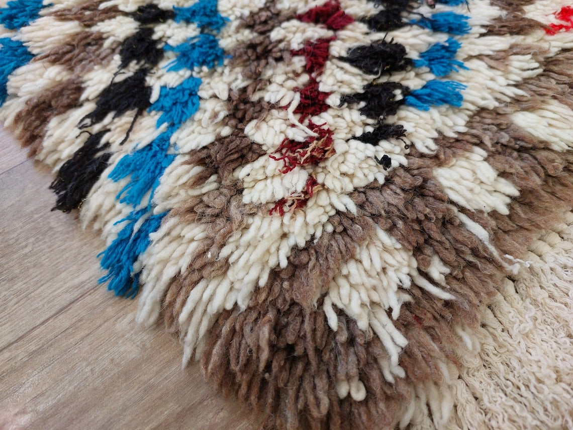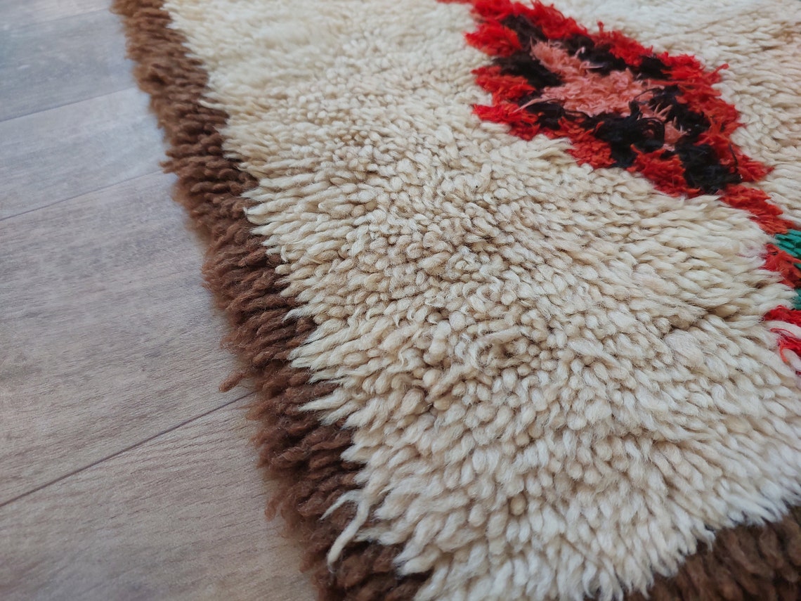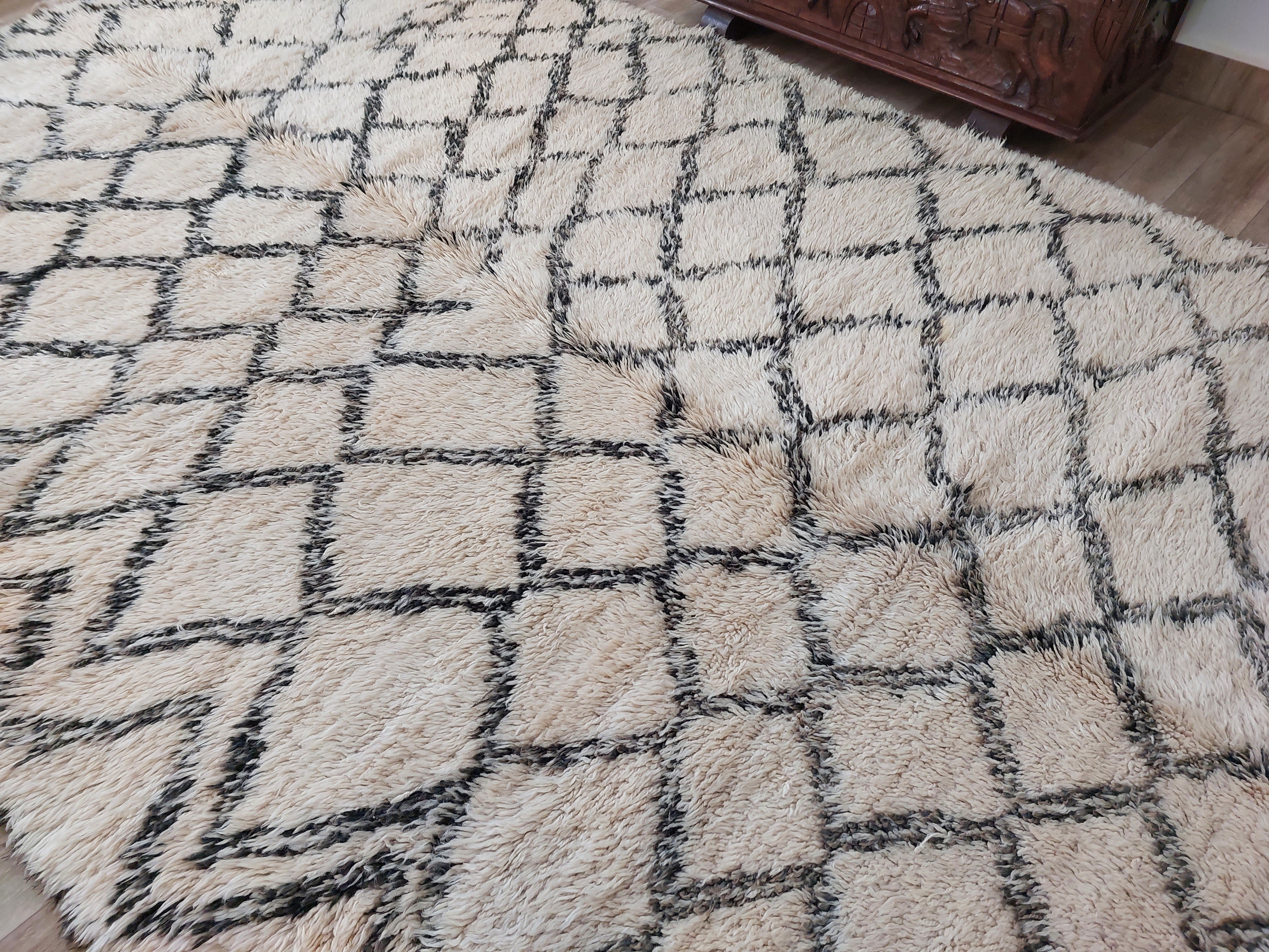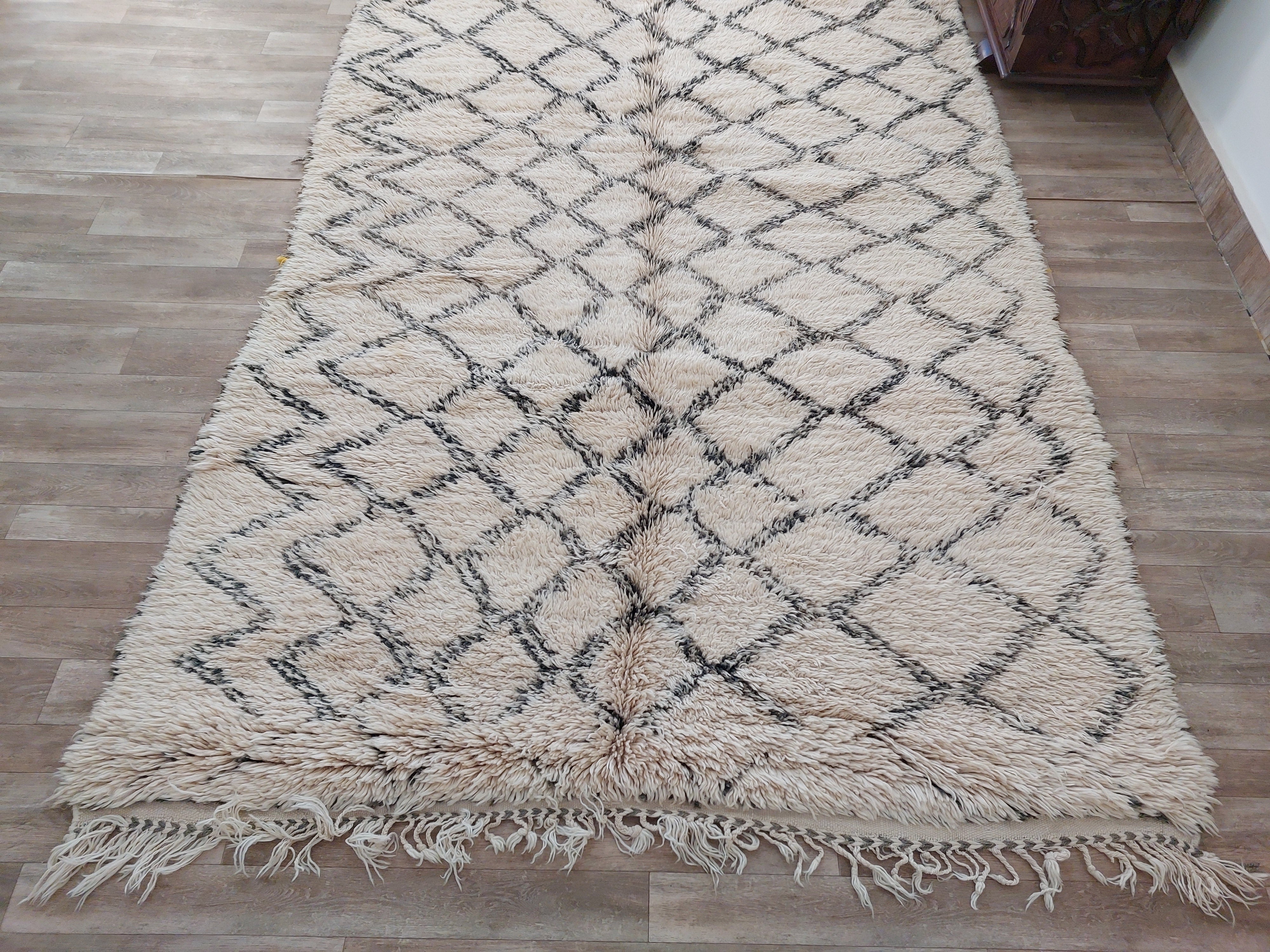 Vintage Beni Ourain Moroccan Rug: Small Handknotted Soft Fluffy Wool Carpet For Living Room