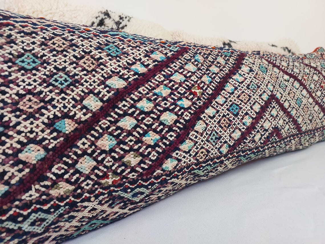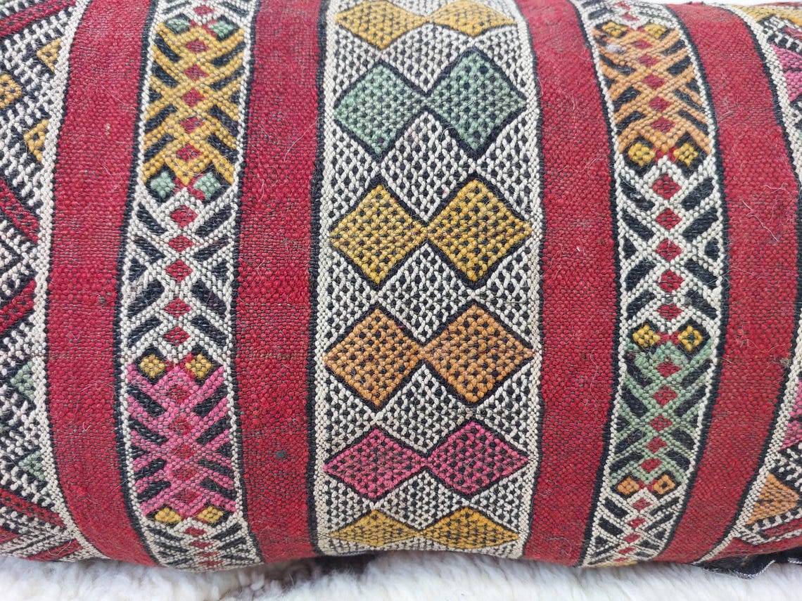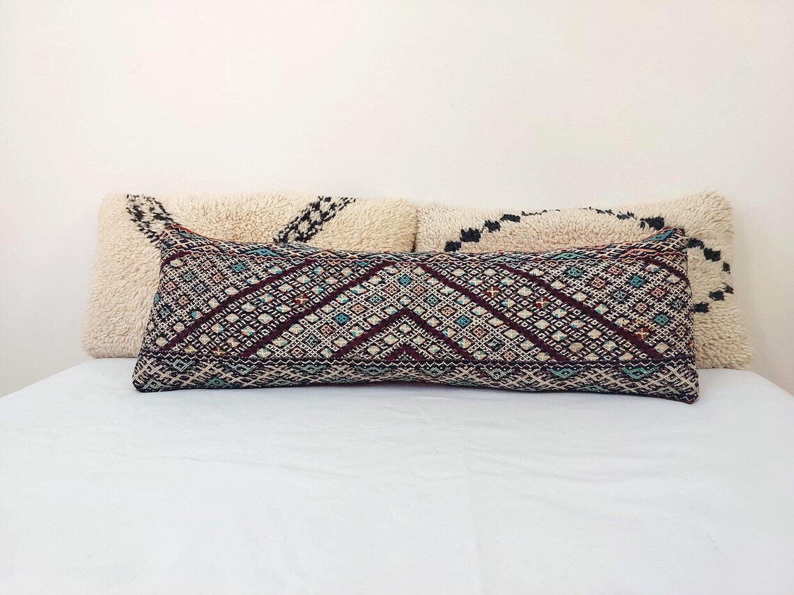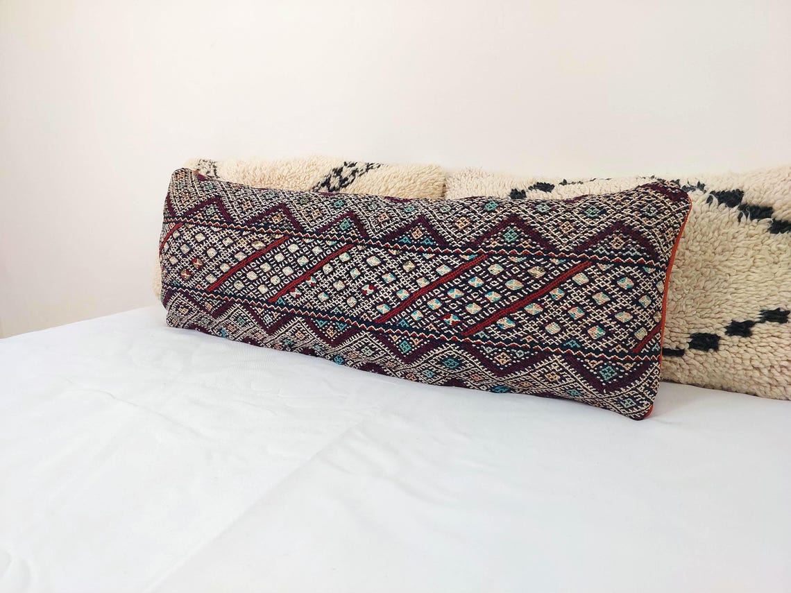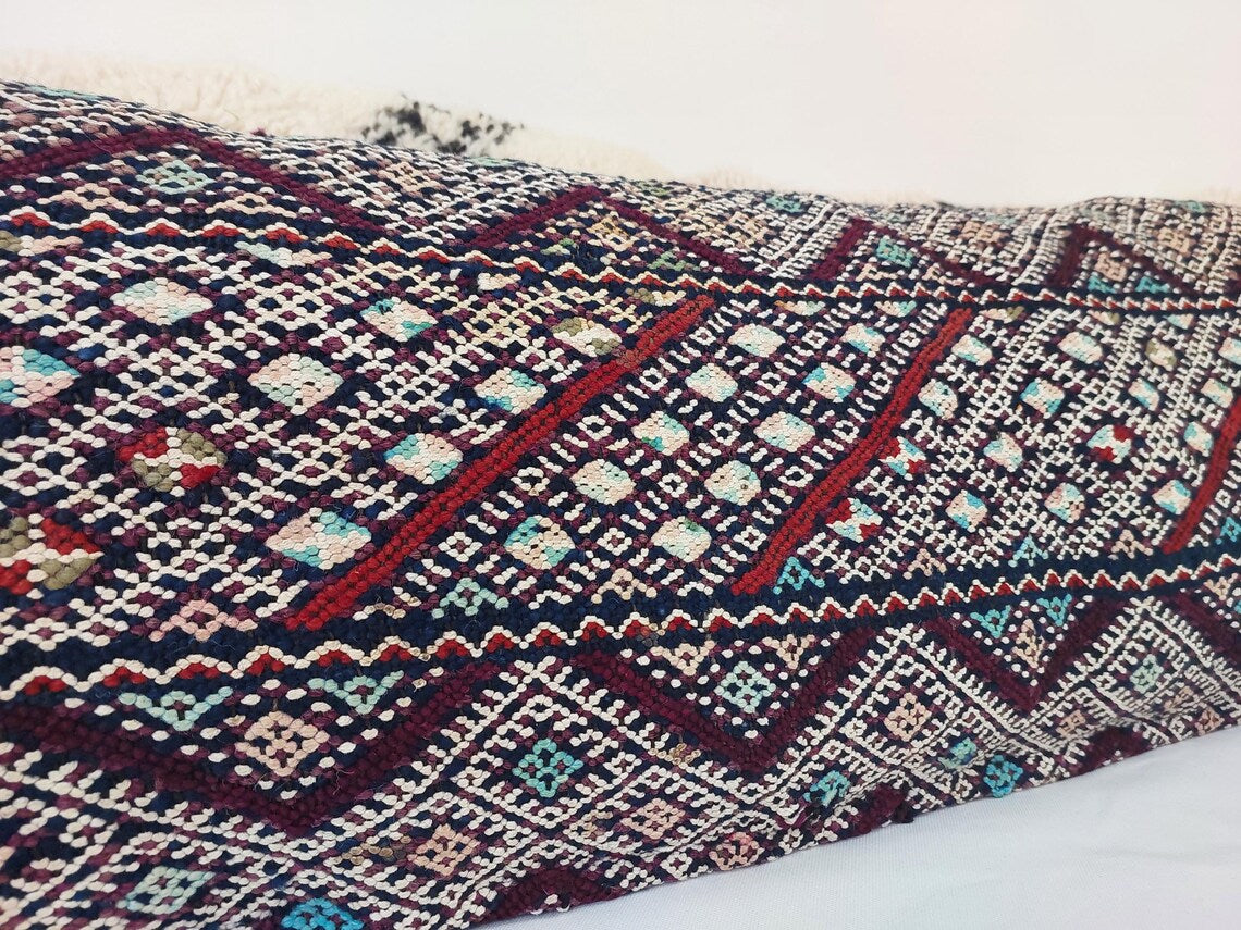 Unique Moroccan Kilim Lumbar Cushion 13x40 Inches - Vintage Berber Decorative Pillow