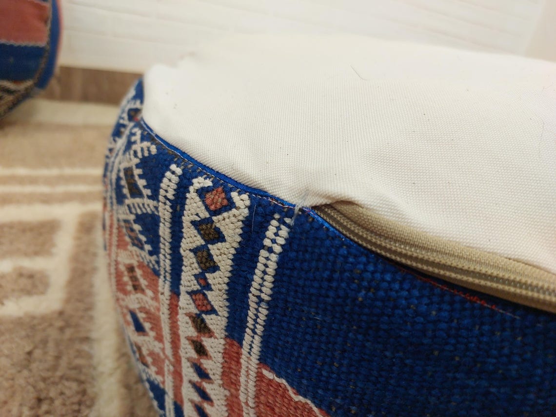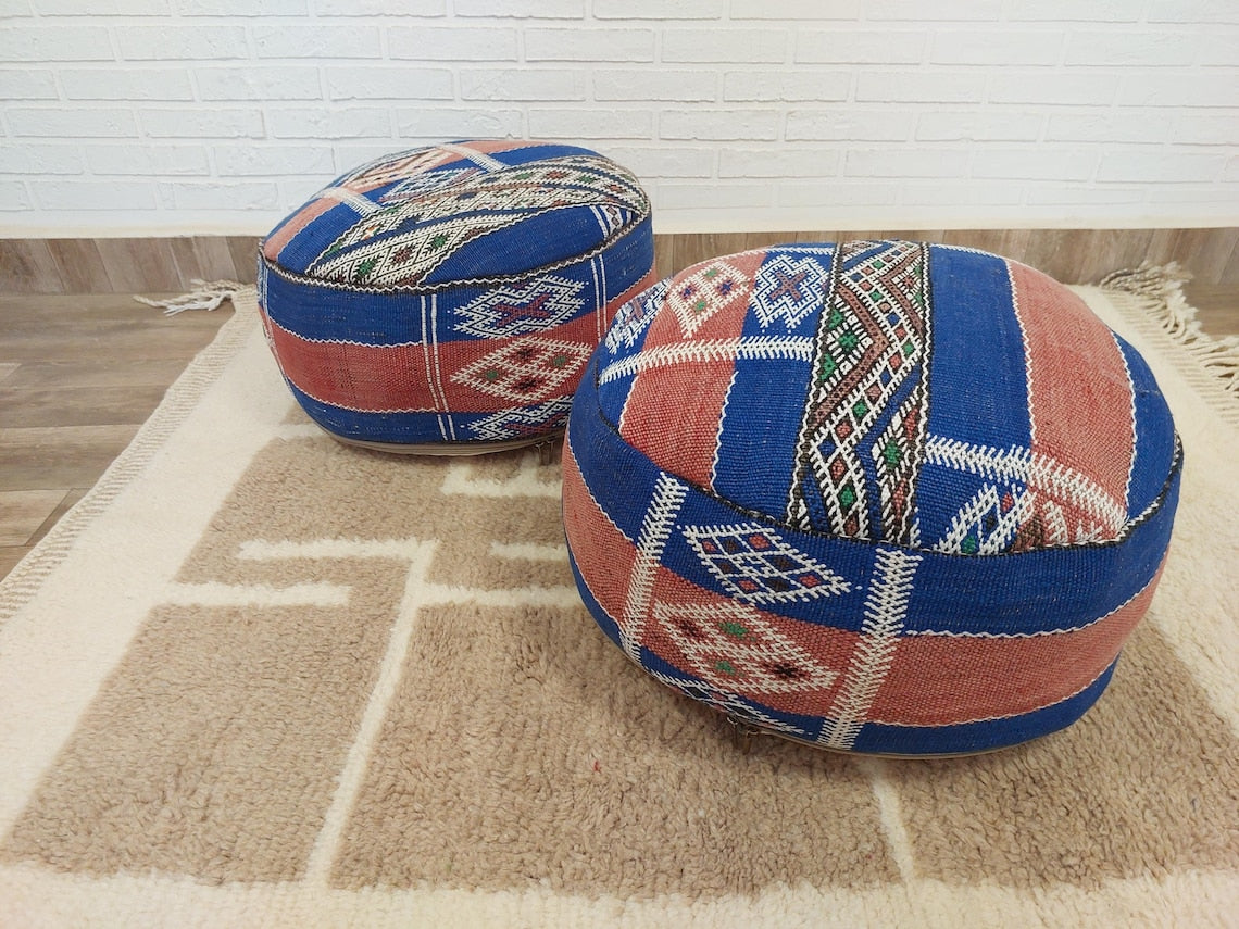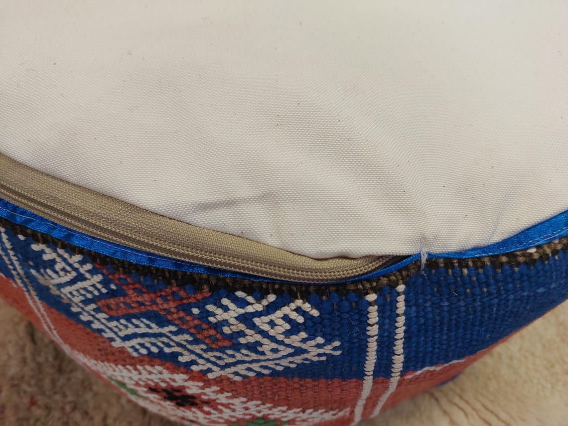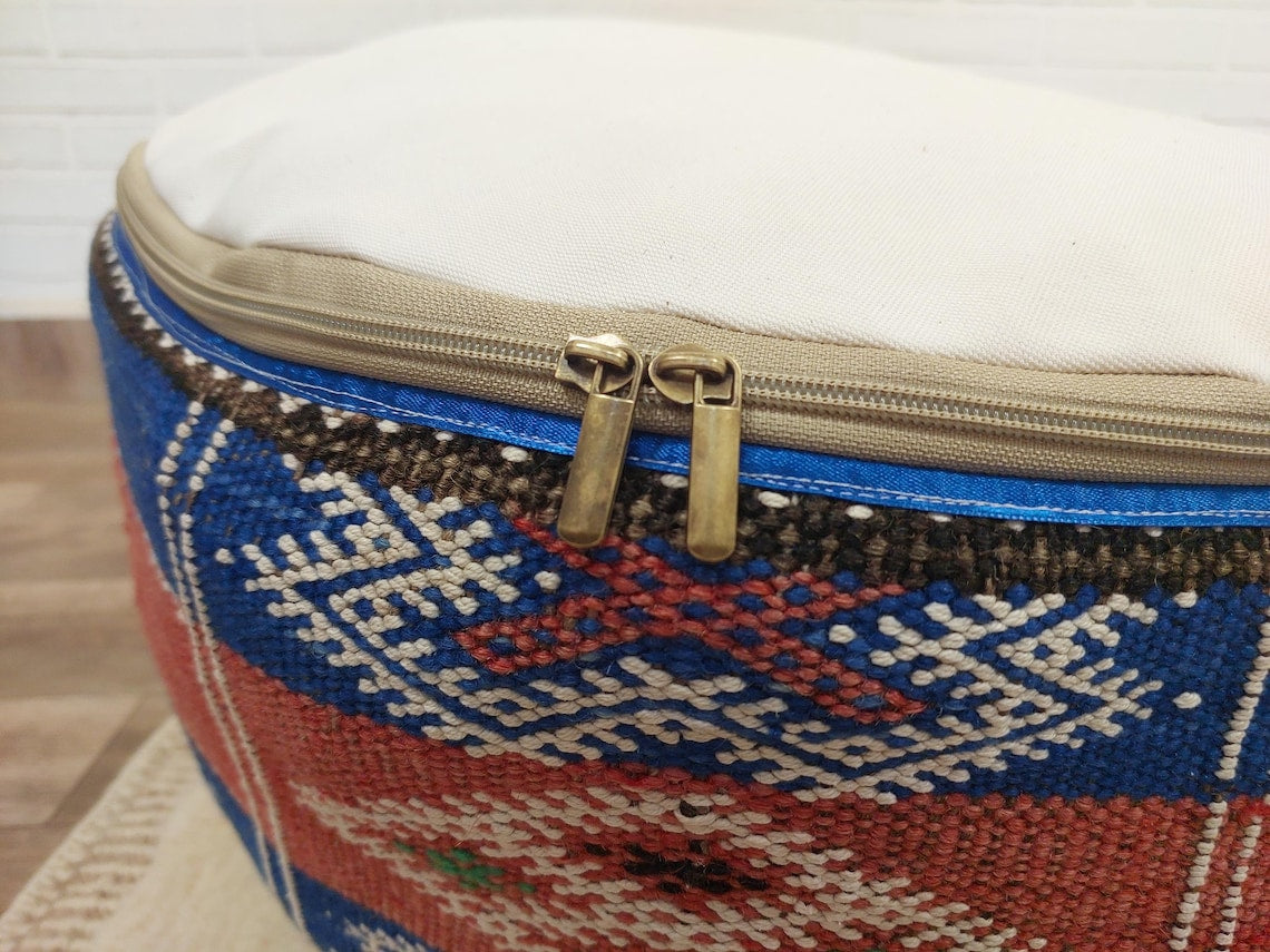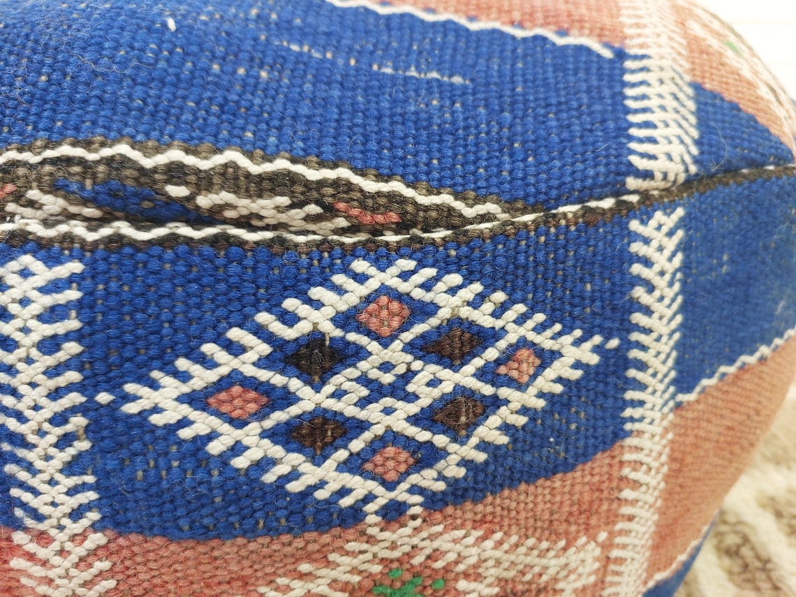 Vintage Berber Kilim Round Ottoman Pouf: Handmade Moroccan Floor Cushion For Boho Home Decor