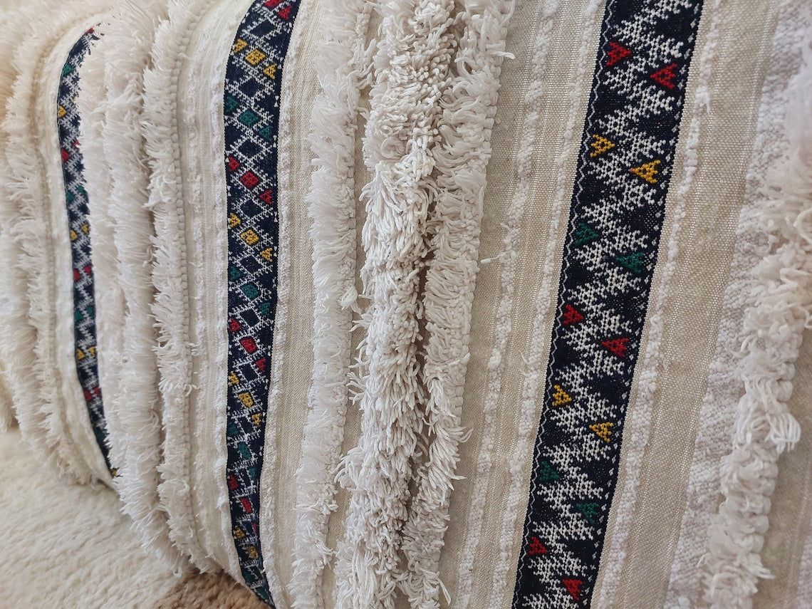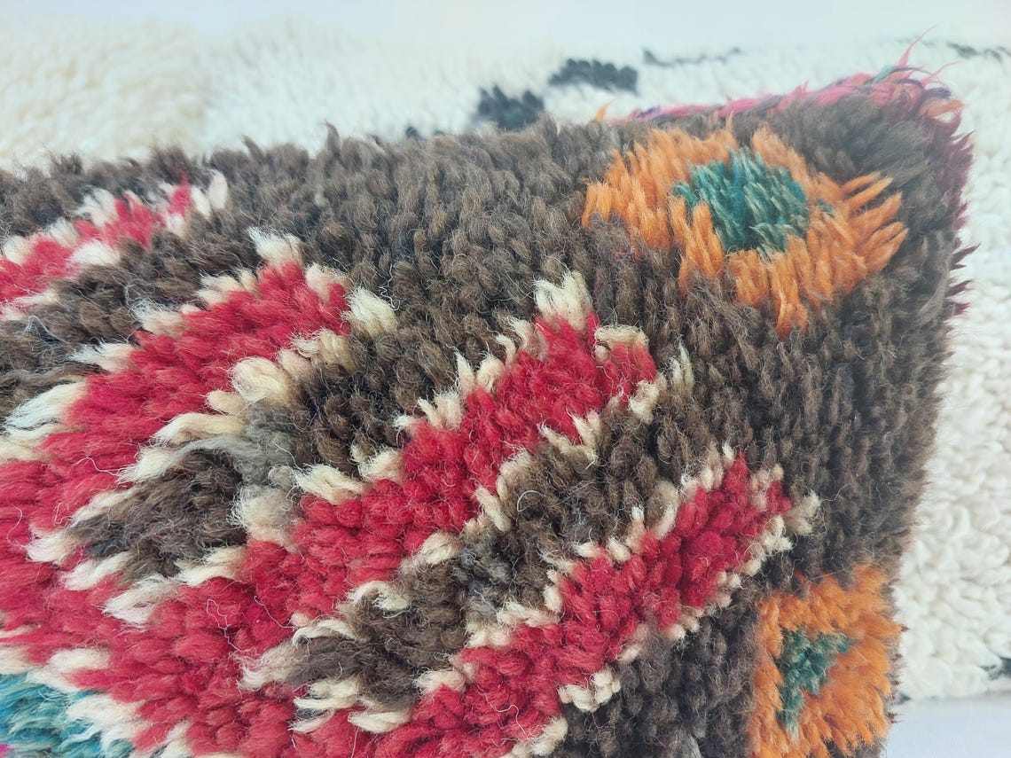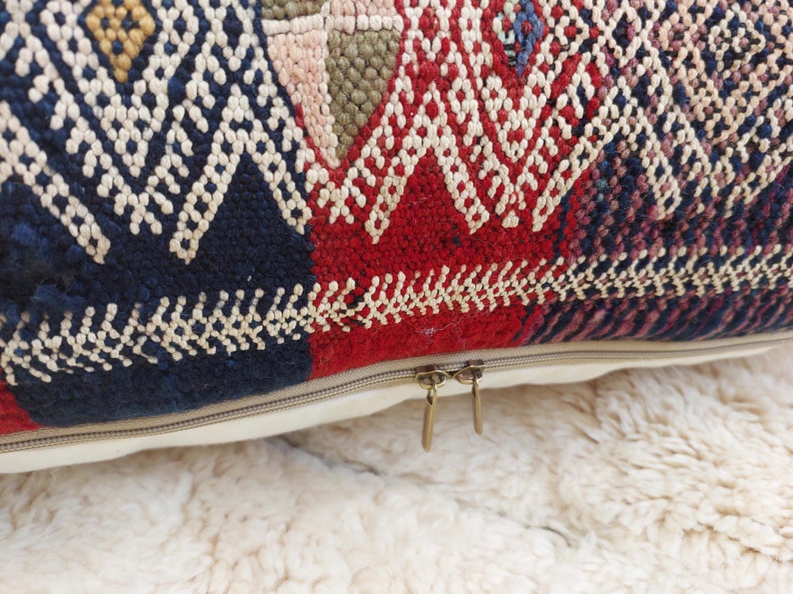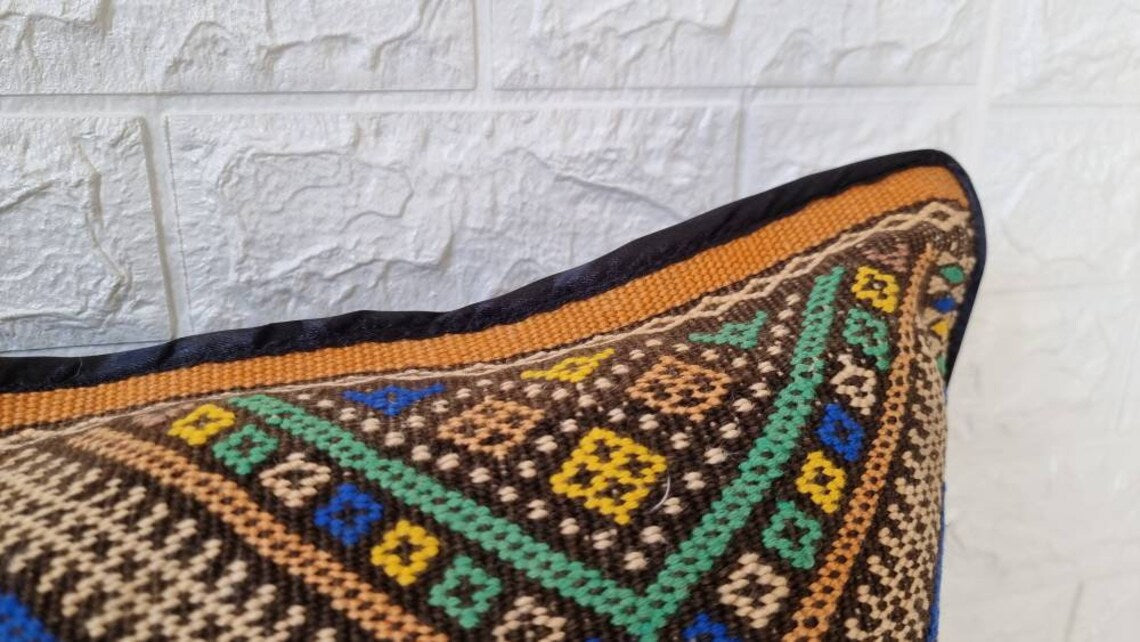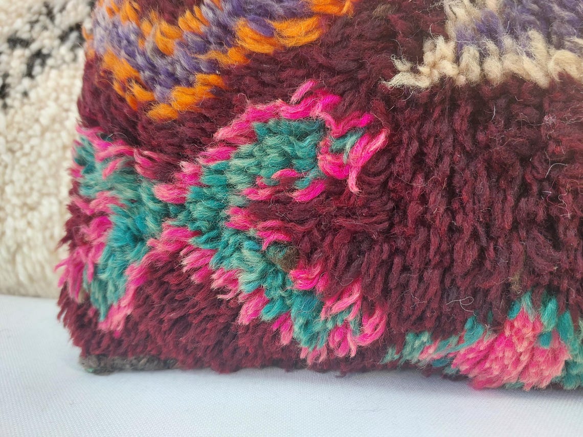 Vintage Moroccan Berber Wool Pillow: Handmade Ait Bou Ichaouen Double-sided Cushion For Bohemian Decor