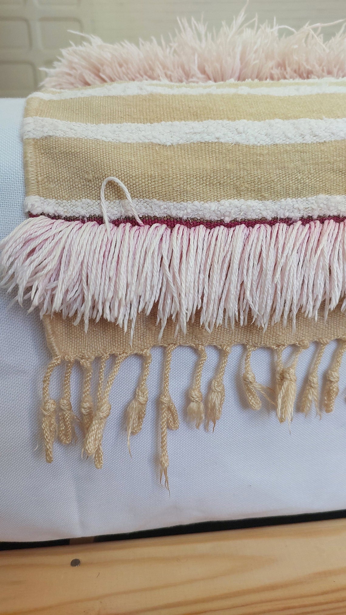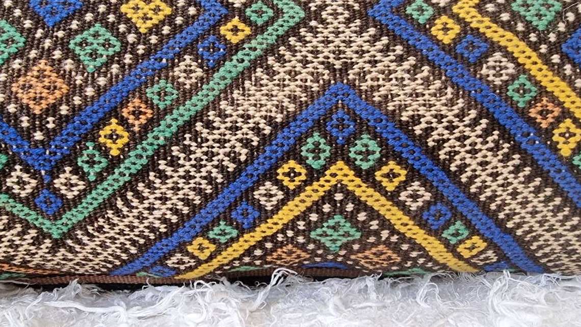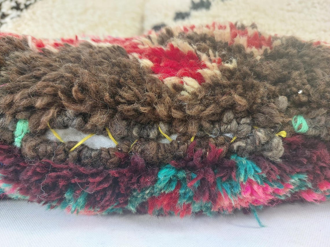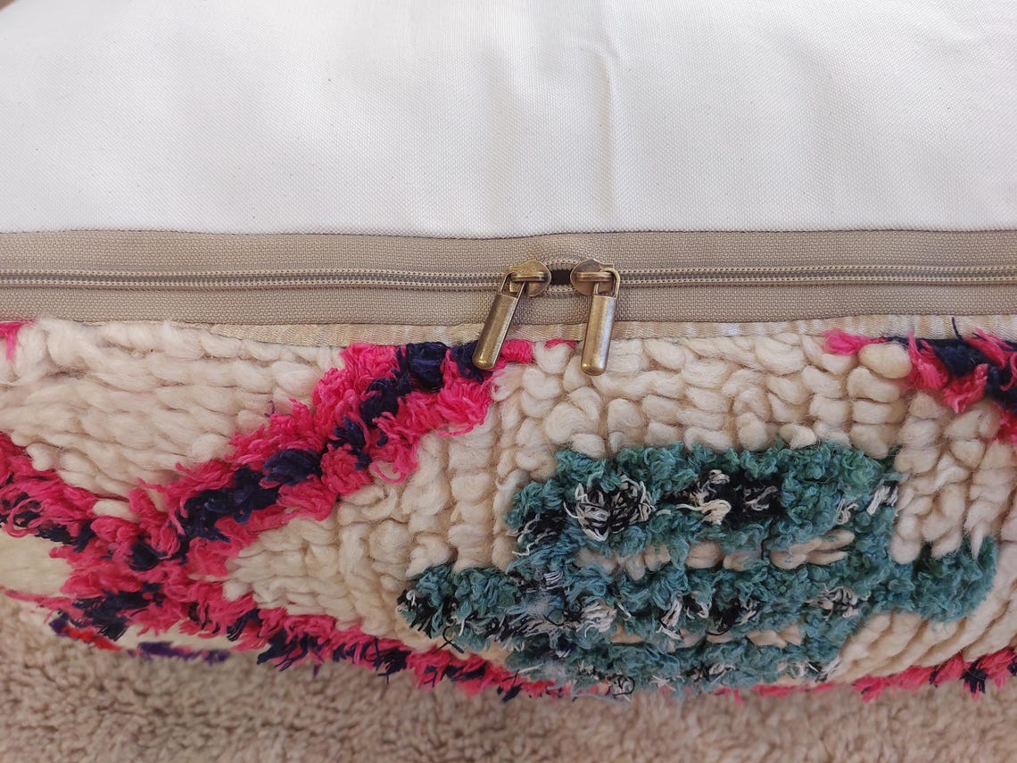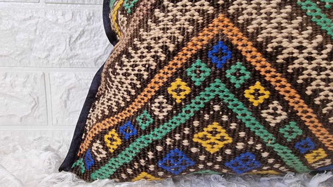Vintage Moroccan Berber Wool Pillow: Handmade Ait Bou Ichaouen Double-sided Cushion For Bohemian Decor