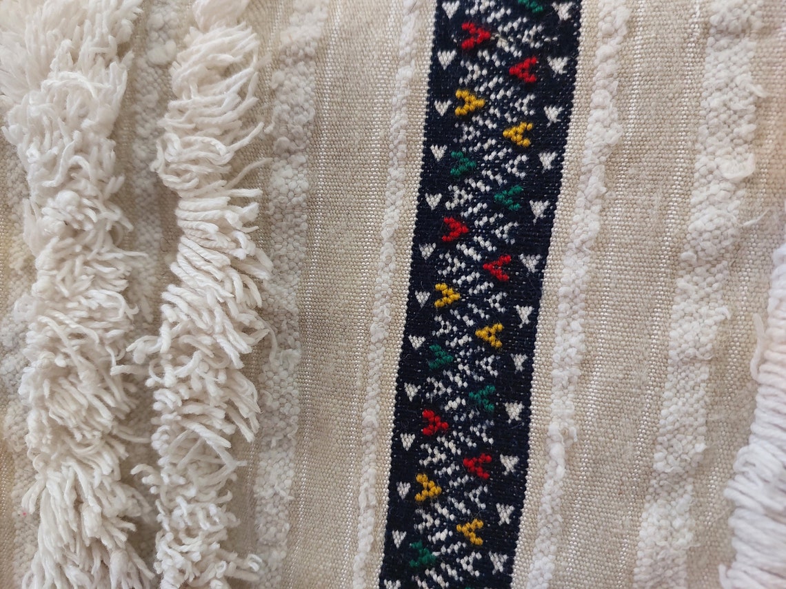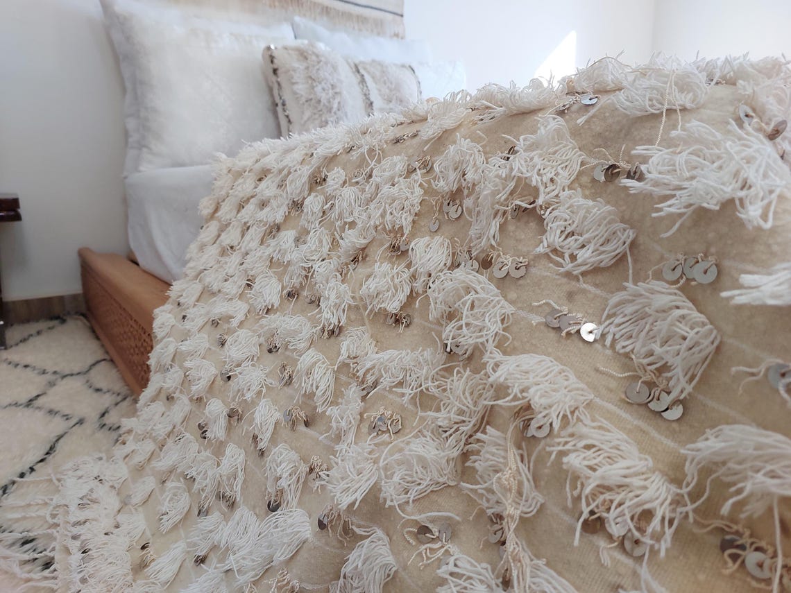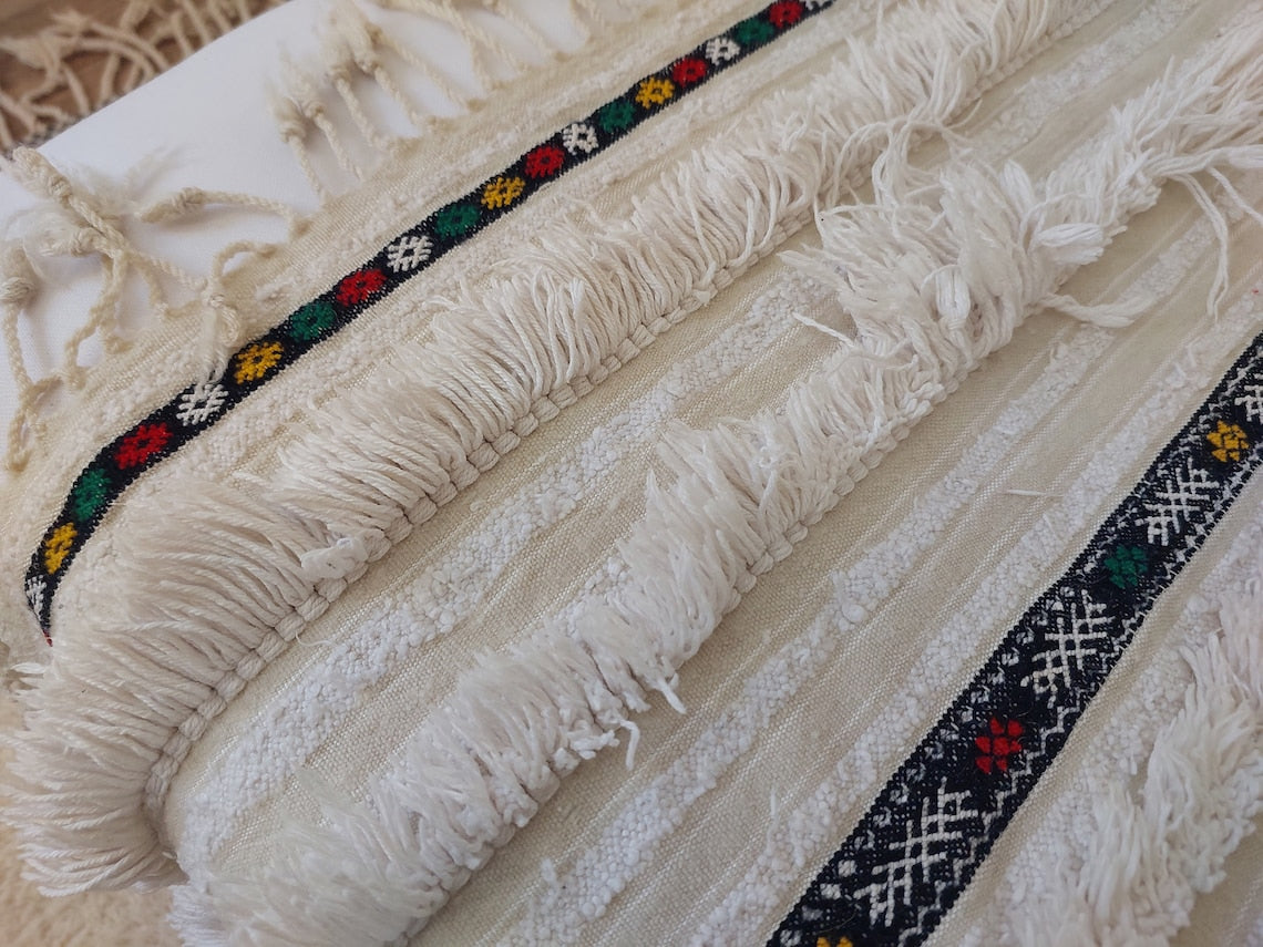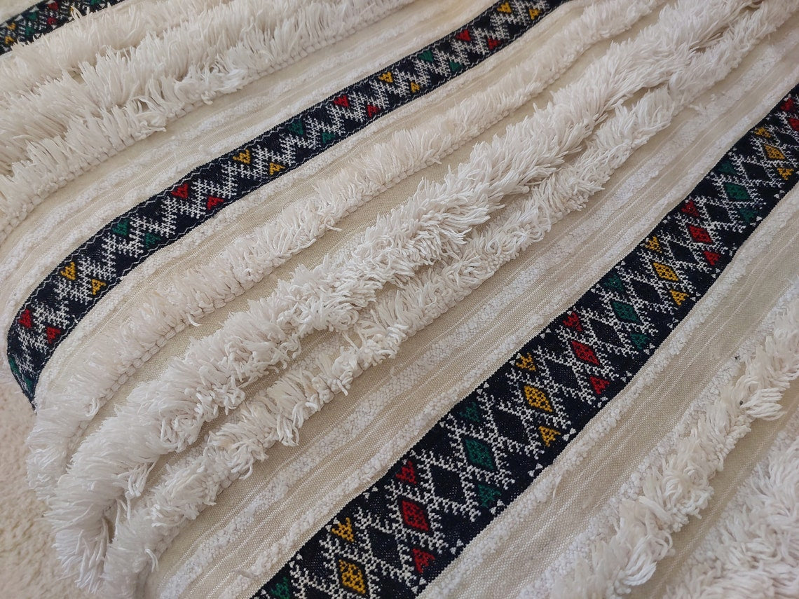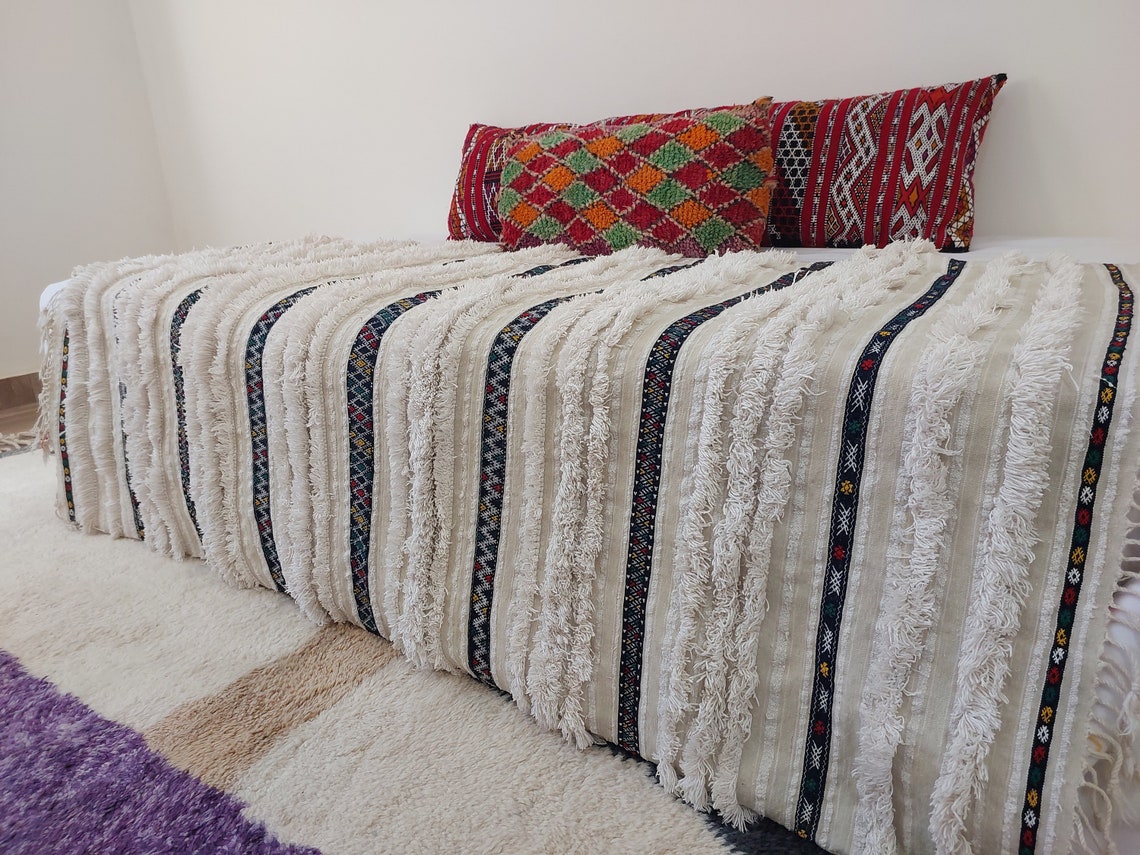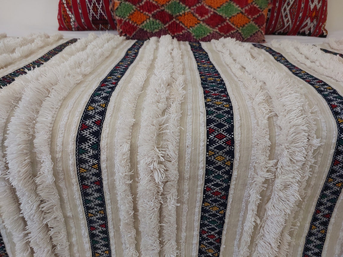 Vintage Moroccan Berber Wedding Blanket - Authentic Handira Throw Without Sequins - Unique Home Decor