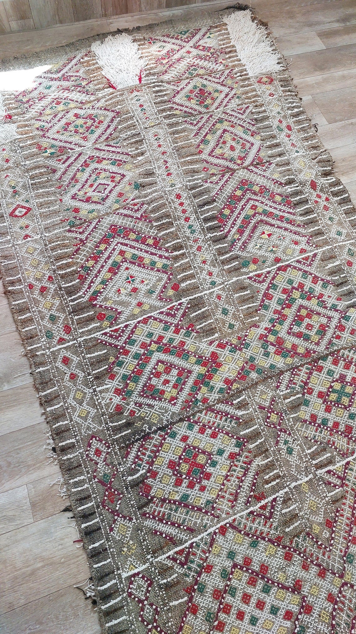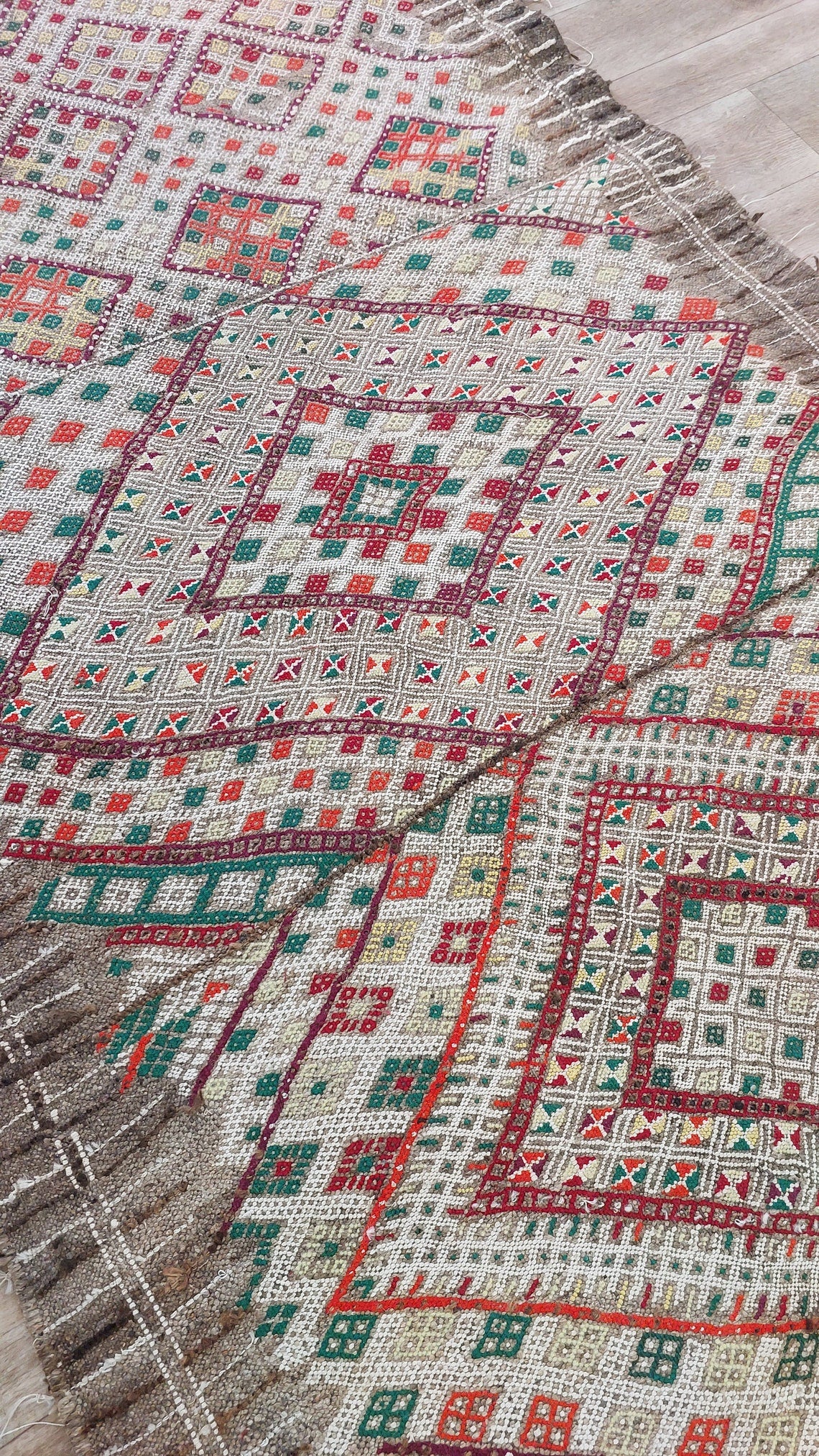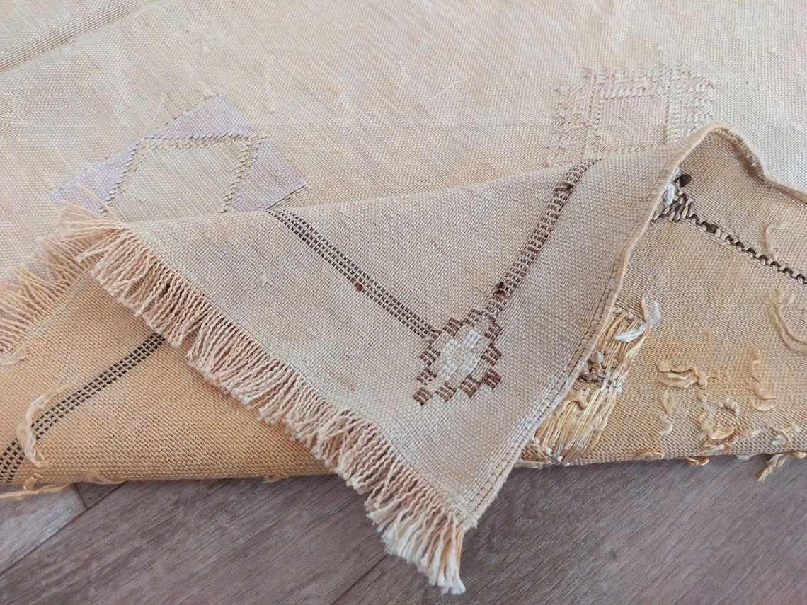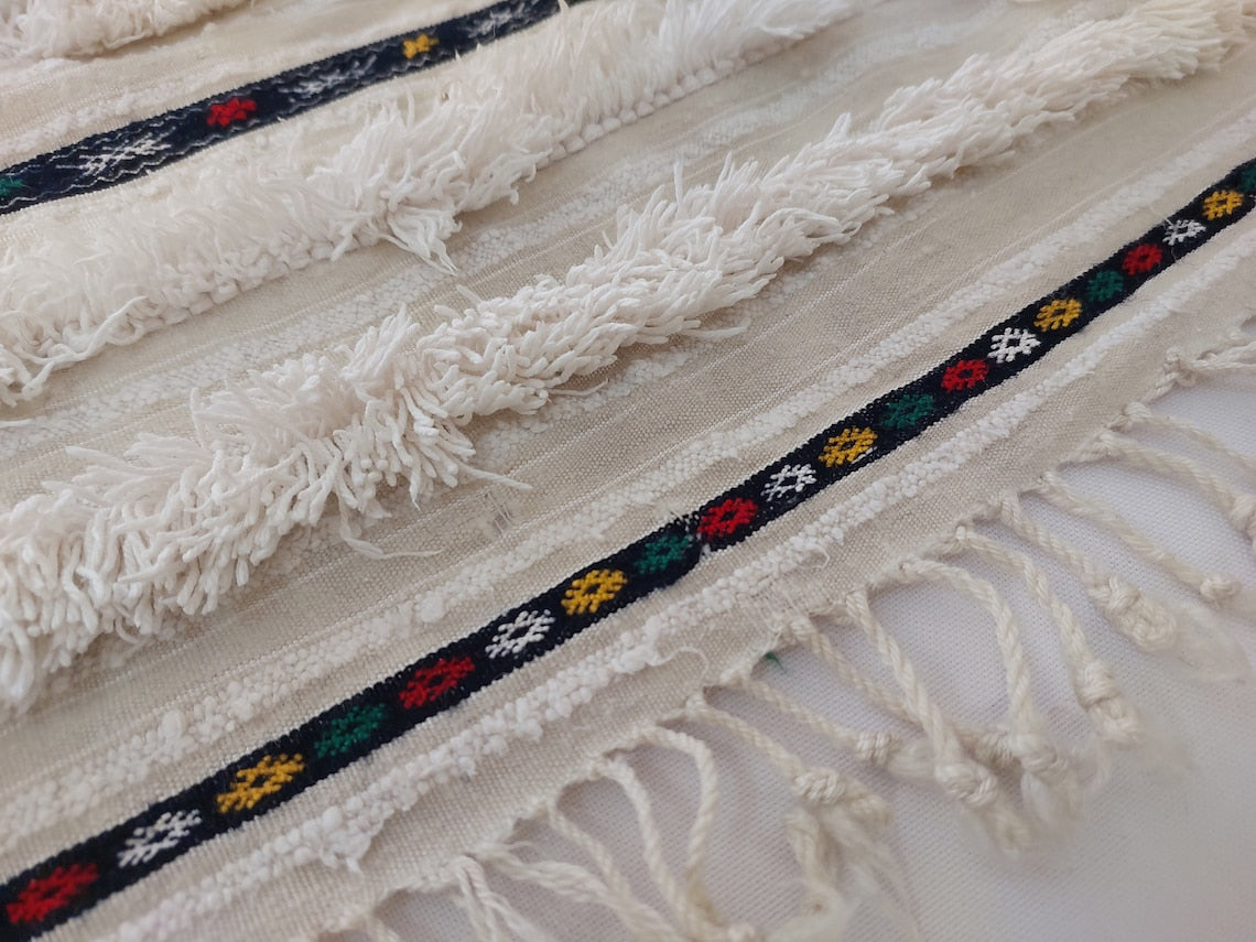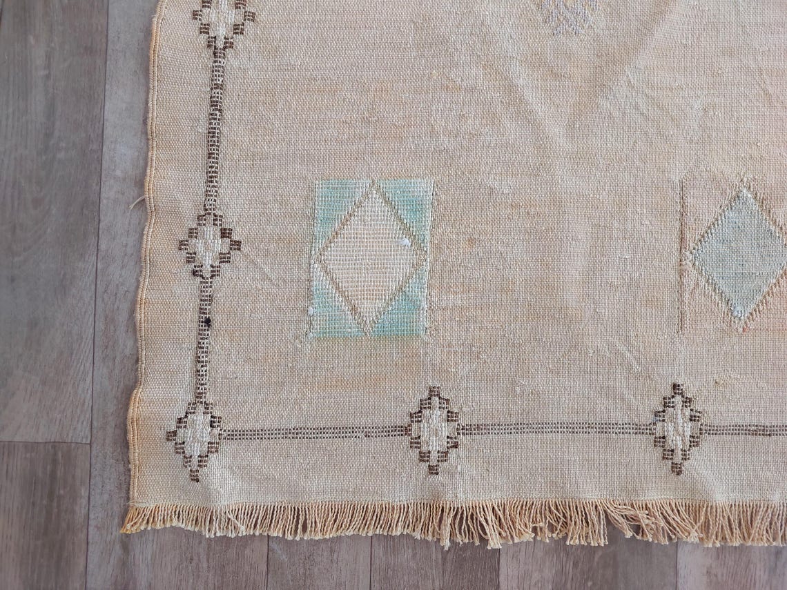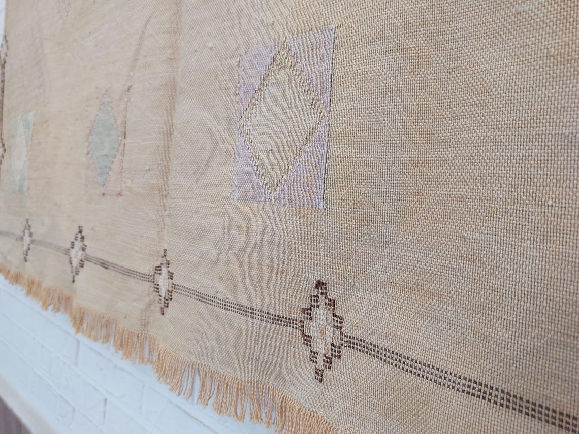 Vintage Moroccan Berber Wedding Blanket - Authentic Handira Throw Without Sequins - Unique Home Decor