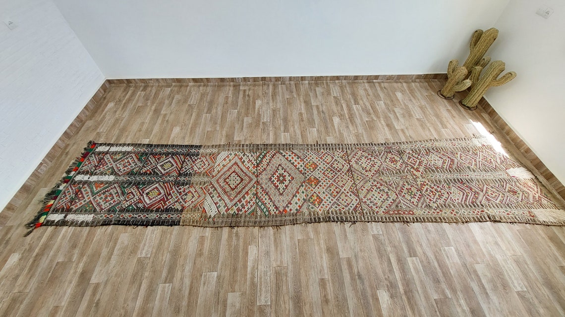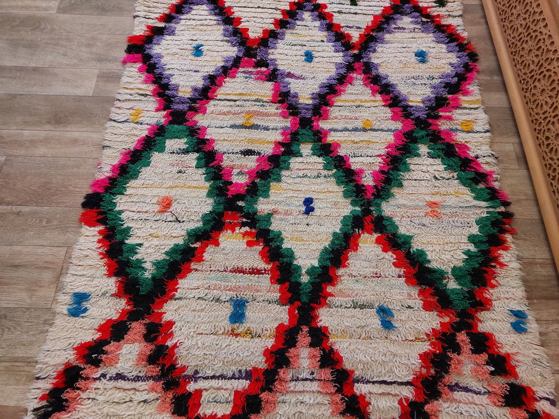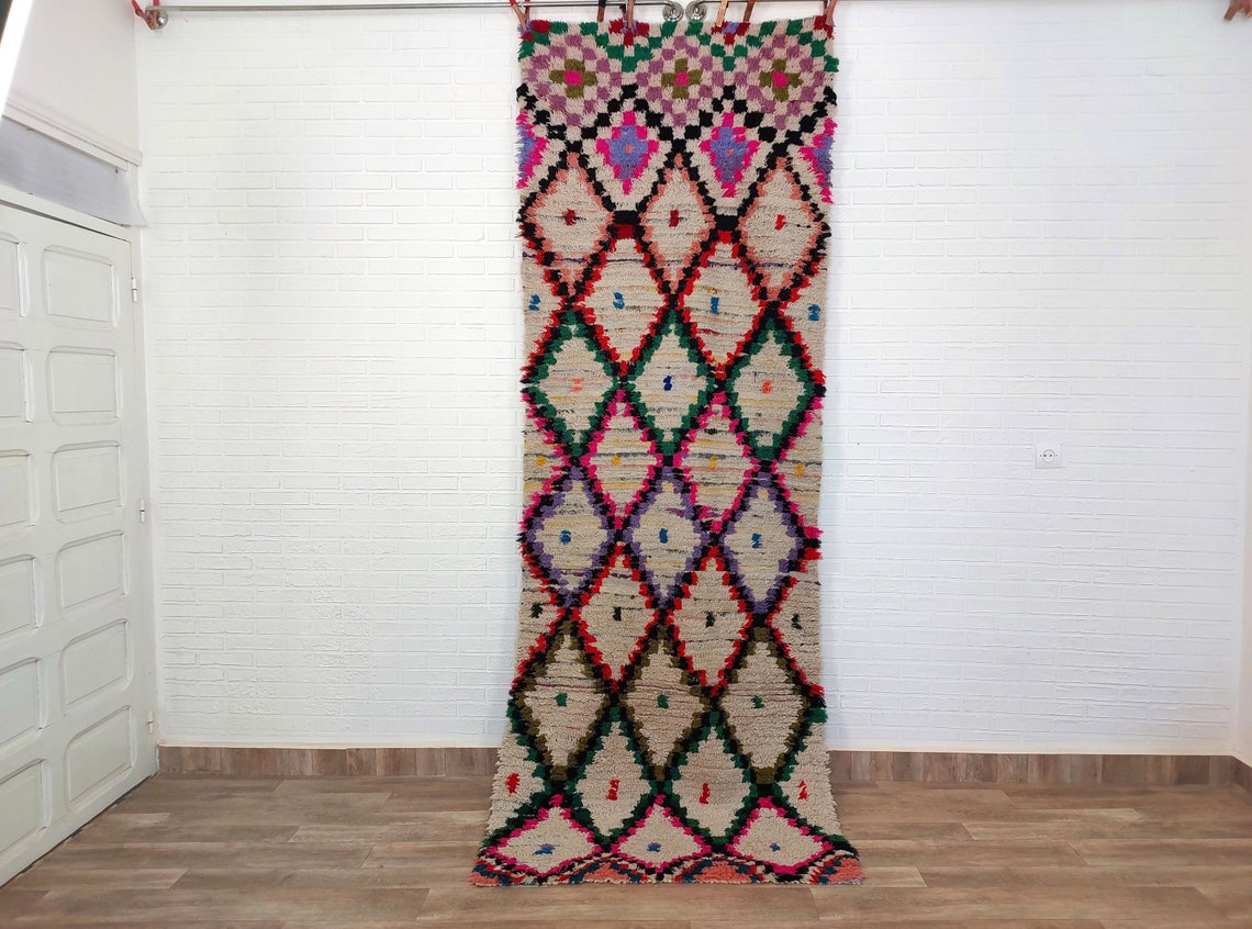 Vintage Moroccan Azilal Runner: Authentic Handmade Colorful Berber Rug From Recycled Fabrics