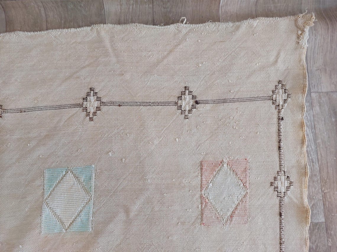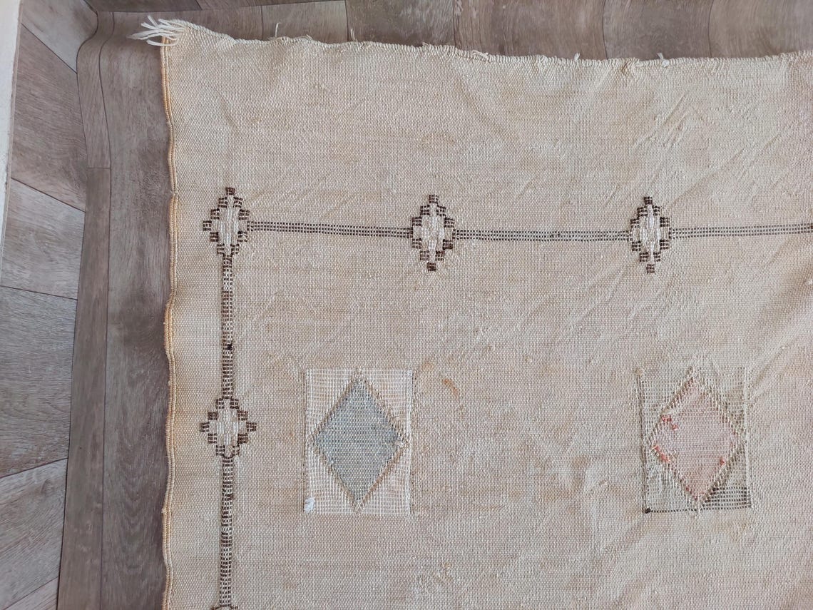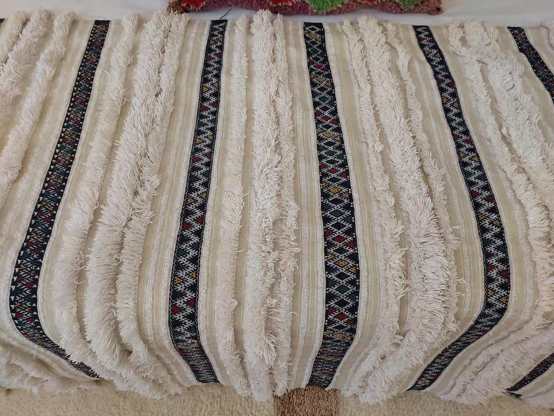 Vintage Moroccan Berber Wedding Handira: Authentic Handwoven Blanket Without Sequins (3.9x5.6 ft)