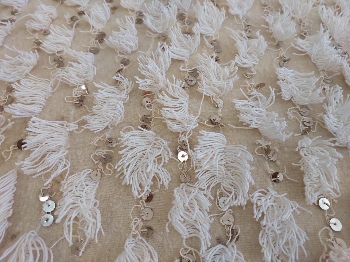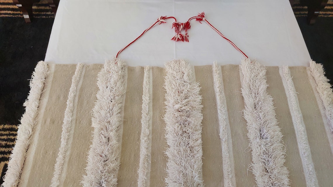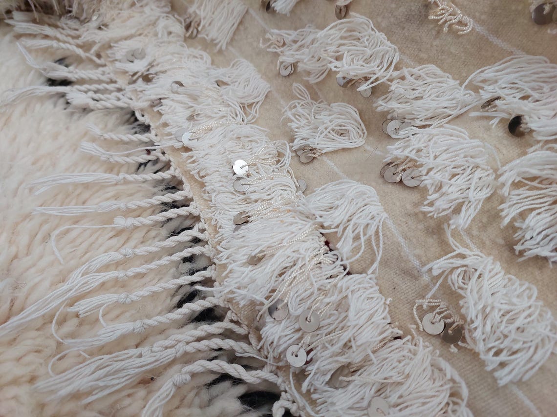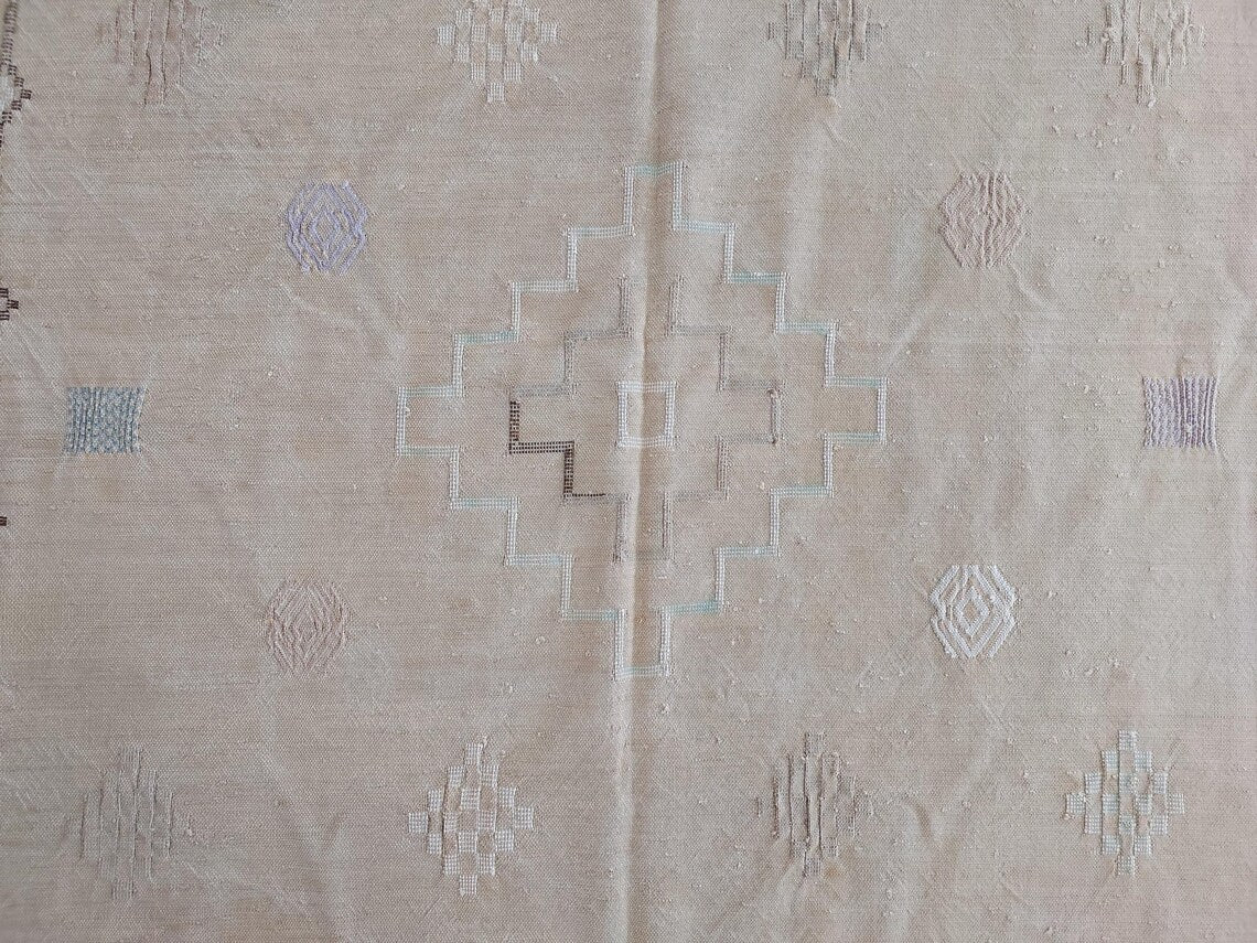 Vintage Moroccan Berber Wedding Handira: Authentic Handwoven Blanket Without Sequins (3.9x5.6 ft)