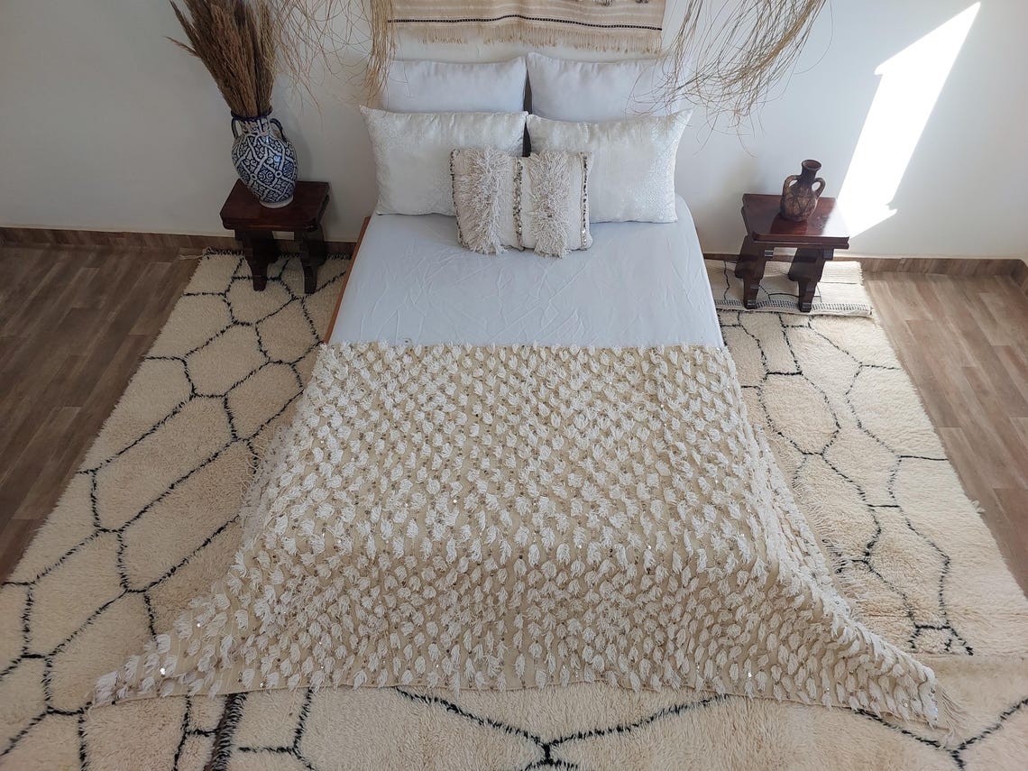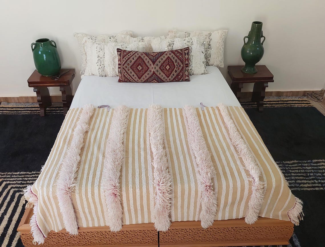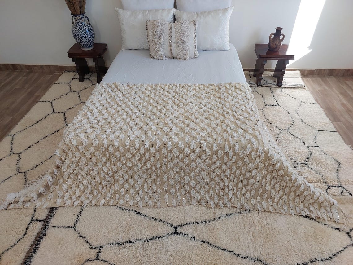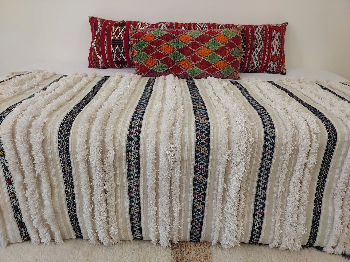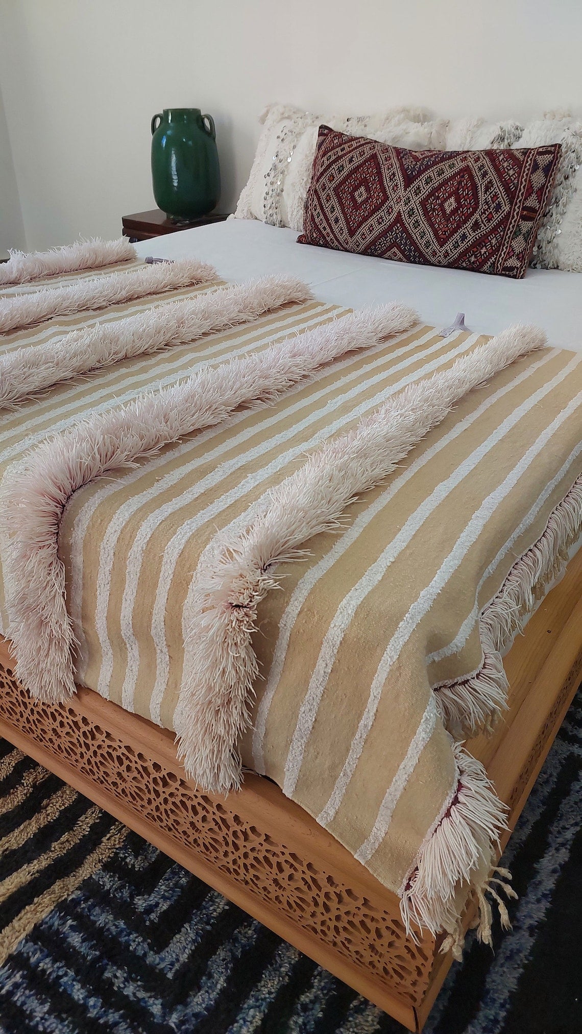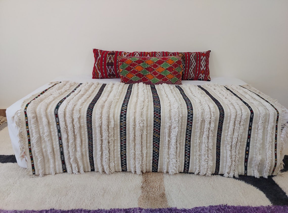 Vintage Moroccan Berber Handira Wedding Blanket Throw - Boho Bedding Decor for Living Room 138x260cm