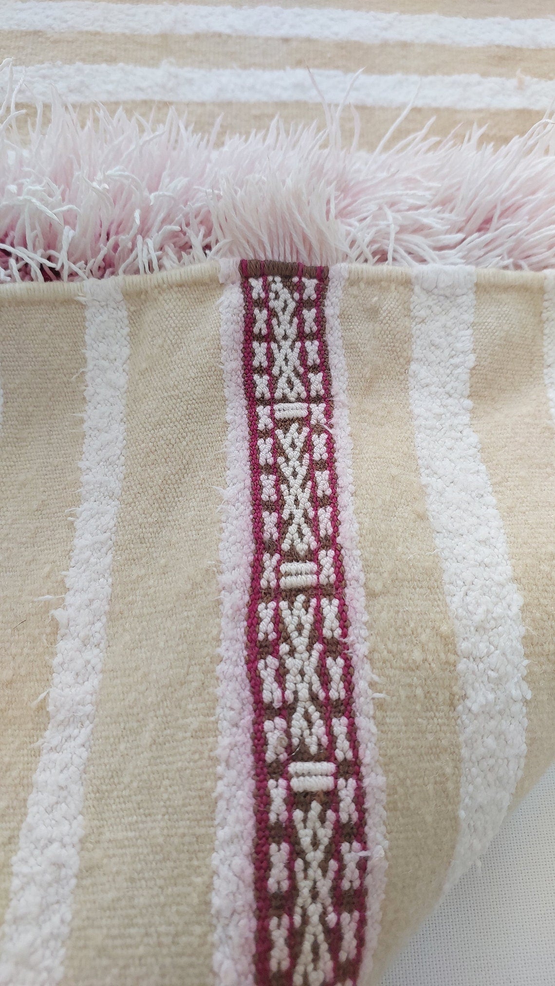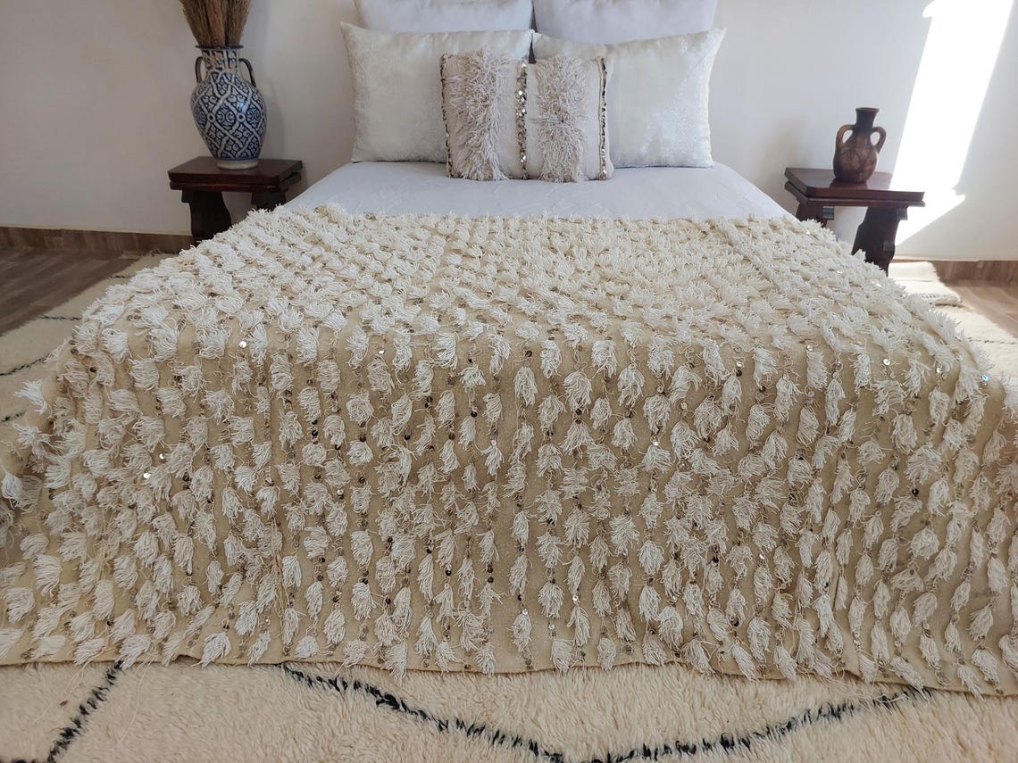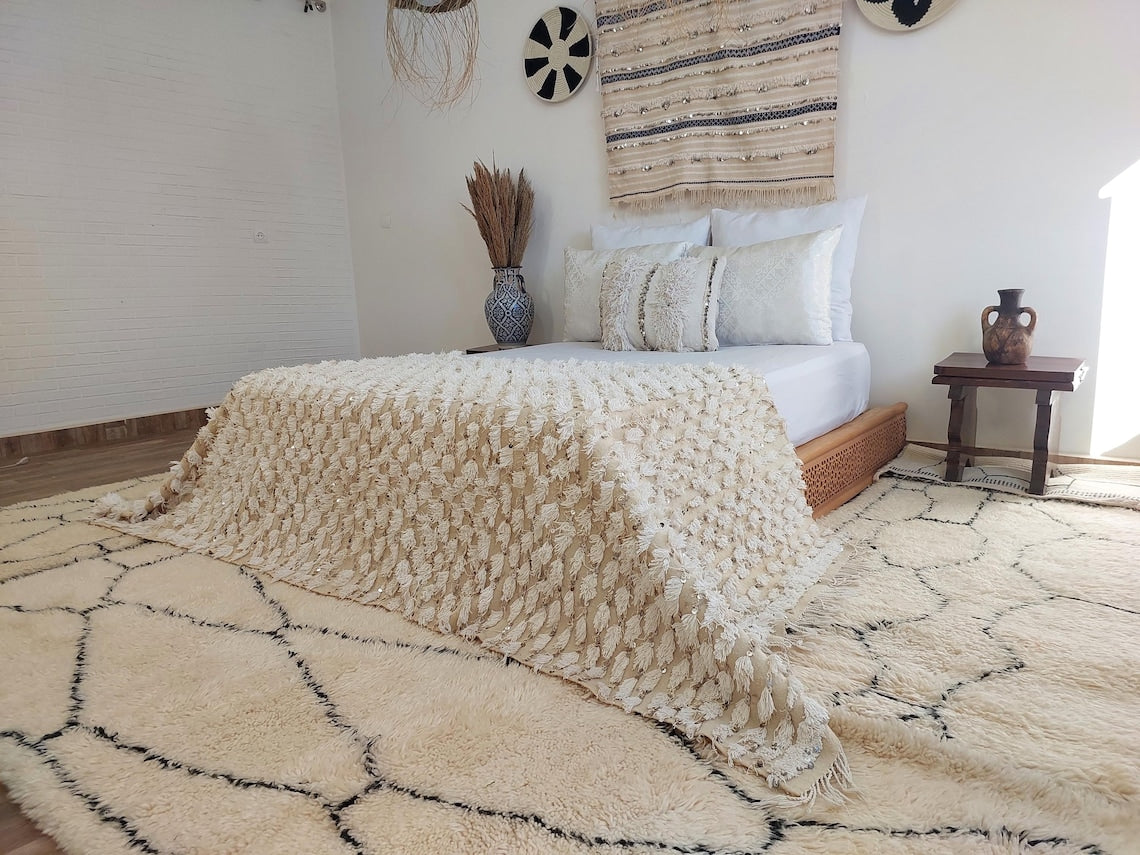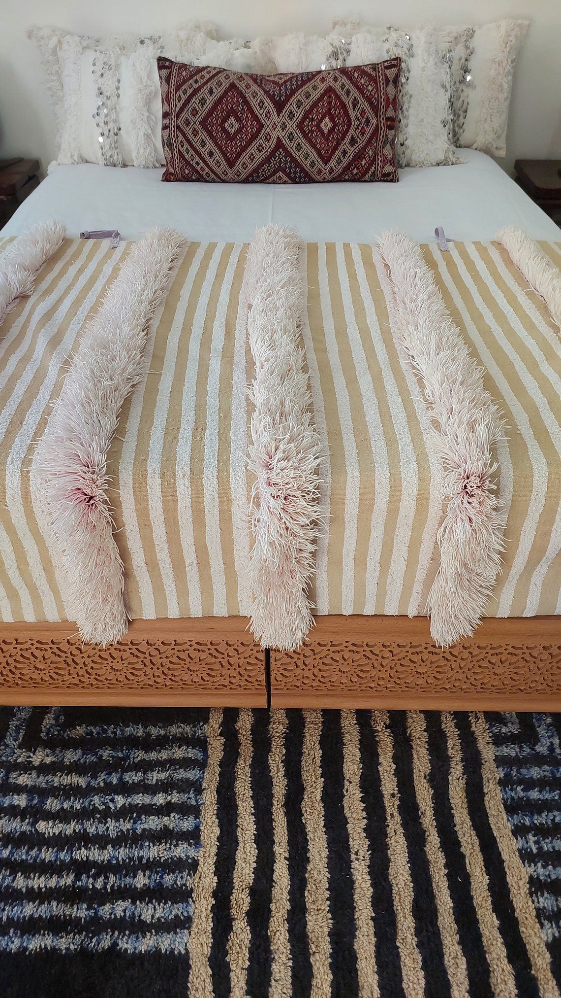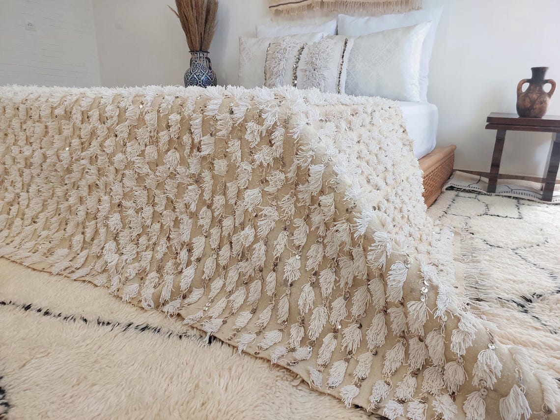 Vintage Moroccan Berber Handira Wedding Blanket Throw - Boho Bedding Decor for Living Room 138x260cm
