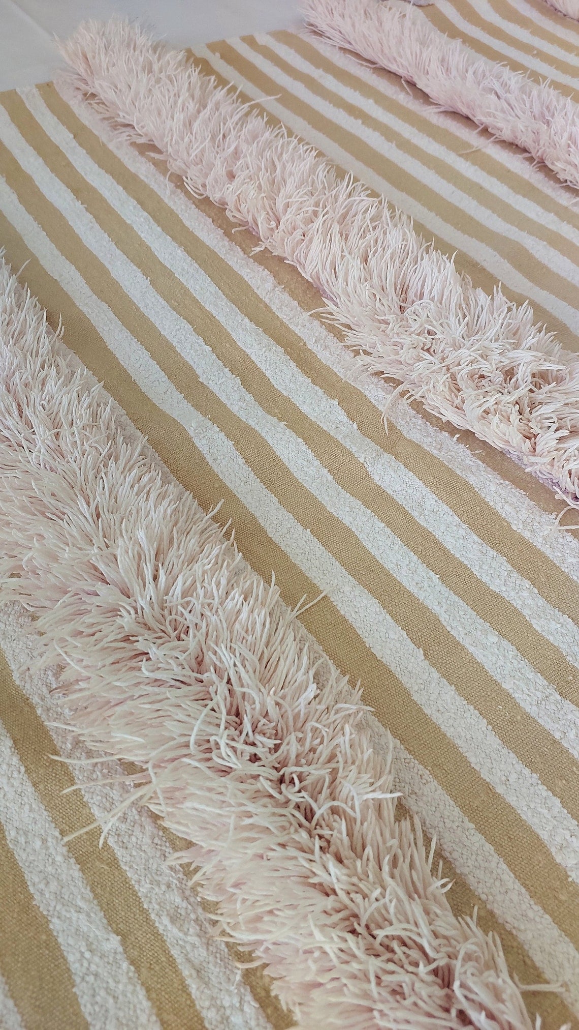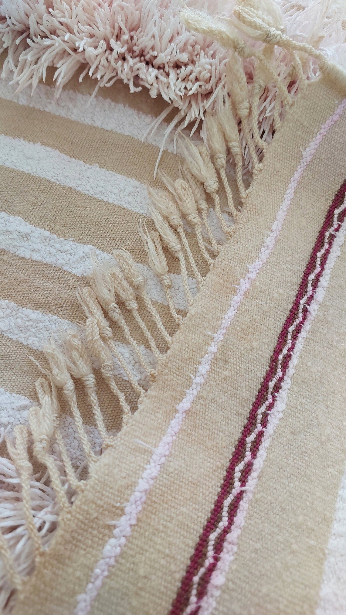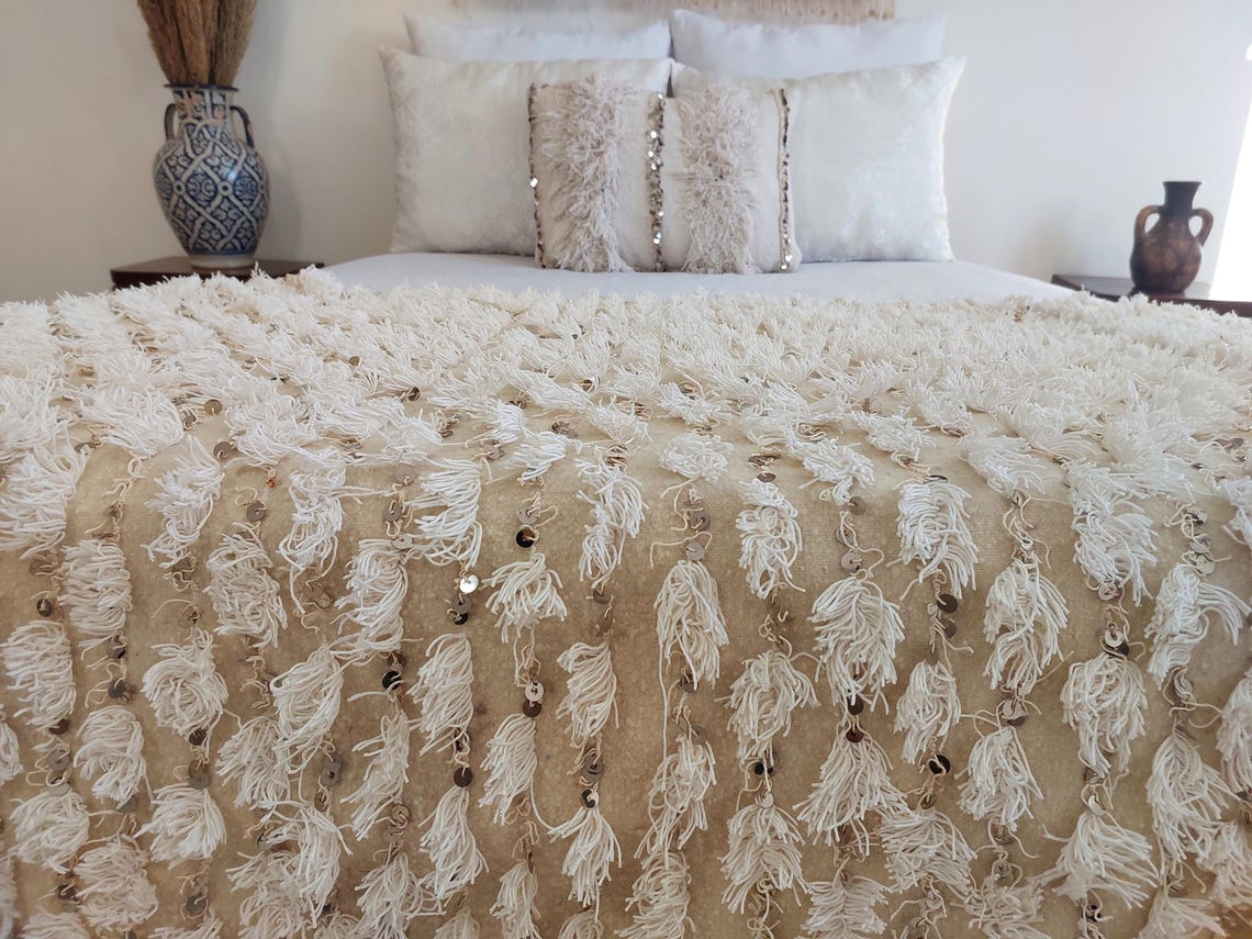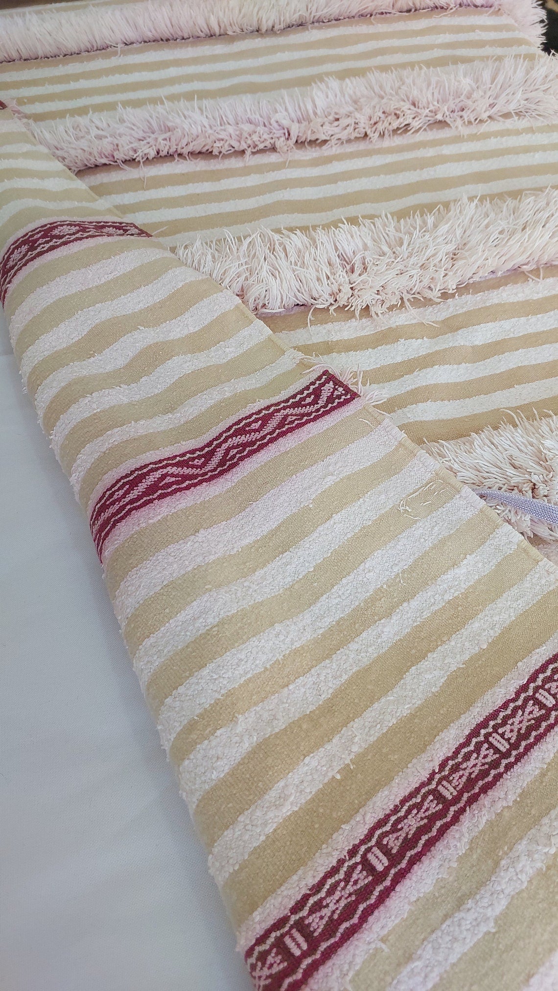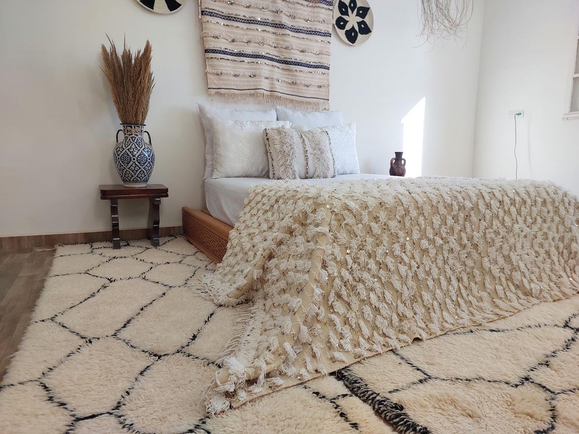 Vintage Moroccan Berber Handira Wedding Blanket Throw - Boho Bedding Decor for Living Room 138x260cm
