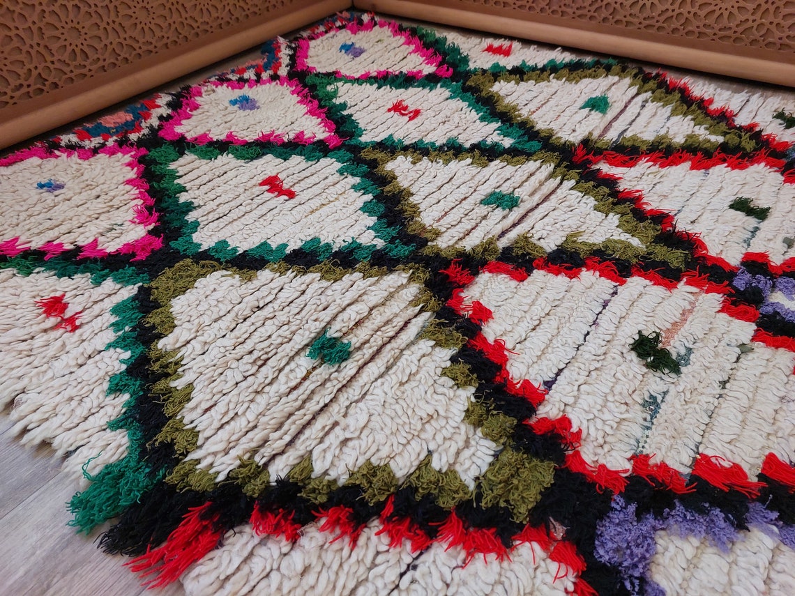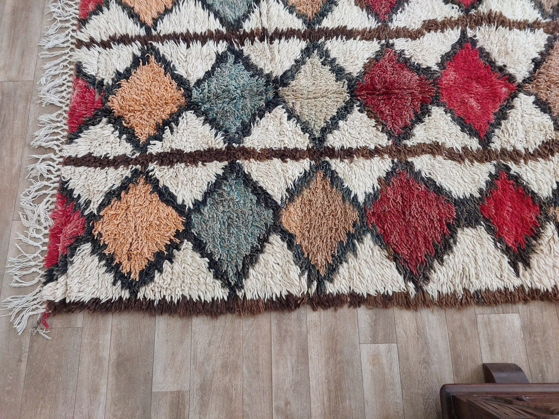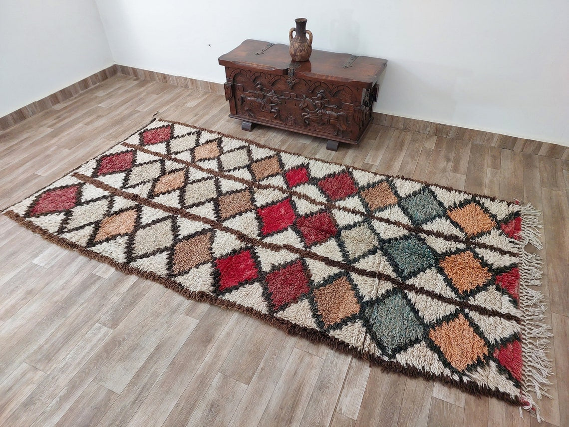Vintage Moroccan Berber Rug - Authentic Zayan Tribe Handmade Multicolor Area Rug