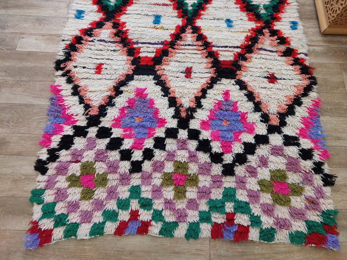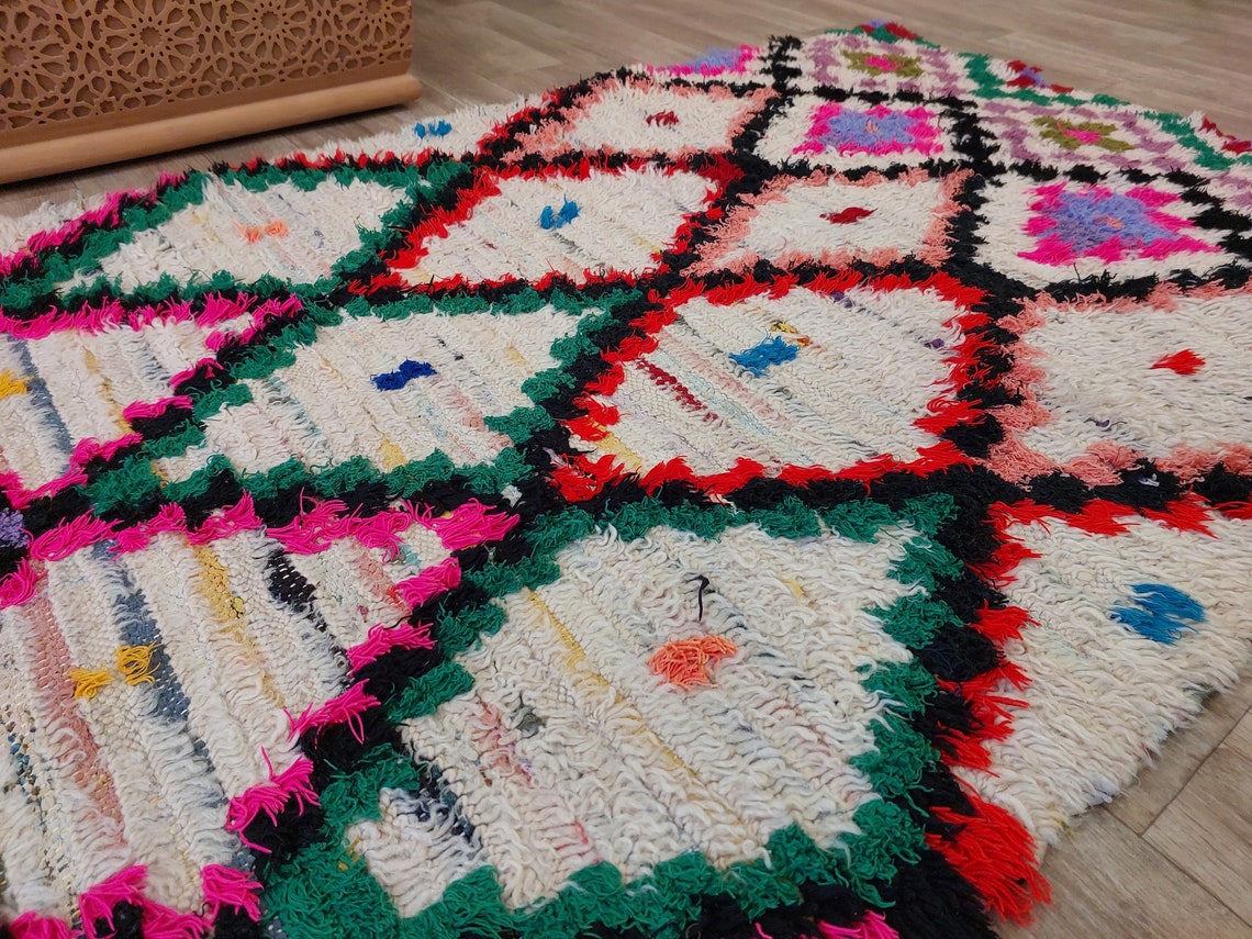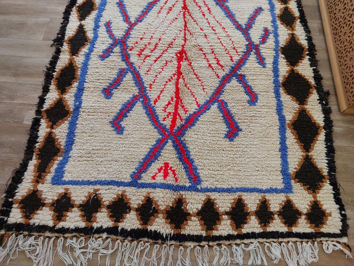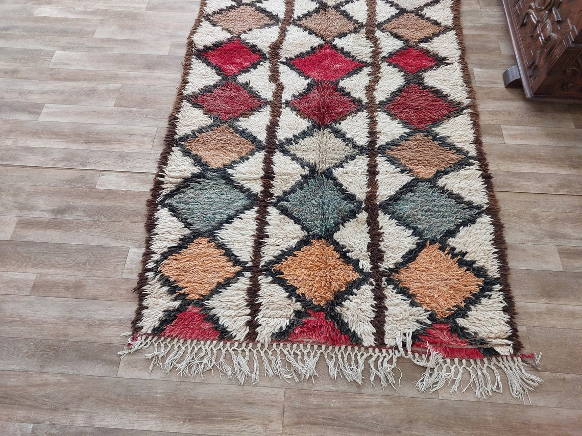 Vintage Moroccan Berber Rug - Authentic Zayan Tribe Handmade Multicolor Area Rug