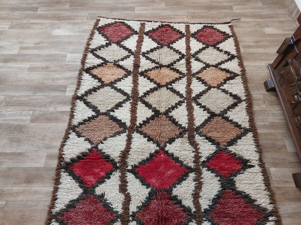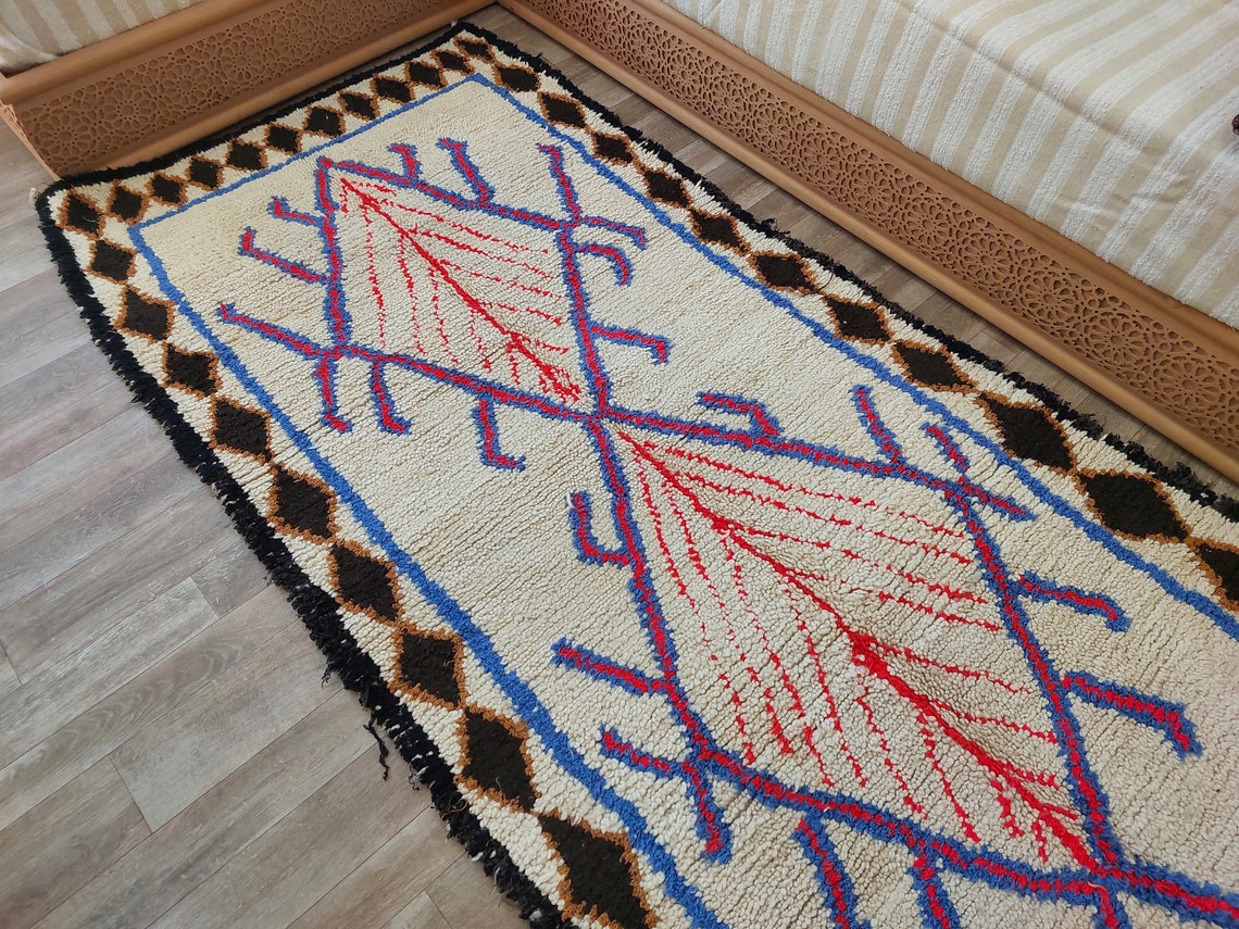 Vintage Moroccan Berber Azilal Rug - Colorful Handmade Wool Carpet With Natural Dyes (4.2x8.8 Ft)