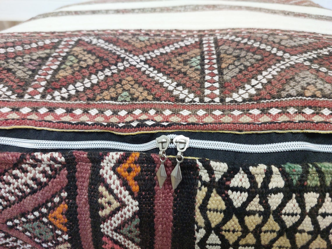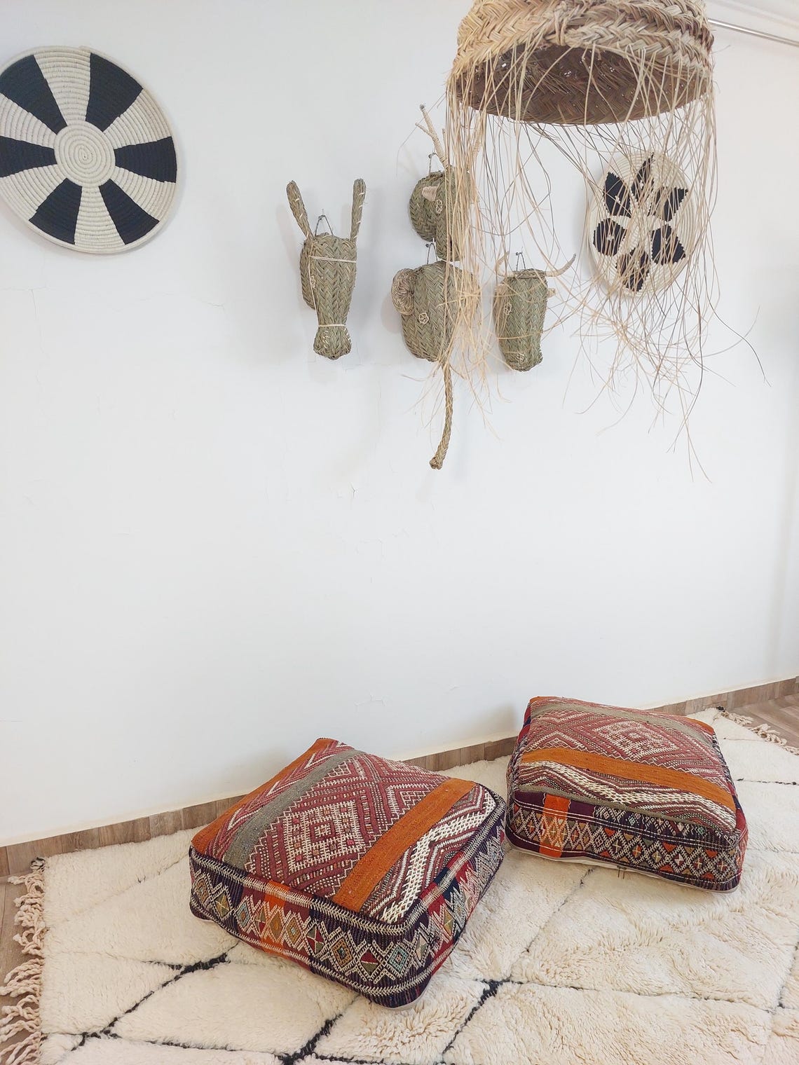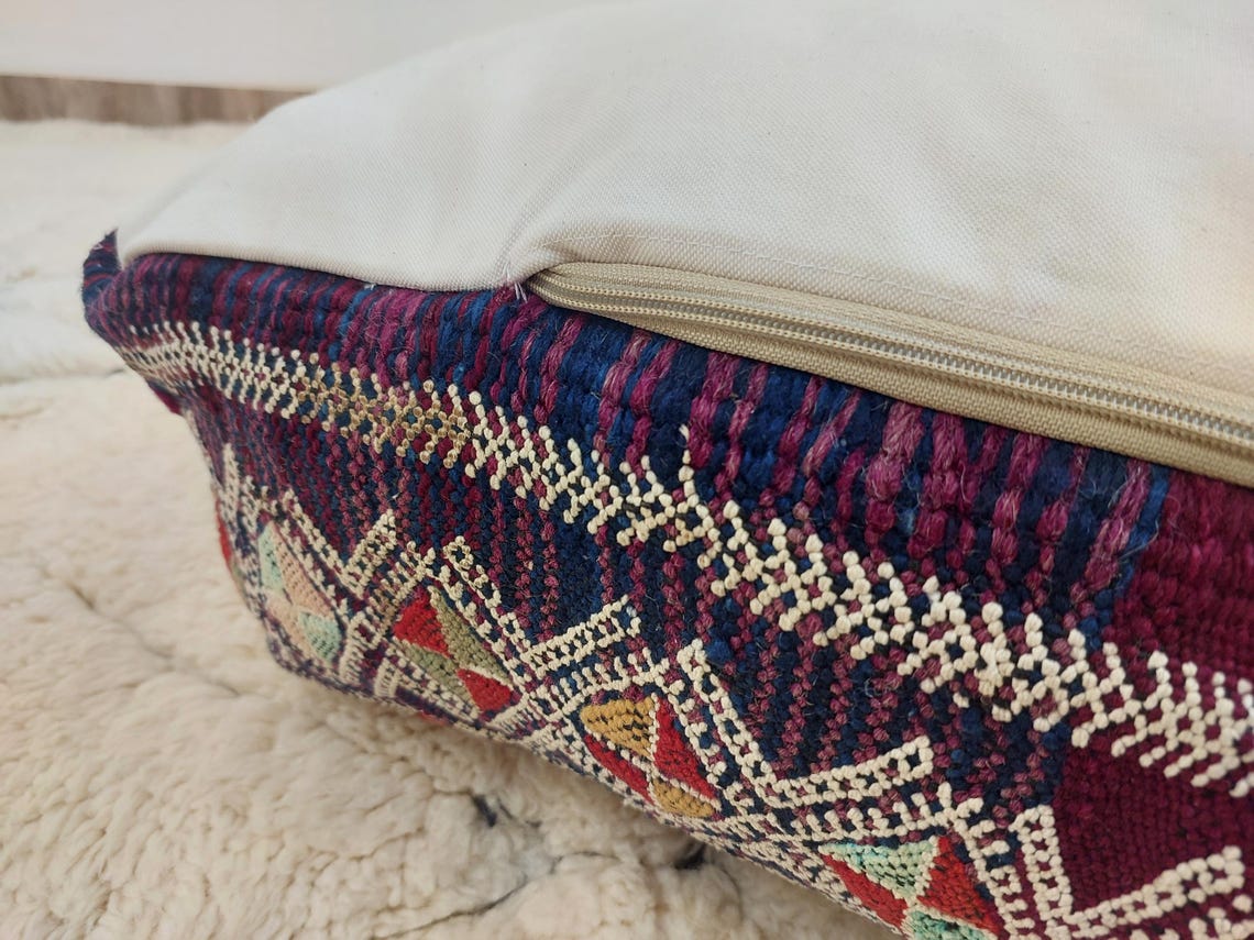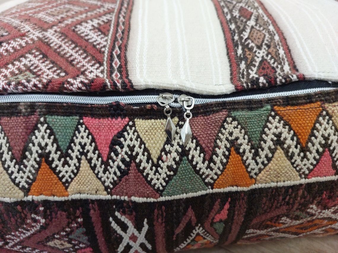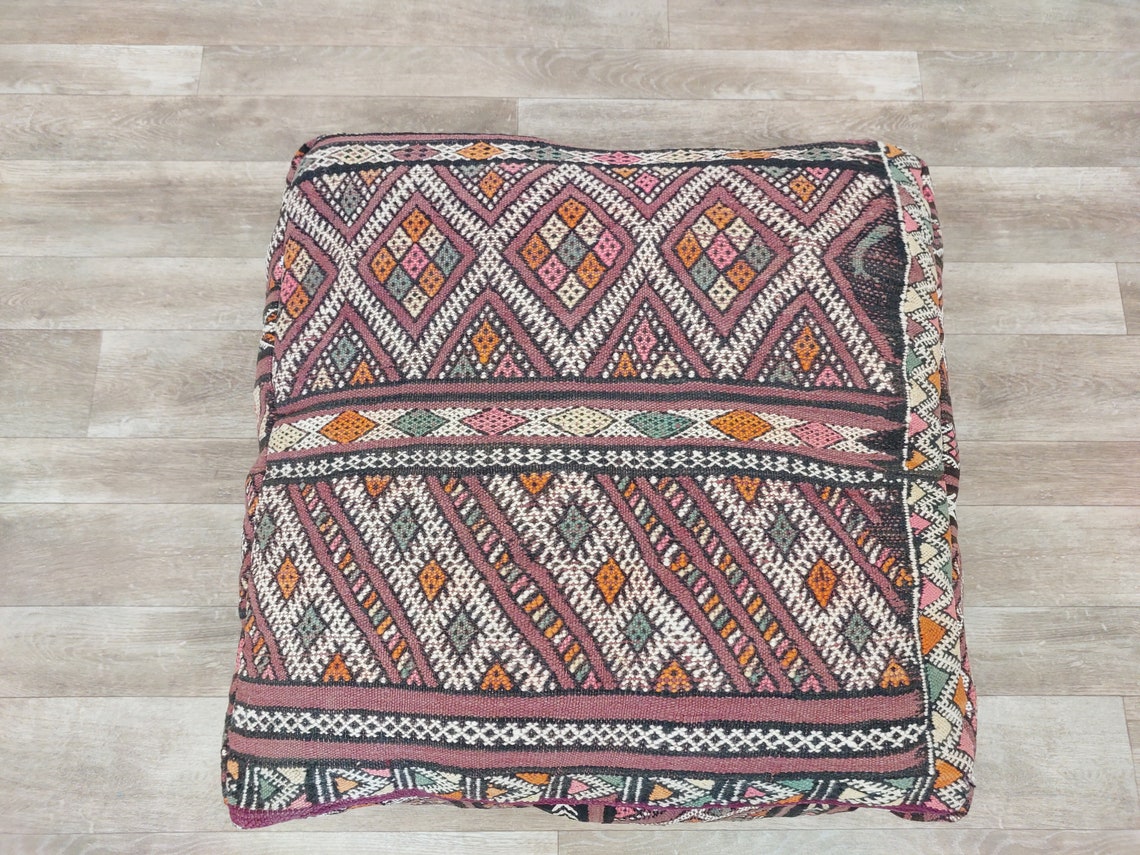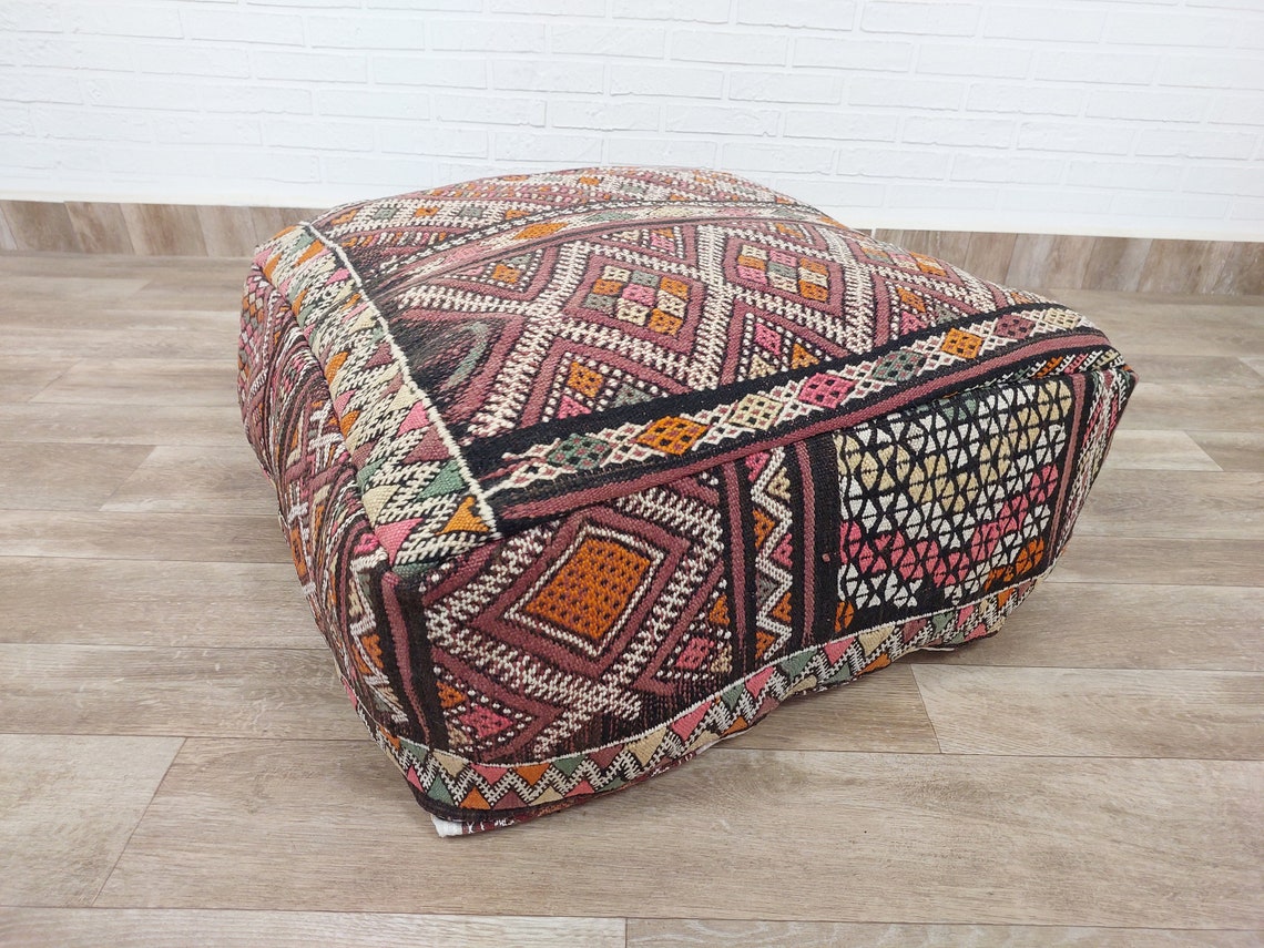 Vintage Moroccan Kilim Floor Pouf: Handmade Berber Wool Cushion Ottoman for Boho Home Decor