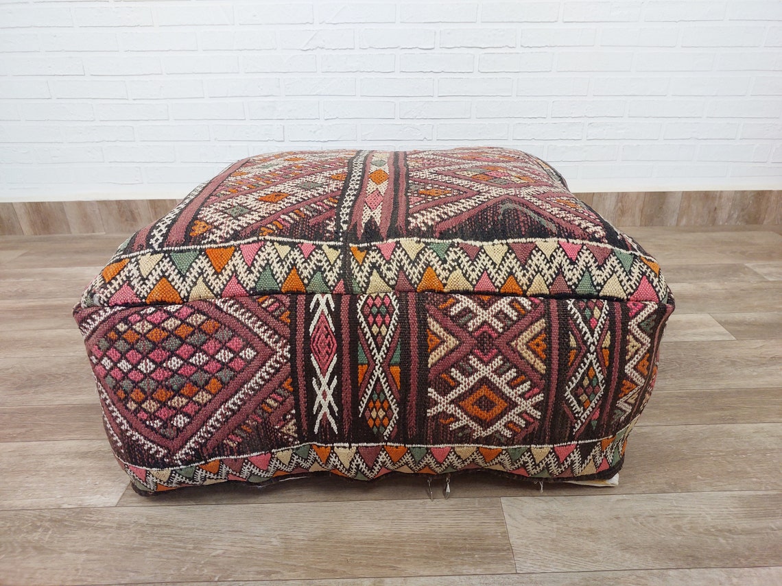 Vintage Moroccan Kilim Floor Pouf: Handmade Wool Berber Ottoman Cushion For Bohemian Home Decor
