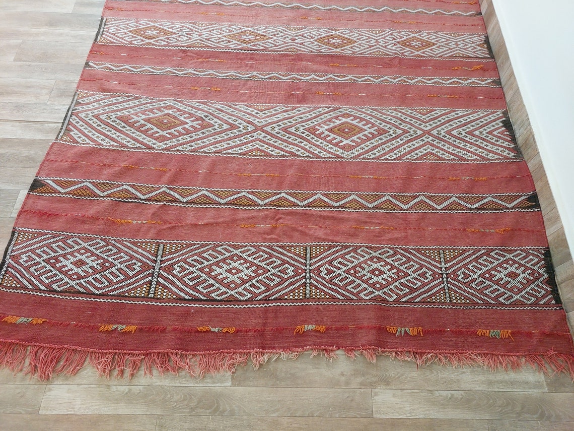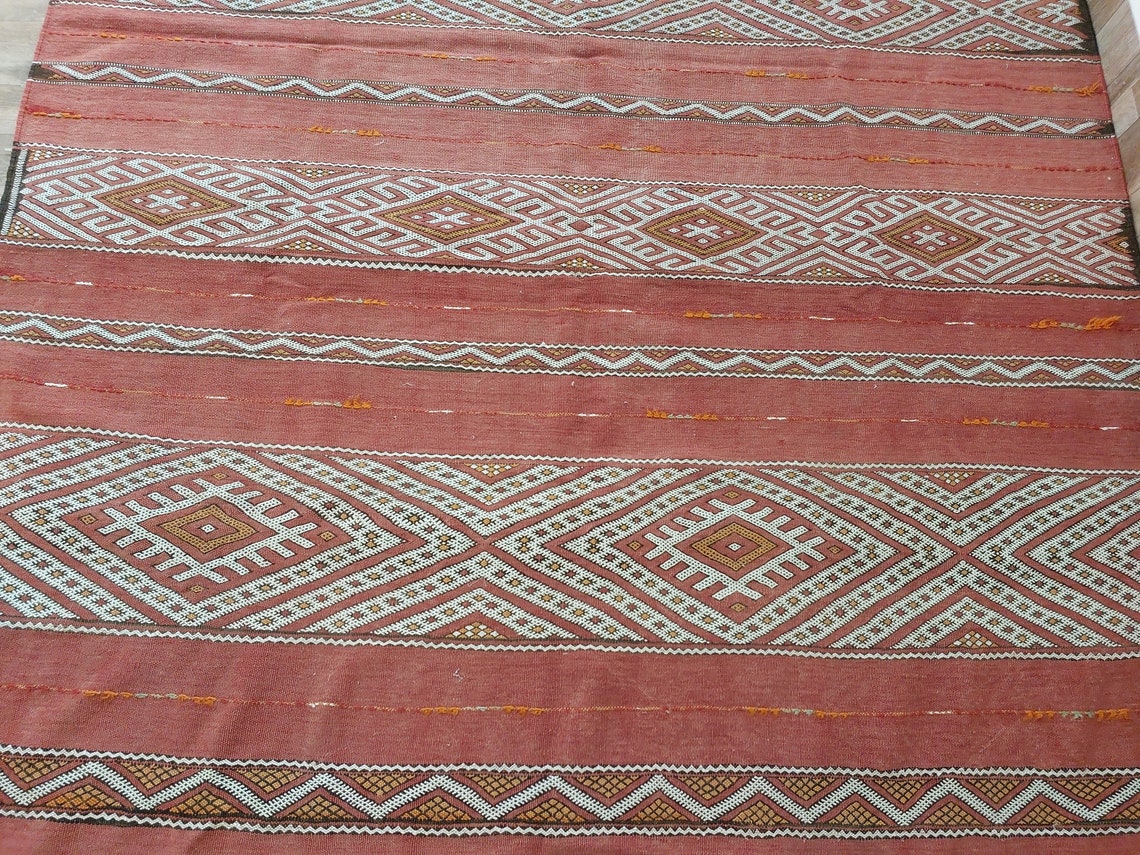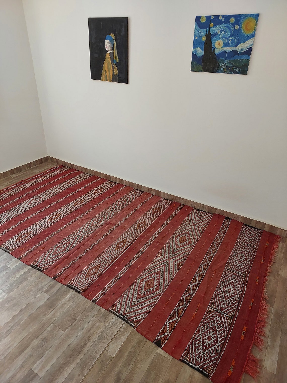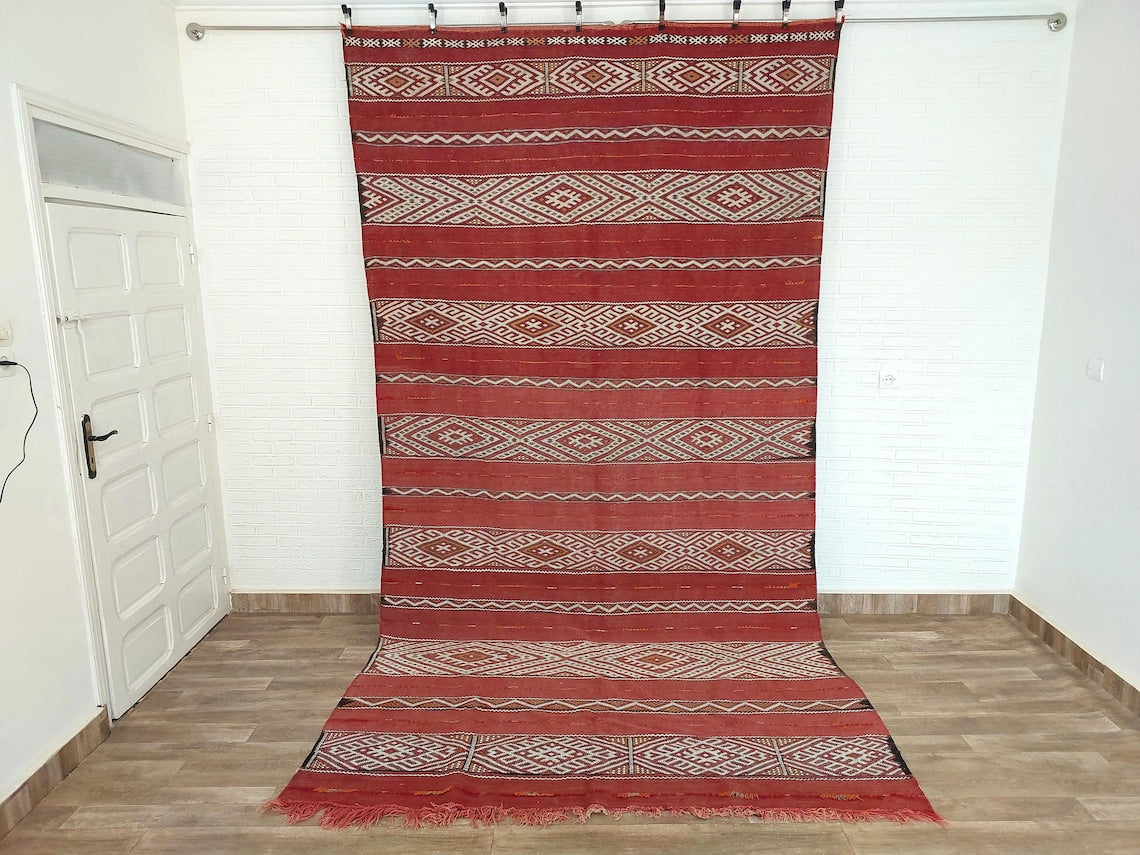 Vintage Moroccan Berber Kilim Rug - Handmade Flatweave Carpet - Authentic Bohemian Decor 6.5x11.9ft