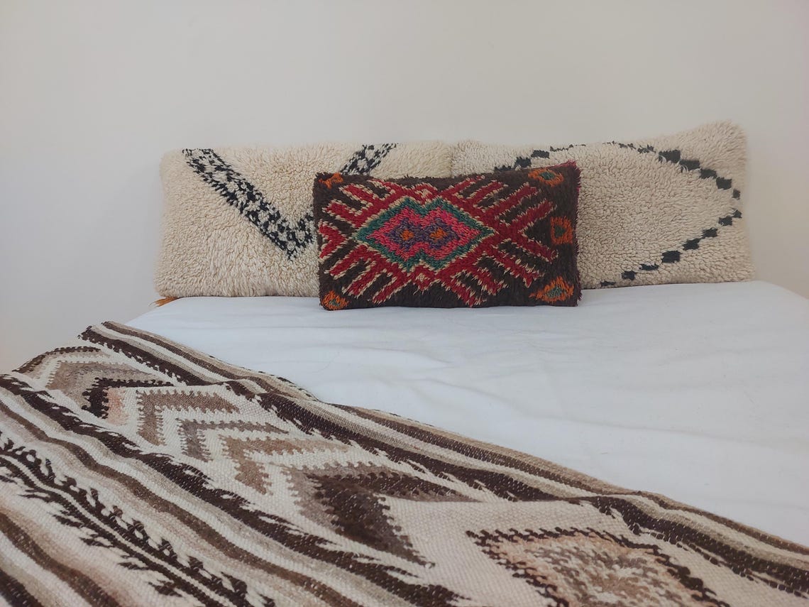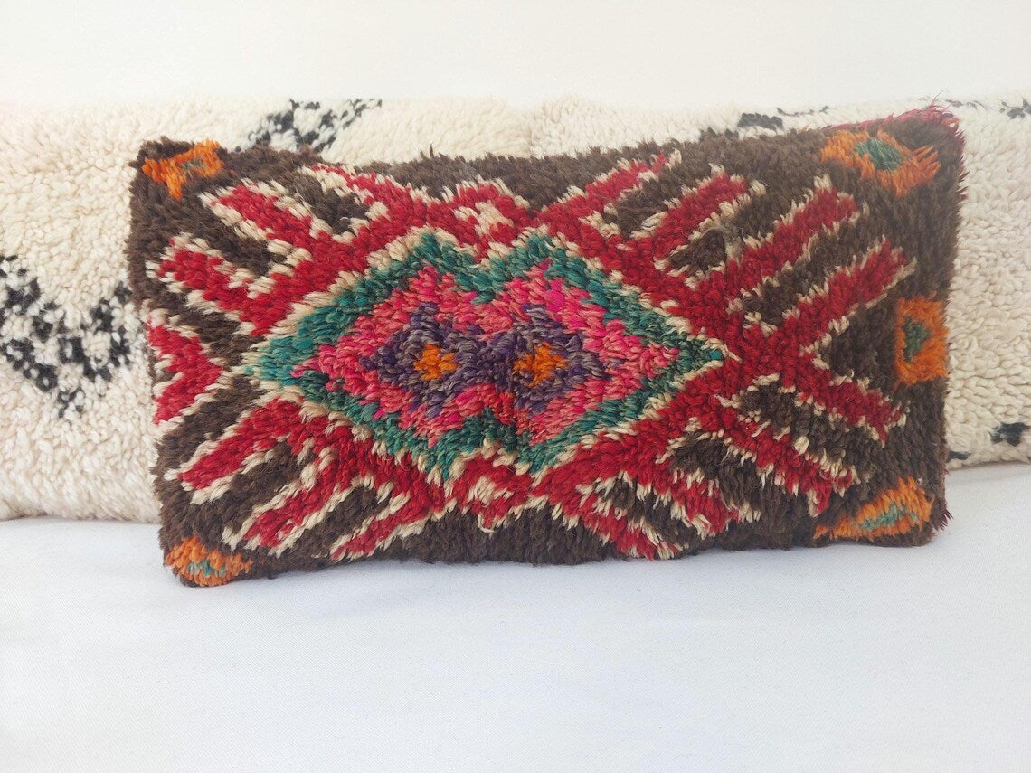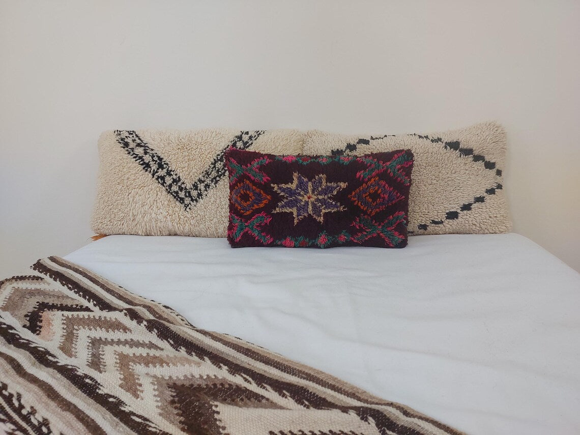 Vintage Moroccan Berber Lumbar Pillow - Handmade Bohemian Double-Sided Cushion Cover 13x47