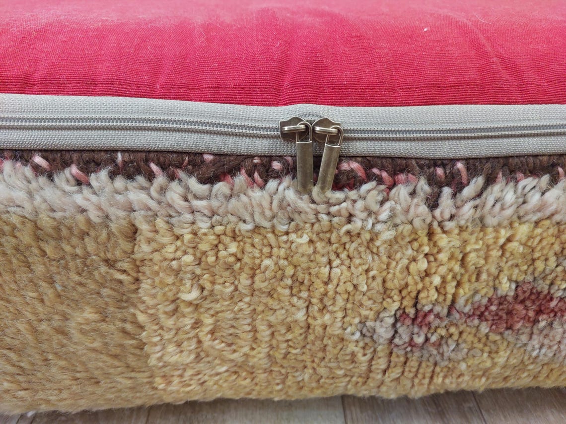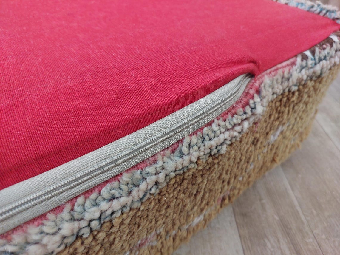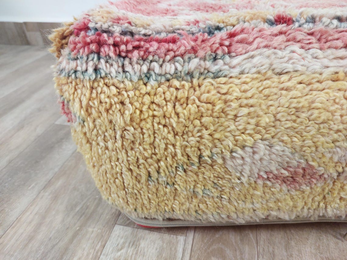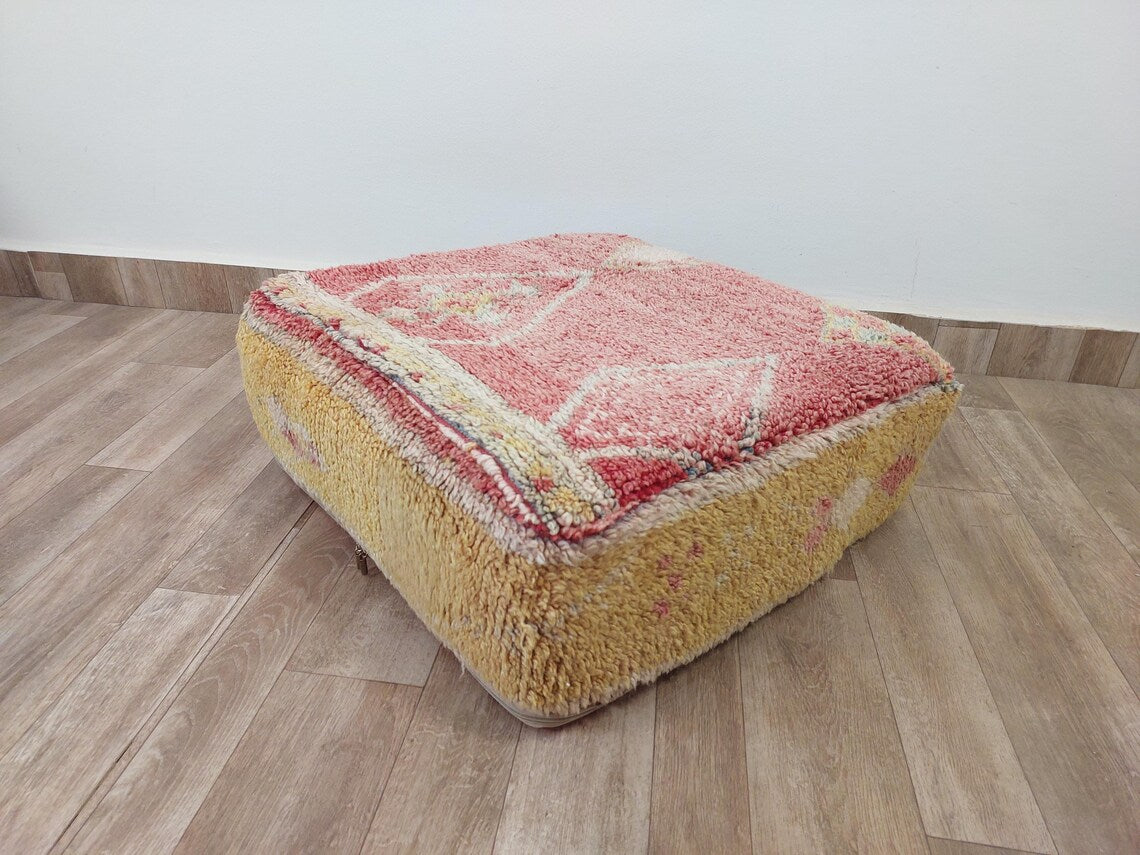 Vintage Moroccan Berber Wool Pouf: Handmade Colorful Floor Cushion Ottoman For Bohemian Decor , High Quality Pink Pouf